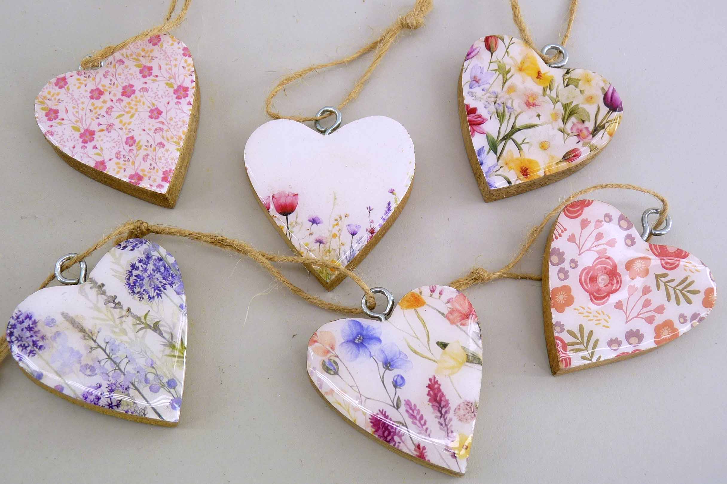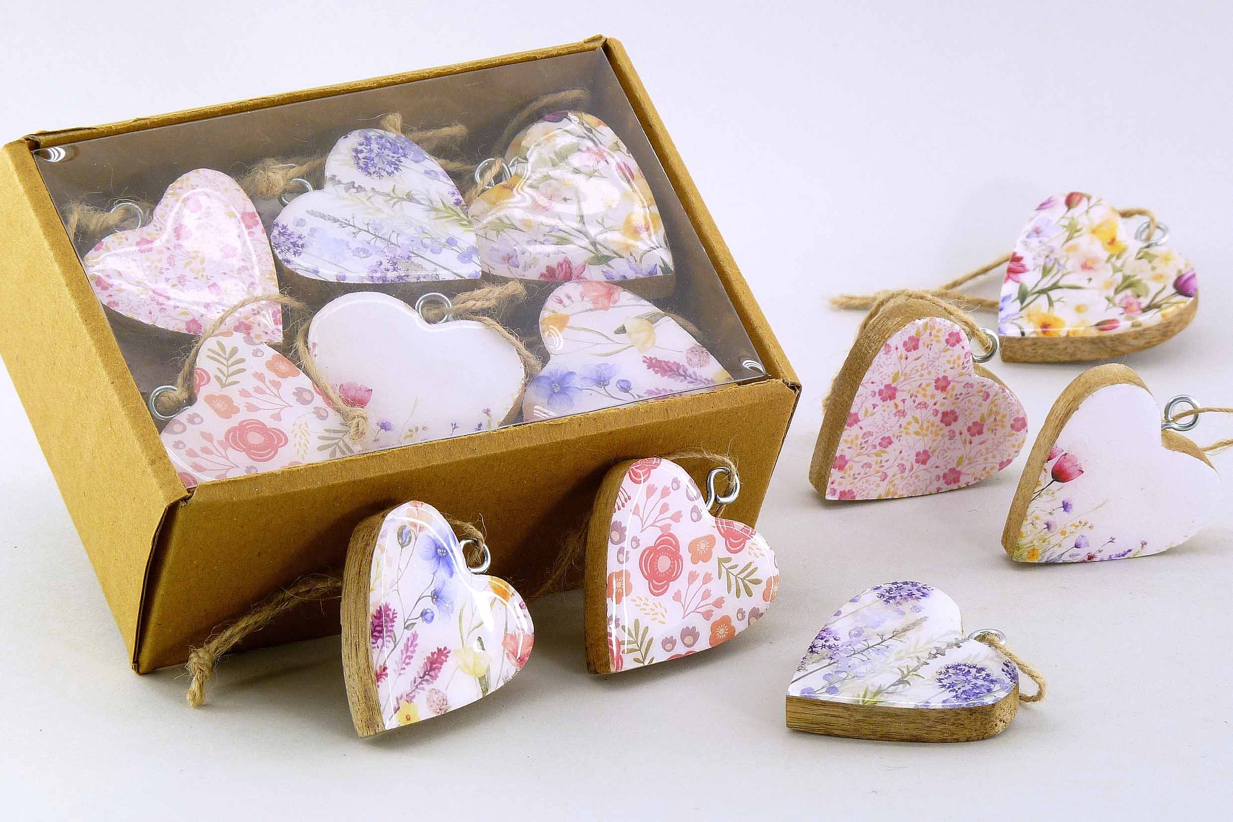 Mangoholz-Herz hgd. in Display-Box natur-weiß-bunt sort. ø5,5cm