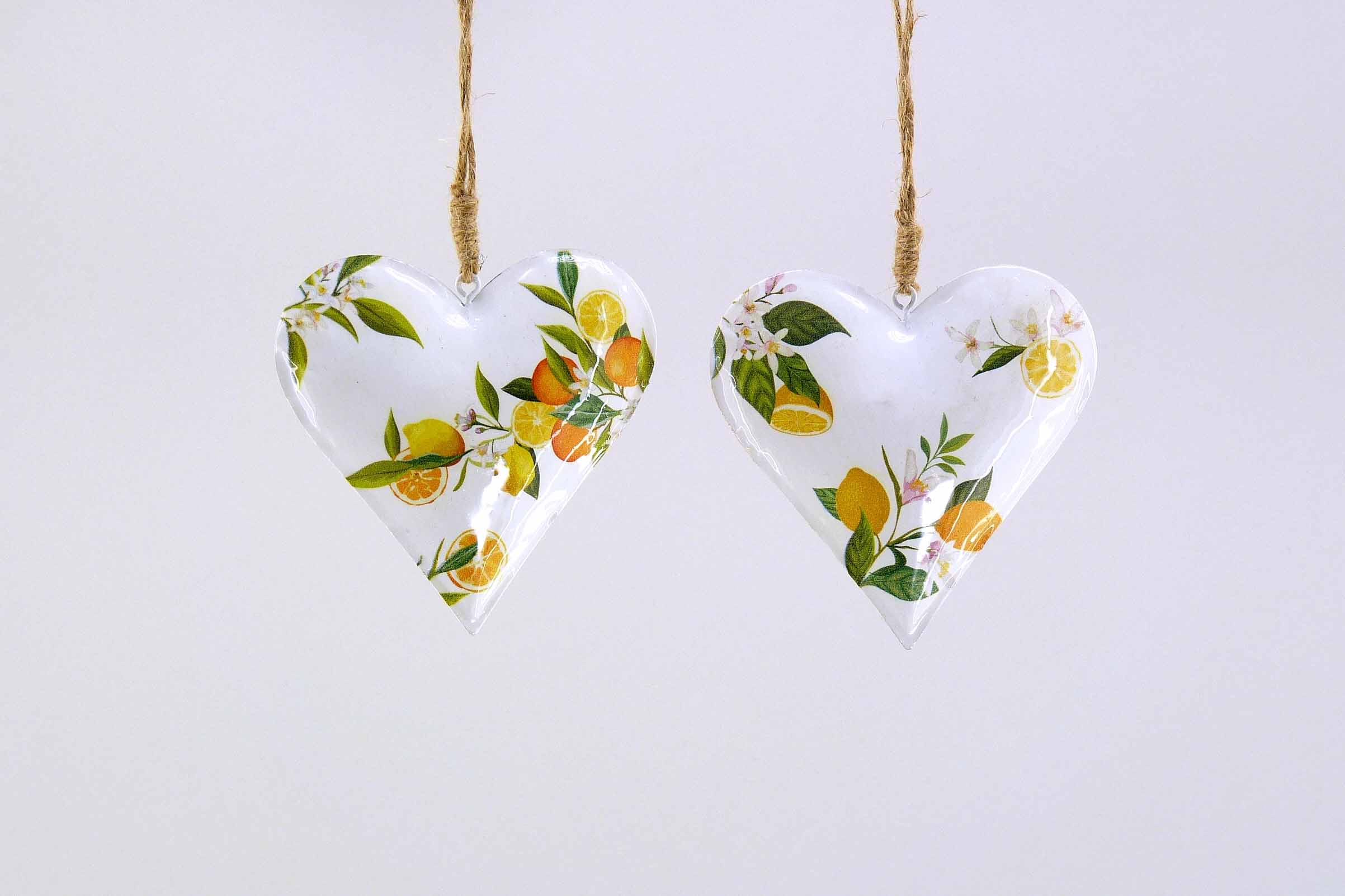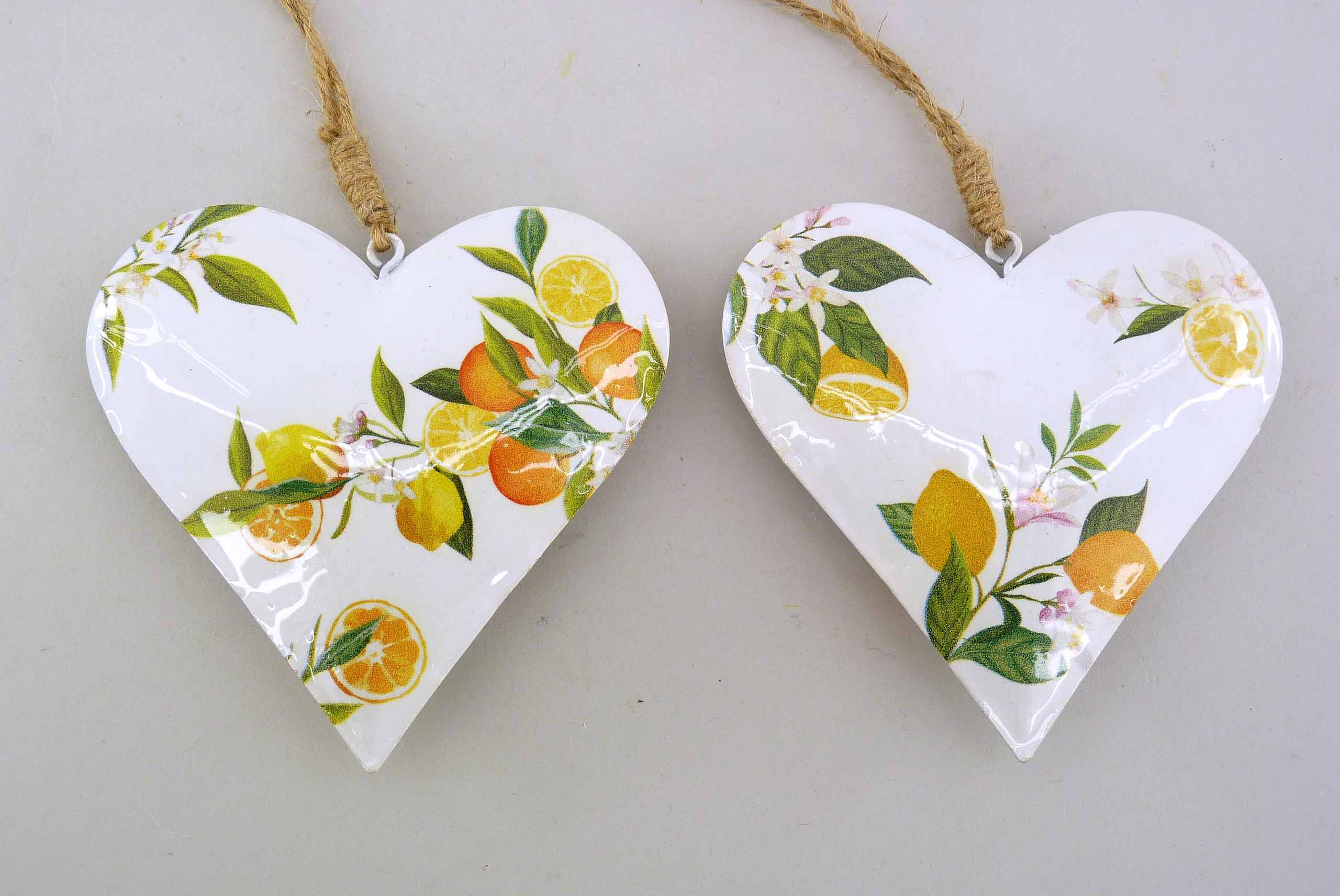 Metall-Herz ''Zitrusfrüchte'' hgd. weiß-gelb-orange sort. H/B10cm