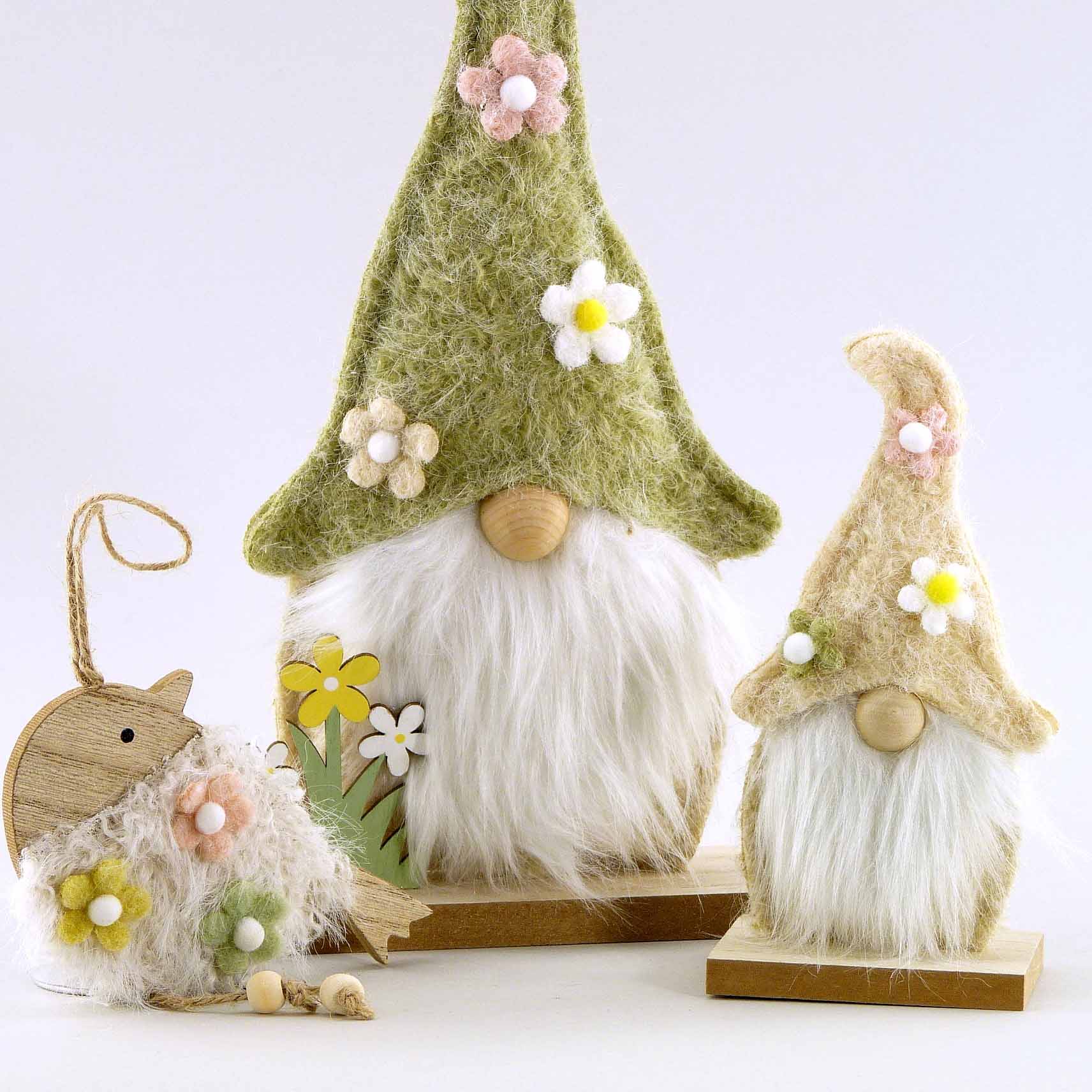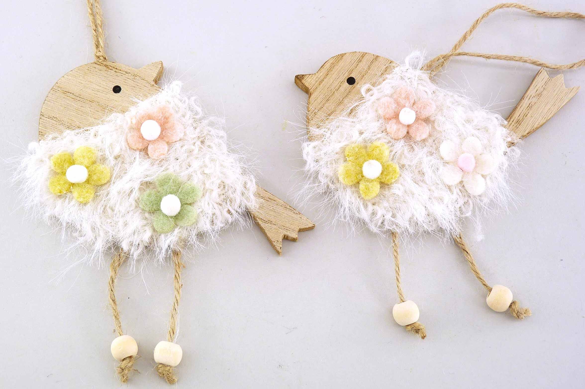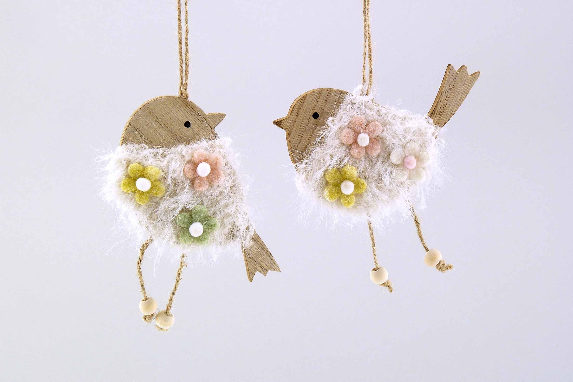 Stoff/Holz-Vogel ''Blümchen'' hgd. natur-creme-pastell sort. H13cm