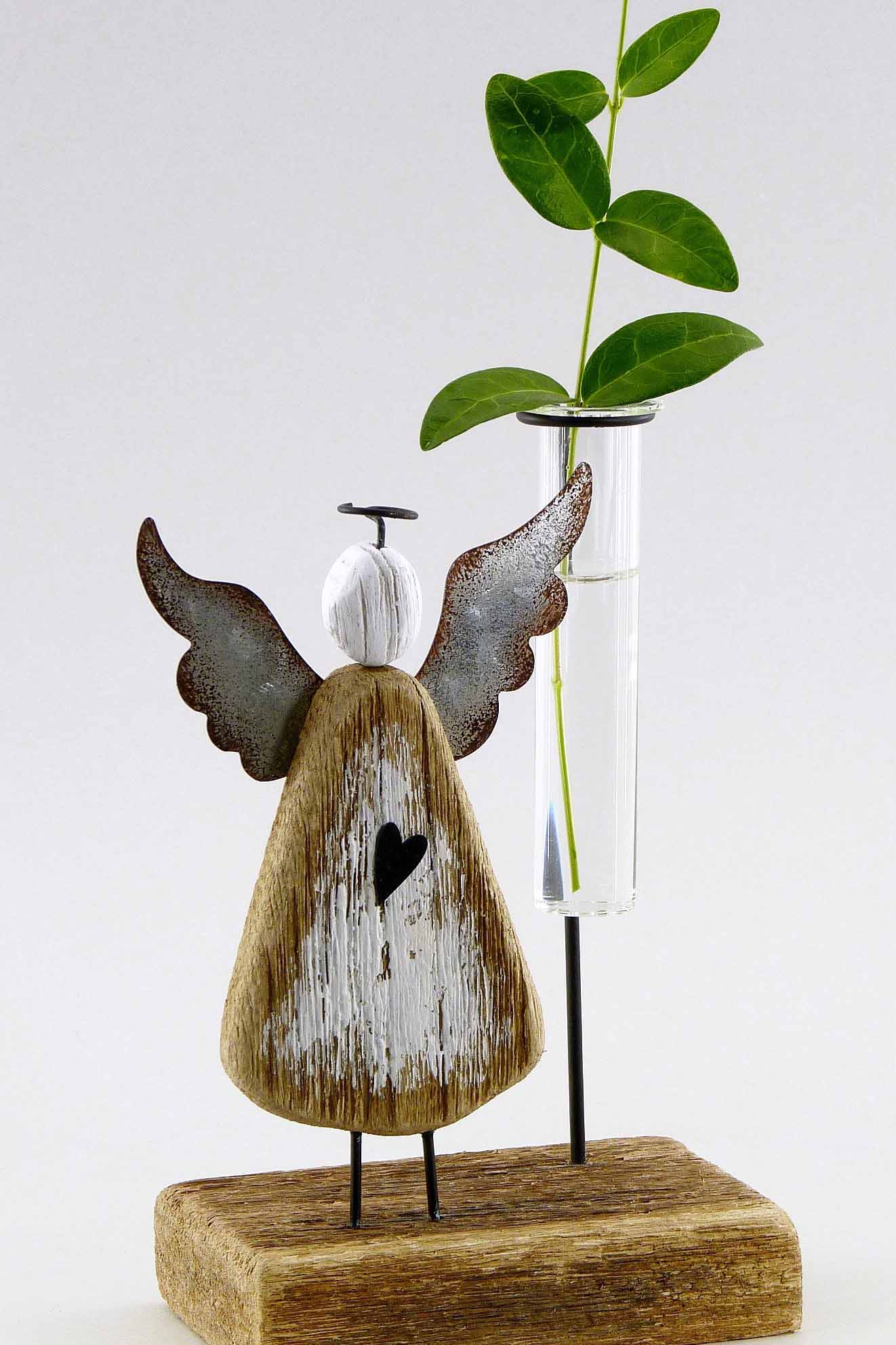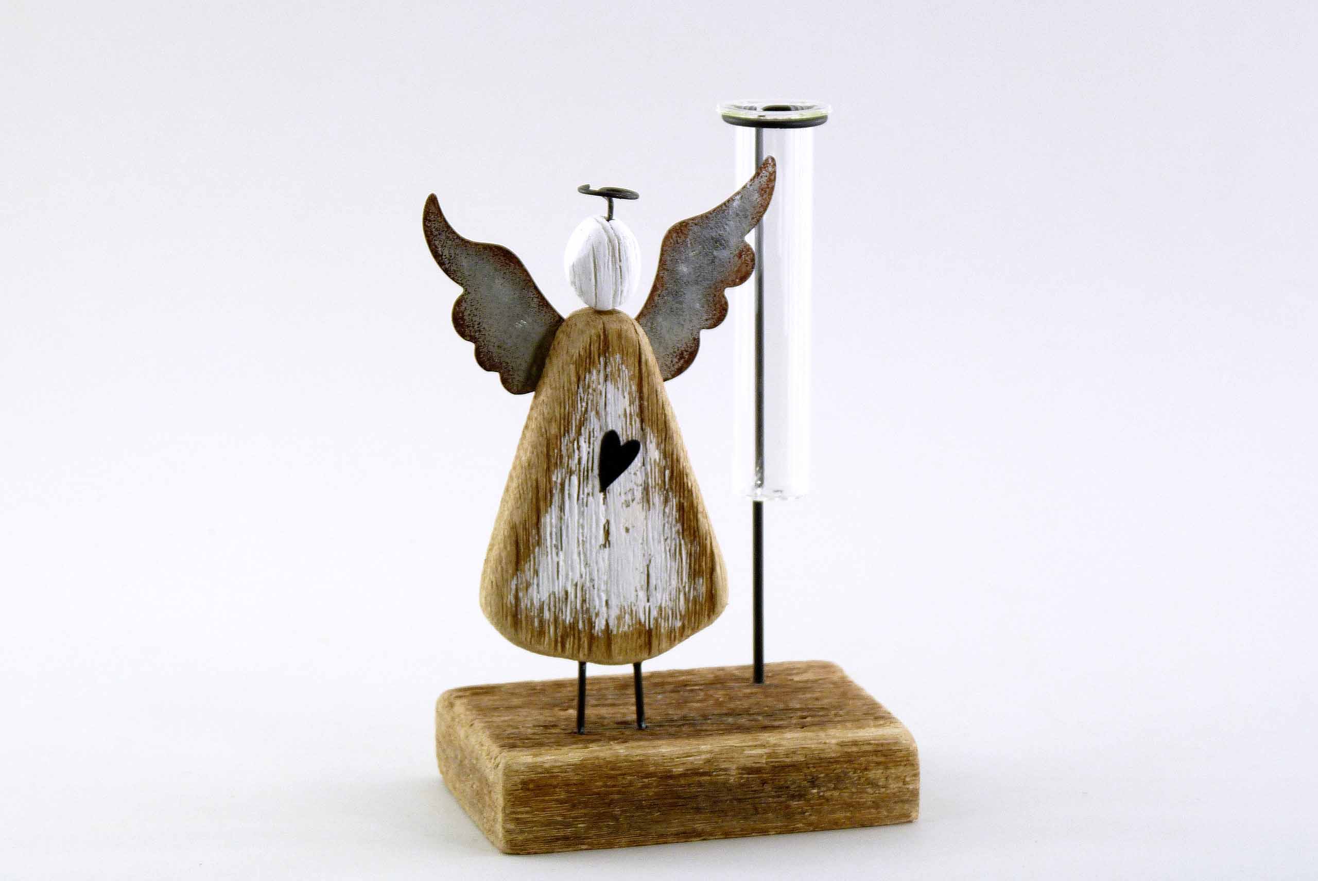 Schwemmholz-Engel +Glasvase natur-weiß H18 B11cm