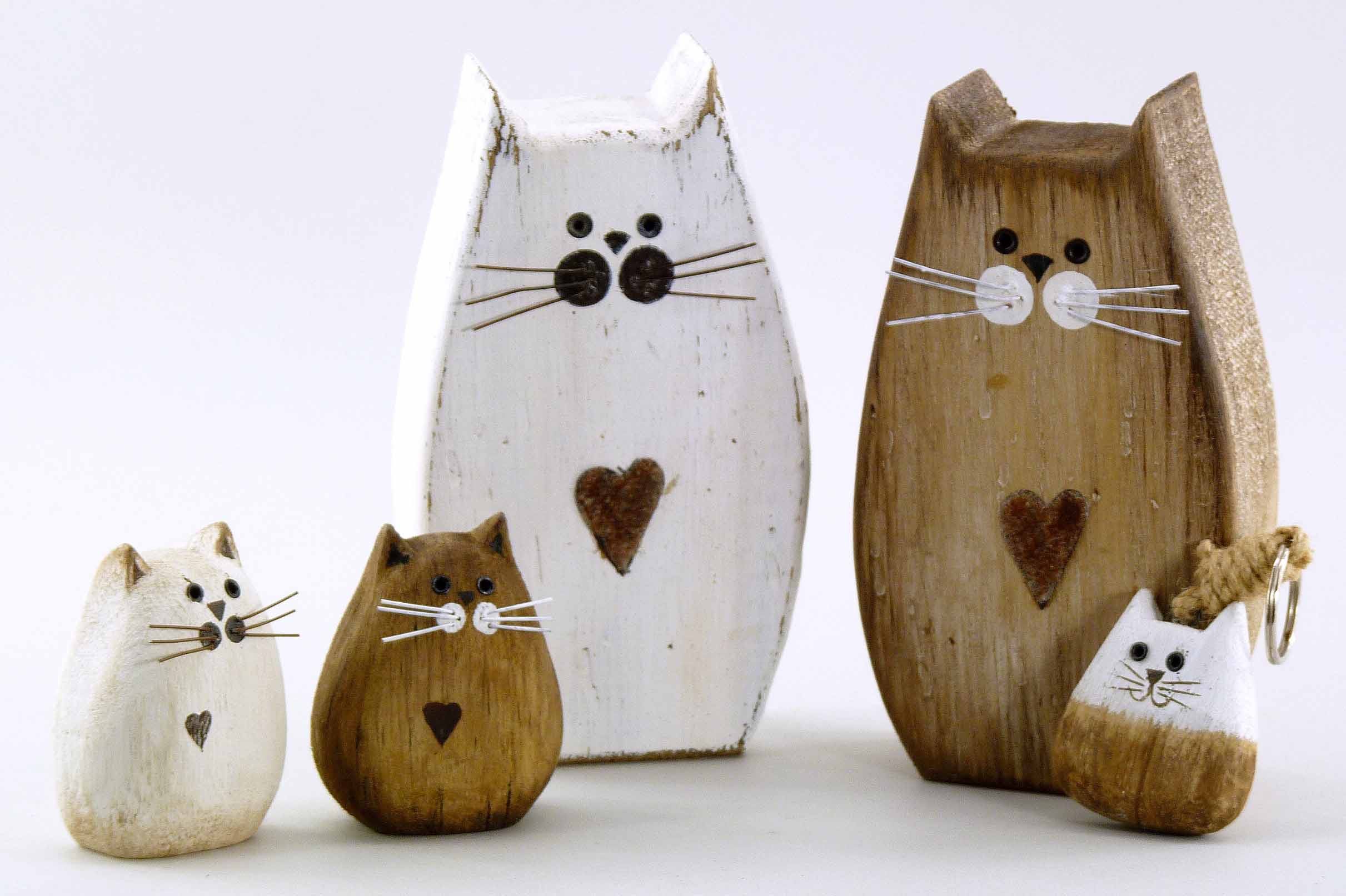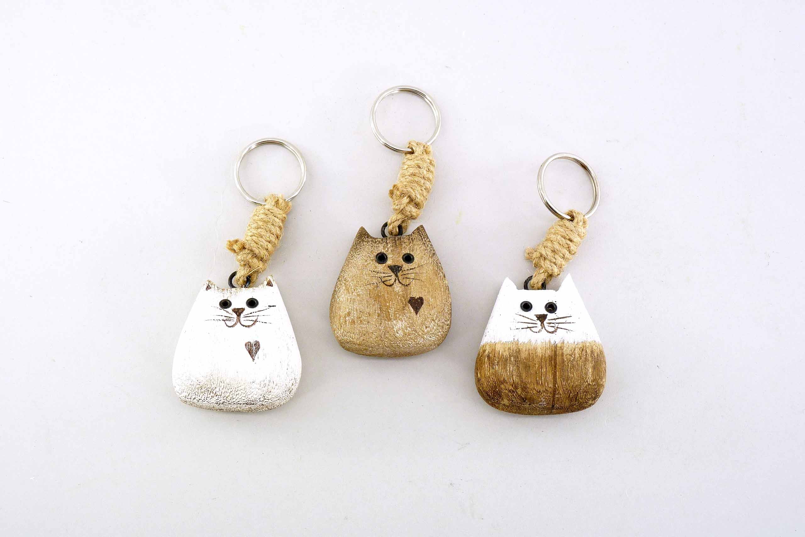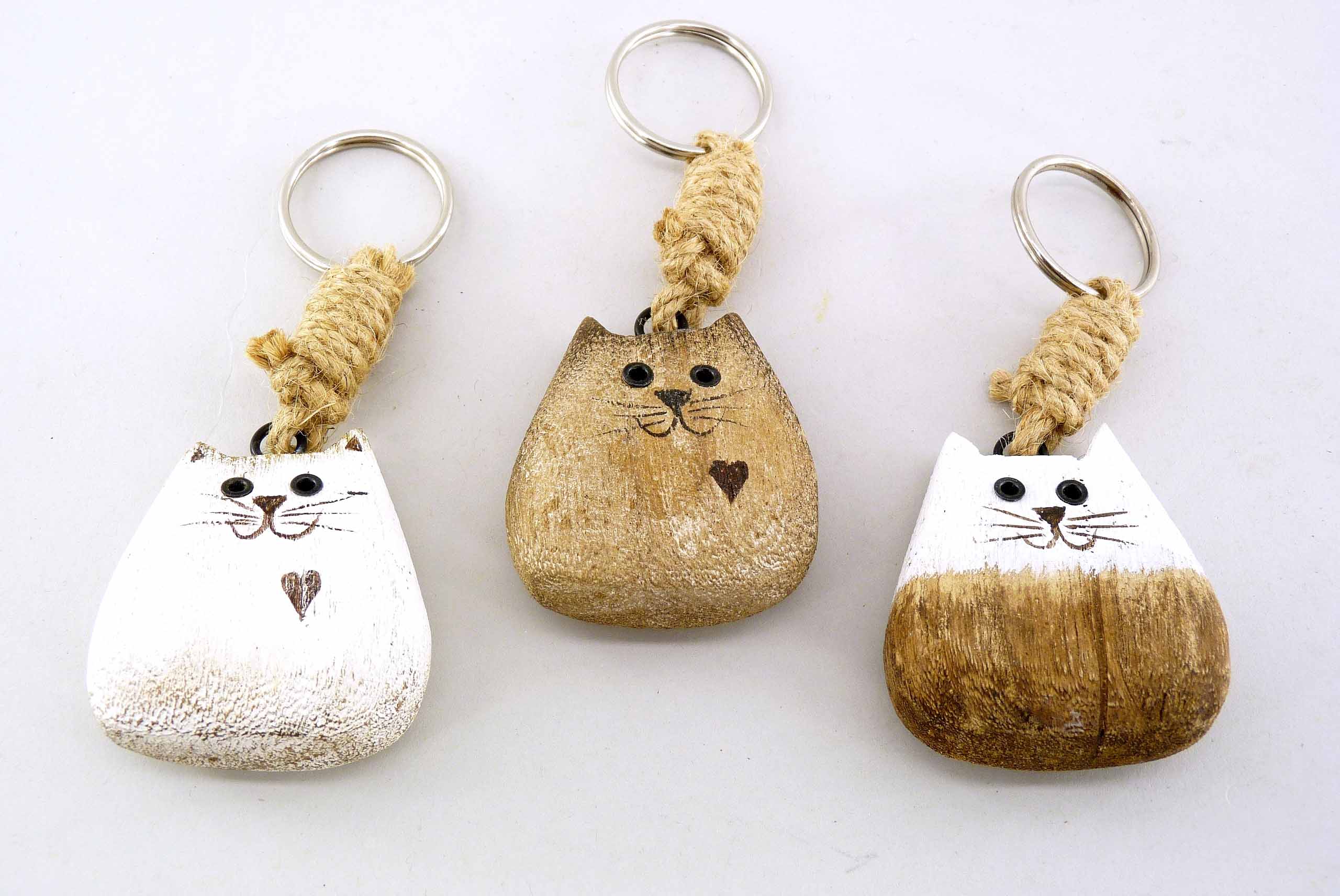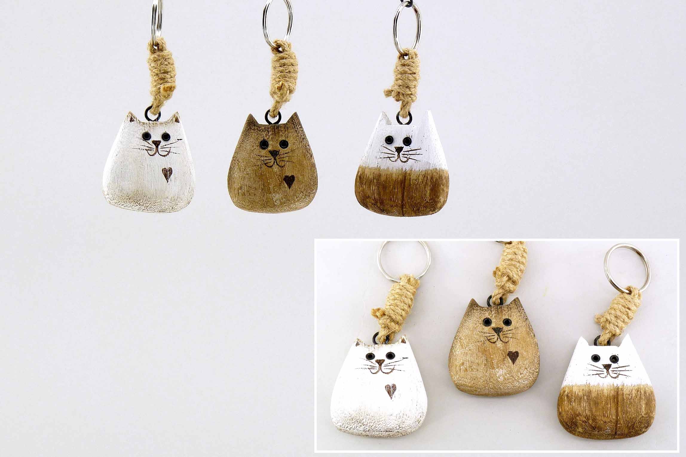 Schwemmholz-Schlüsselanhänger ''Katze'' natur-weiß sort. H5 B4,5cm