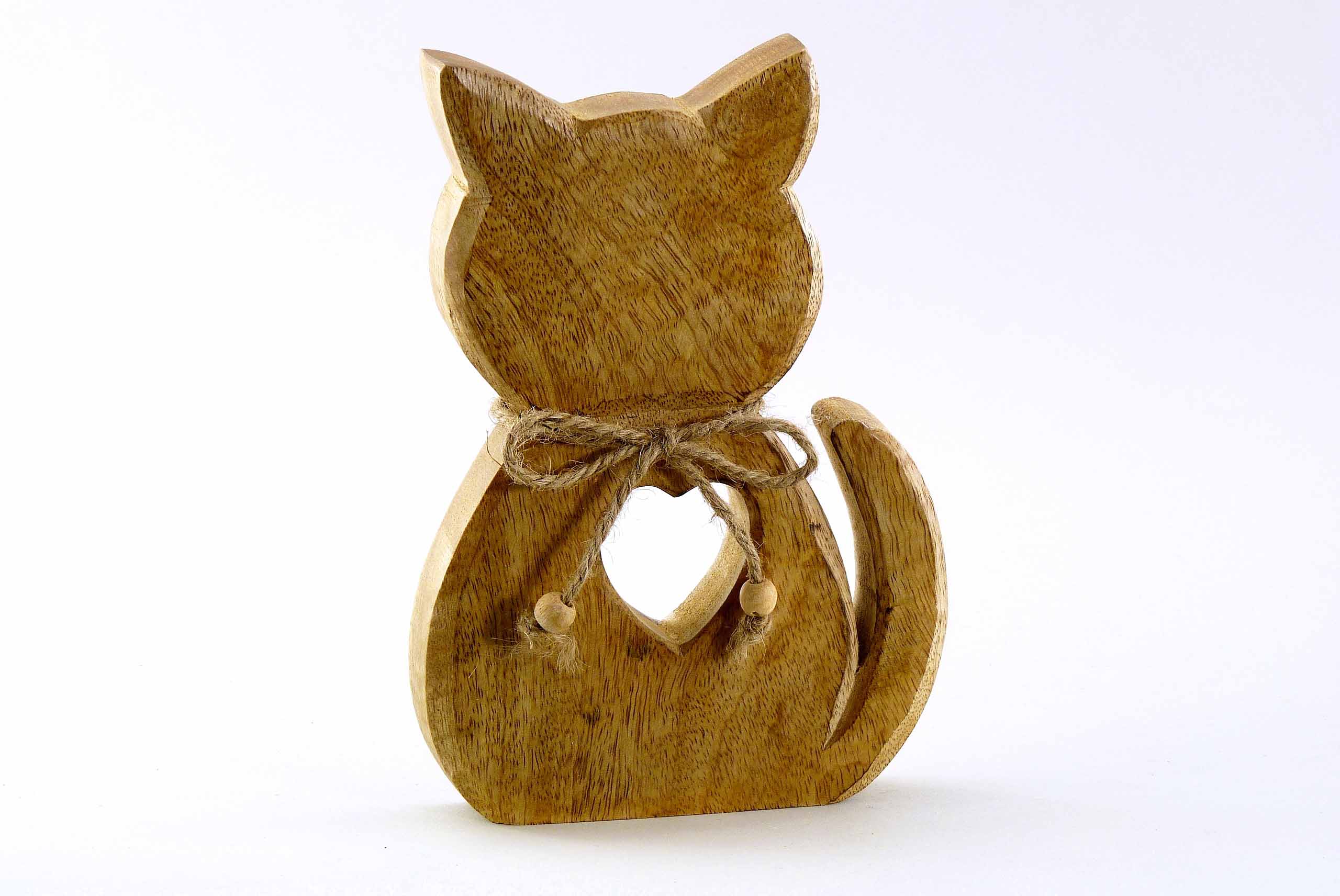 Mangoholz-Katze ''Herz'' natur H20 B14cm