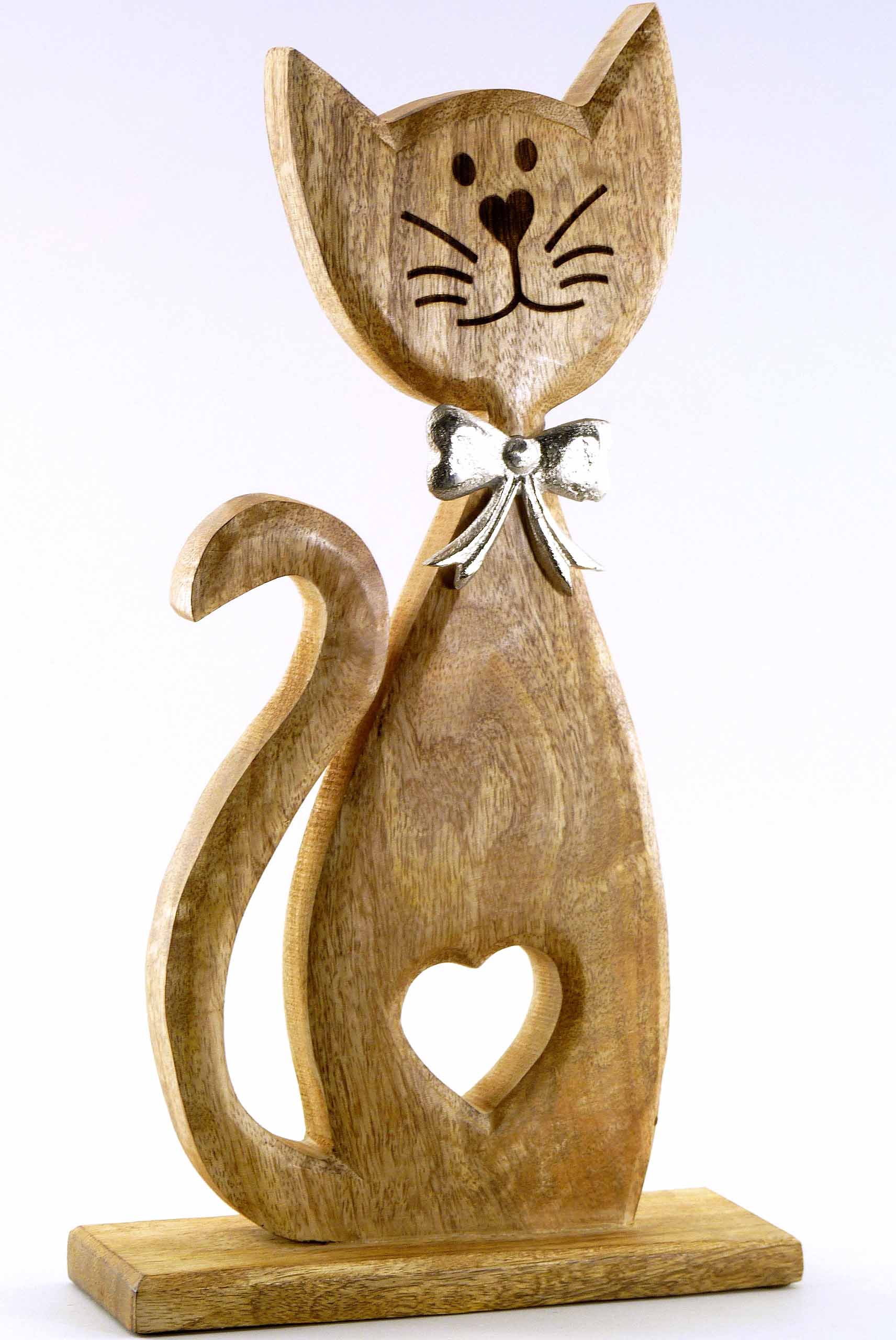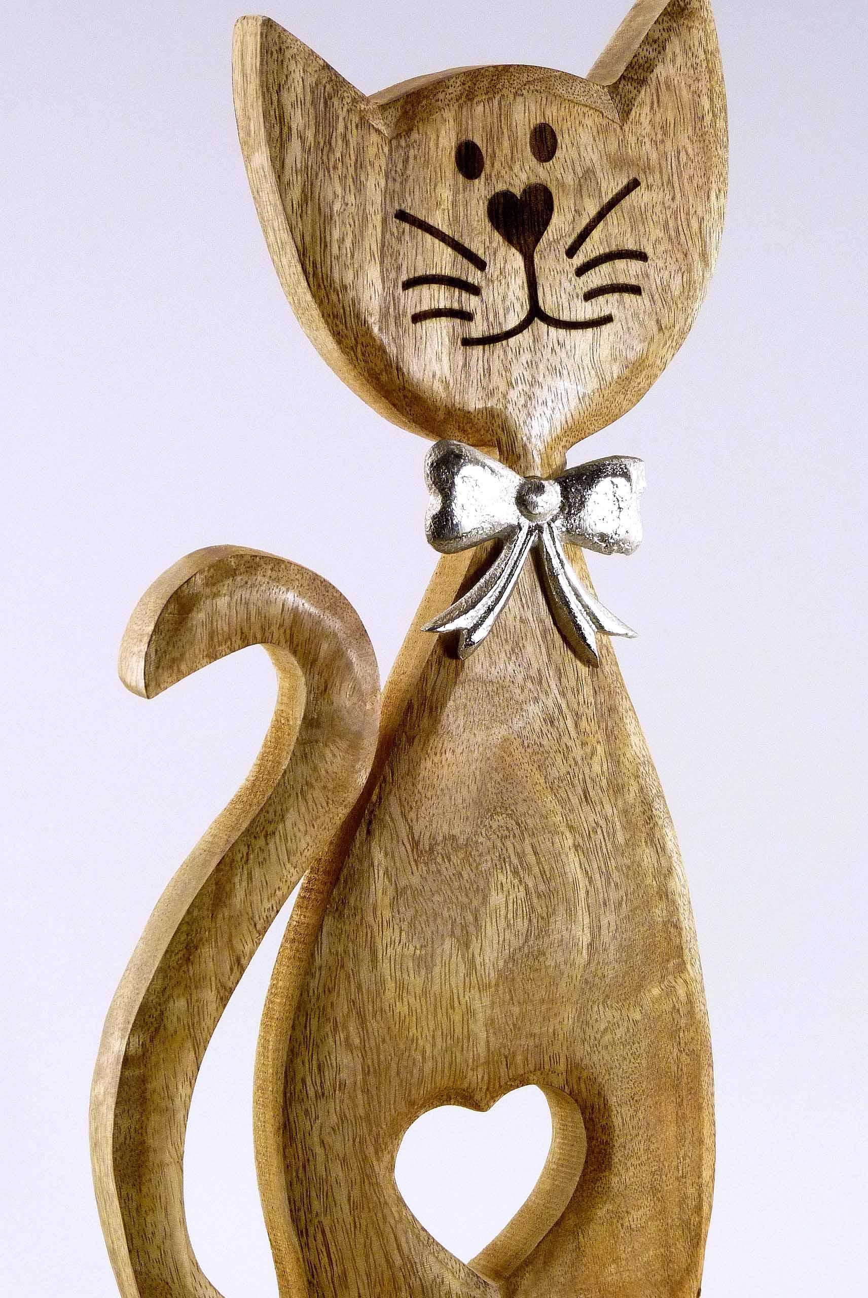 Mangoholz/Alu-Katze ''Herz'' natur-silber H41 B23cm