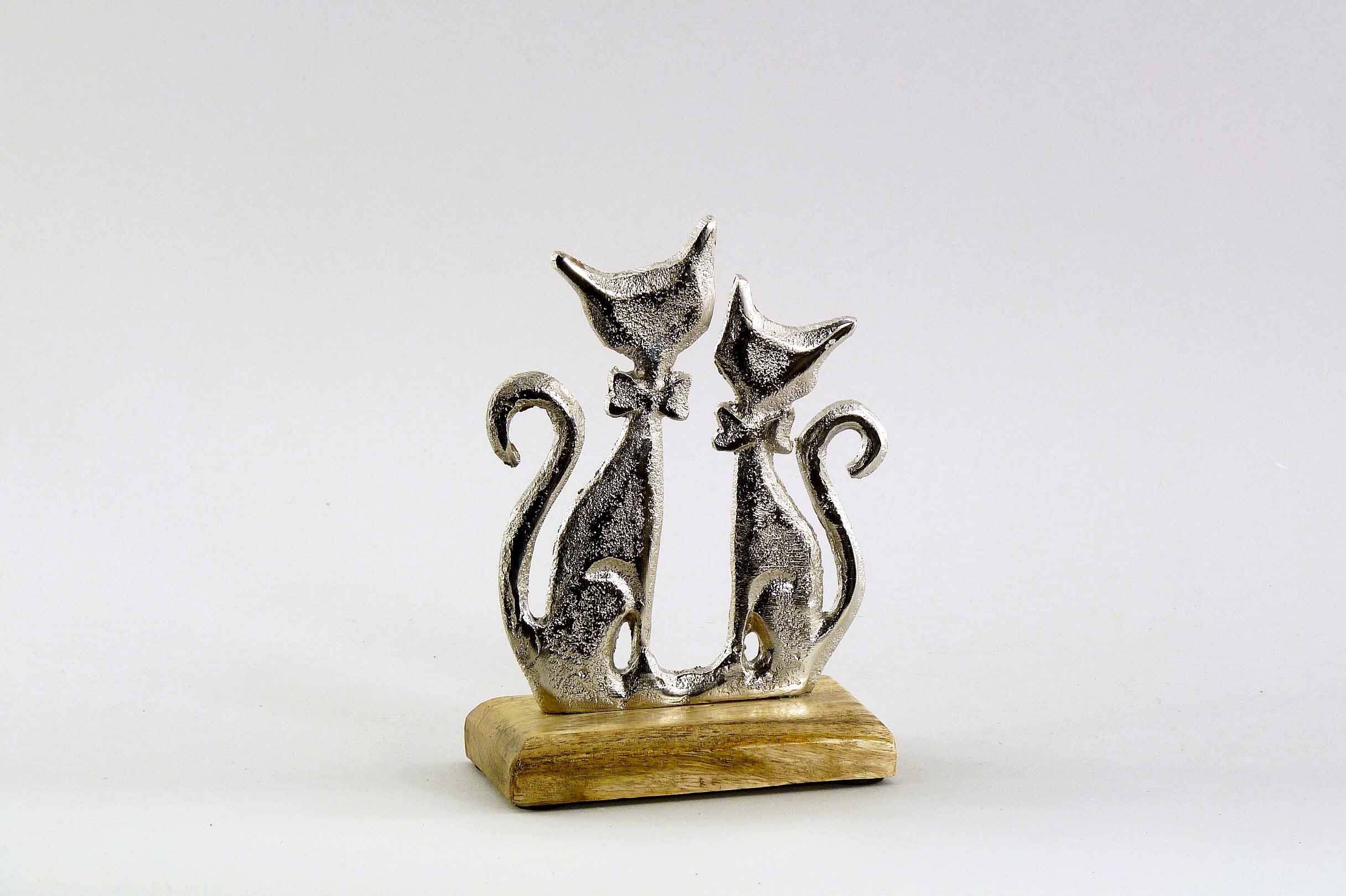 Alu/Mangoholz-Katzenpaar natur-silber H14,5 B11cm