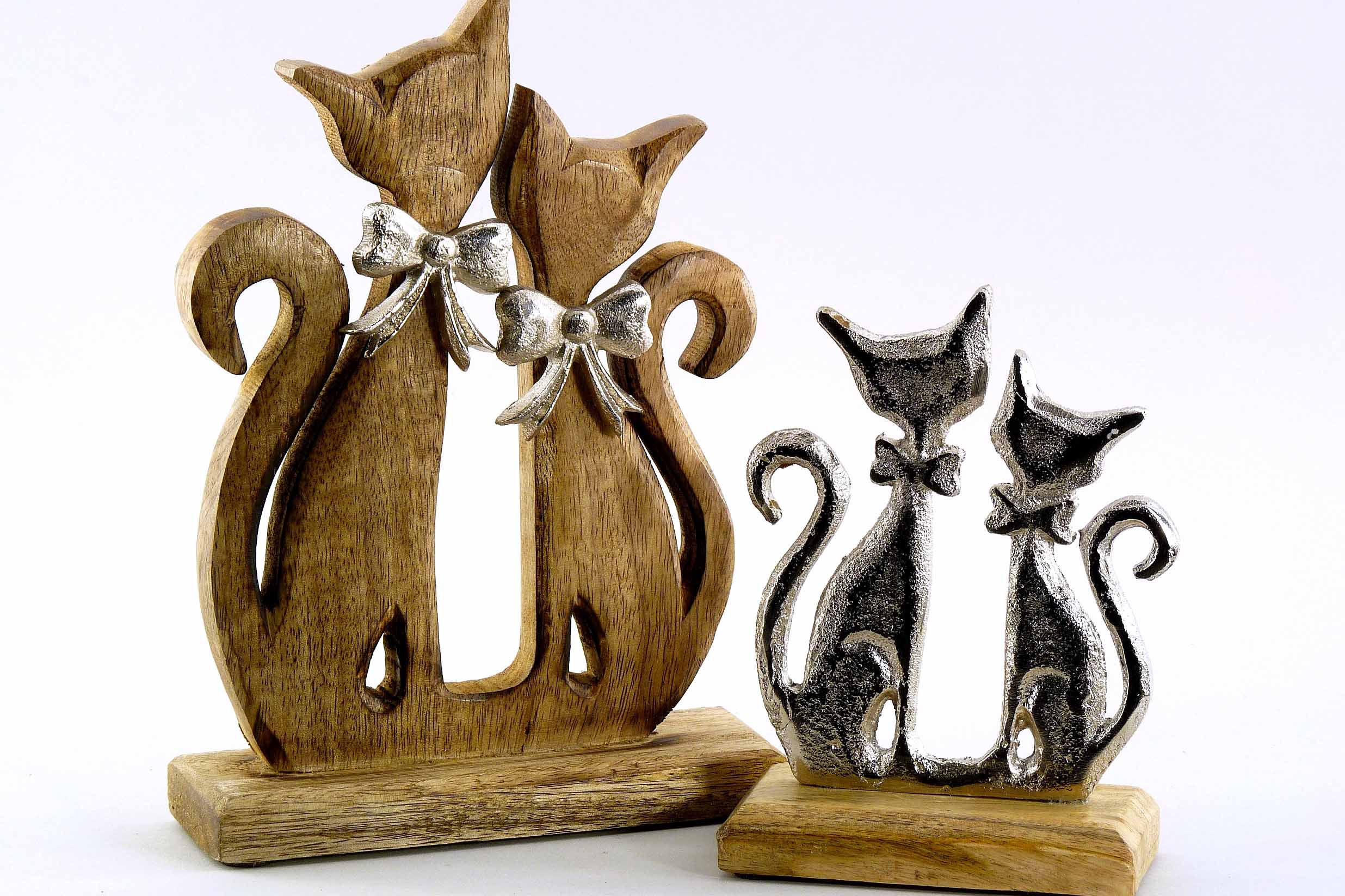 Mangoholz/Alu-Katzenpaar natur-silber H21,5 B15cm