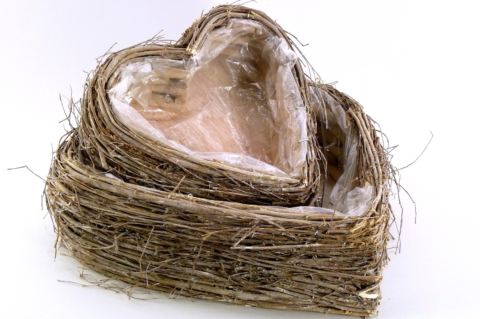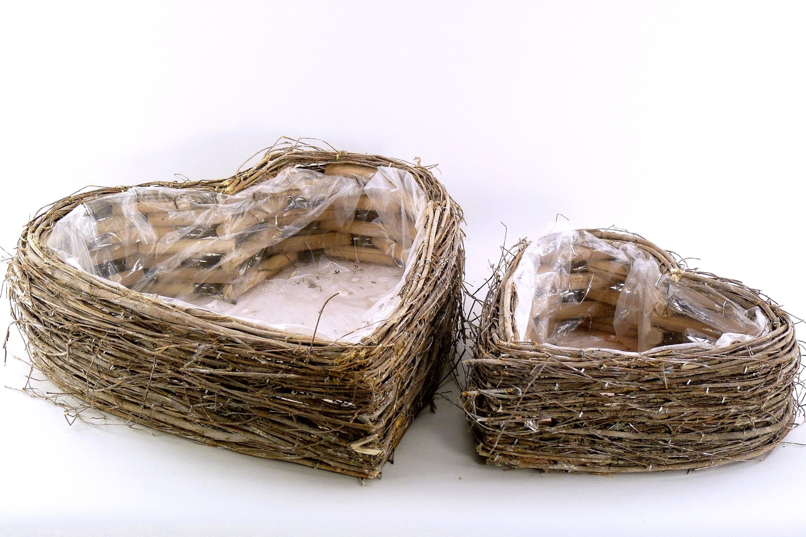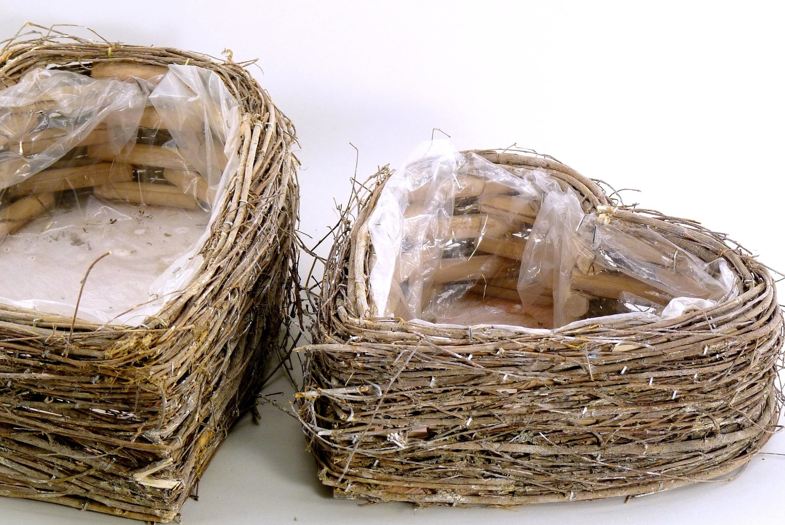 Reben-Pflanzschale ''Herz'' Set/2 natur-grey-wash ø22/32 H9/11cm