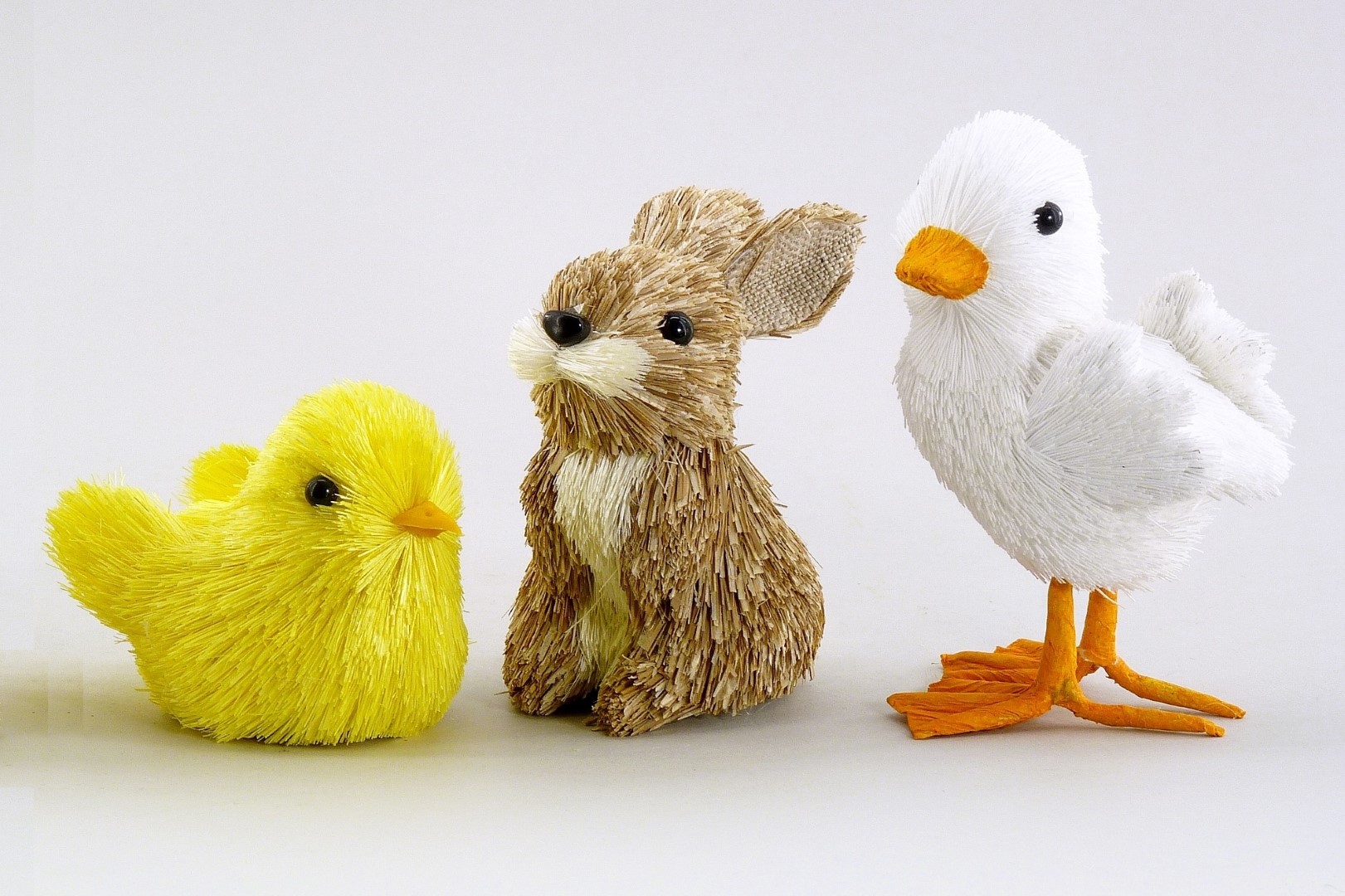 Gras-Hase/Ente/Küken natur/weiß/gelb sort. H6-11 B6-9cm