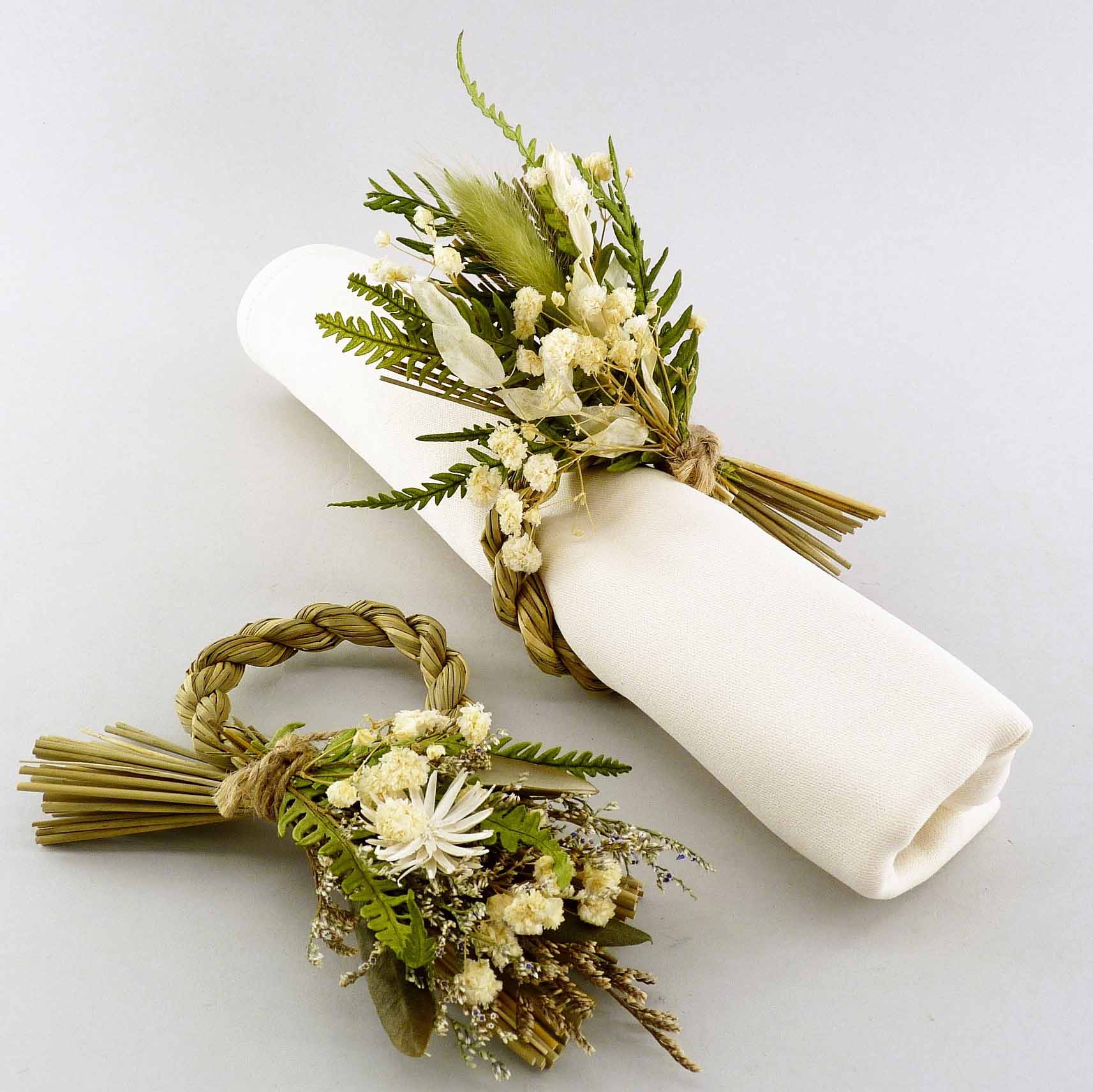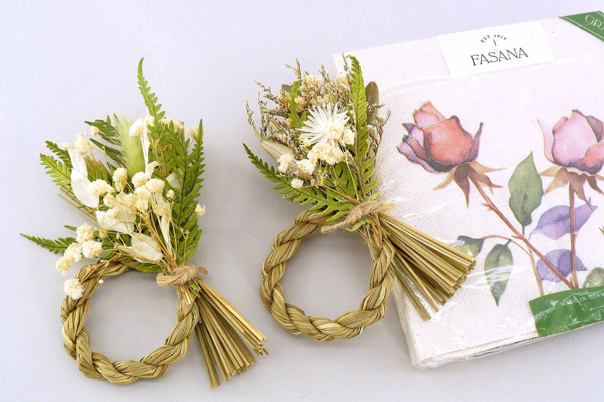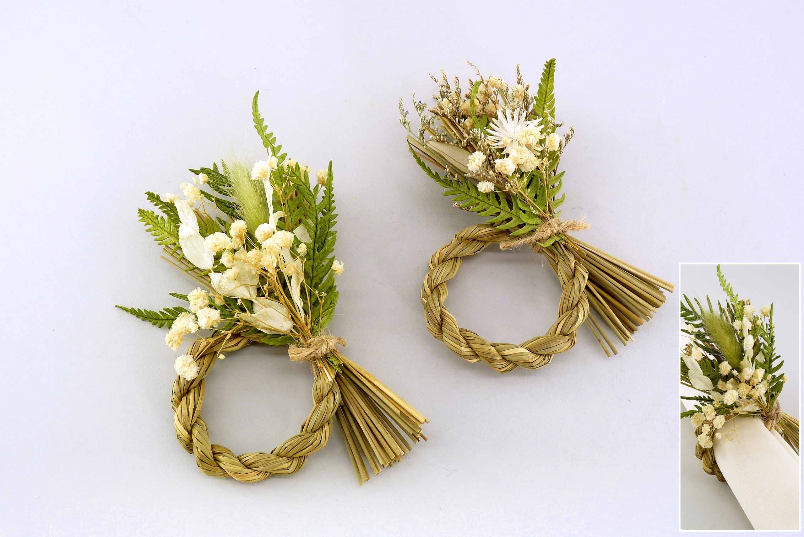 Gras-Serviettenring ''Mini-Farn'' natur-weiß-grün sort. H15 B11,5cm