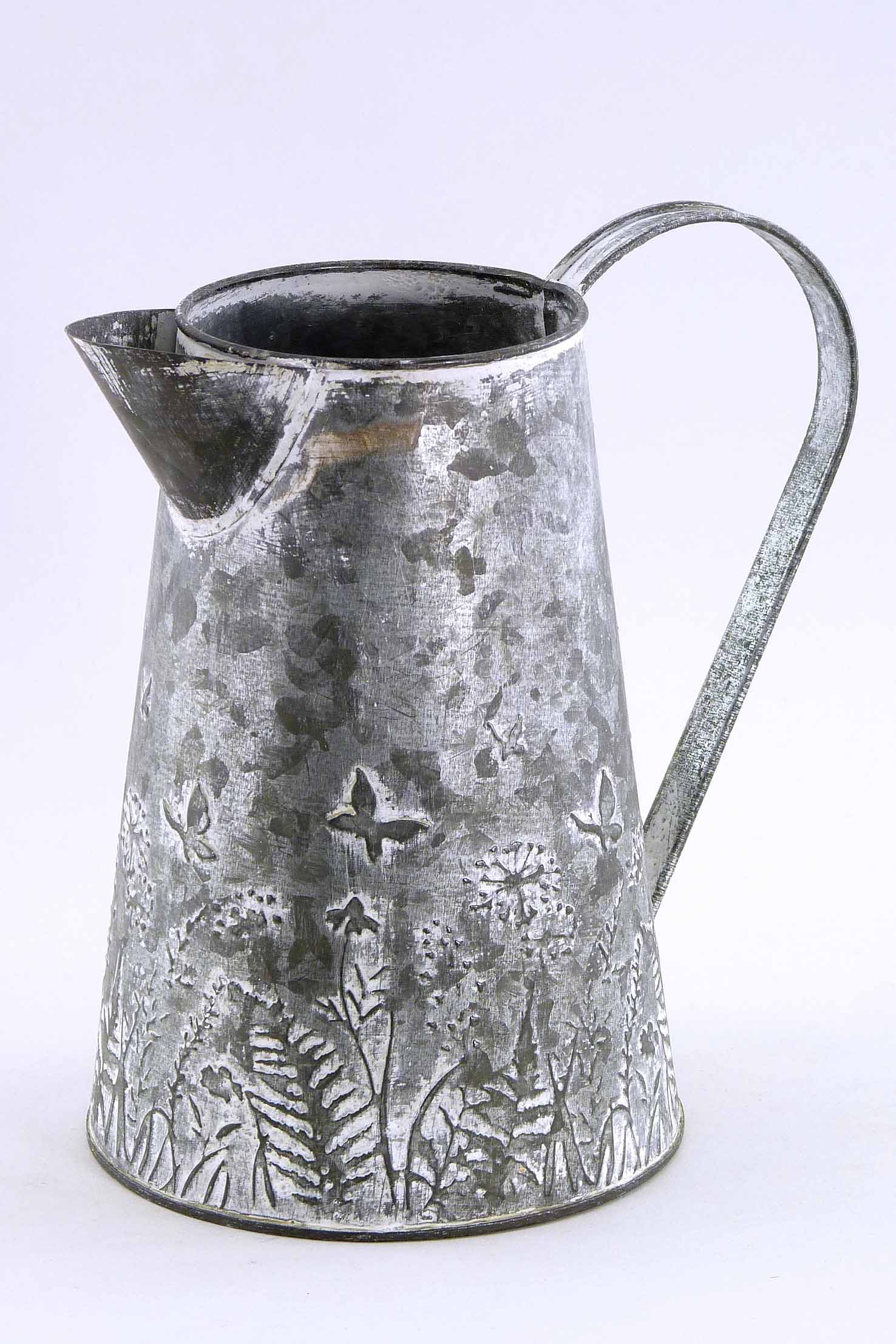 Metall-Kanne ''Wiese'' zinkgrau-weiß ø13,5/9 B20 H19cm
