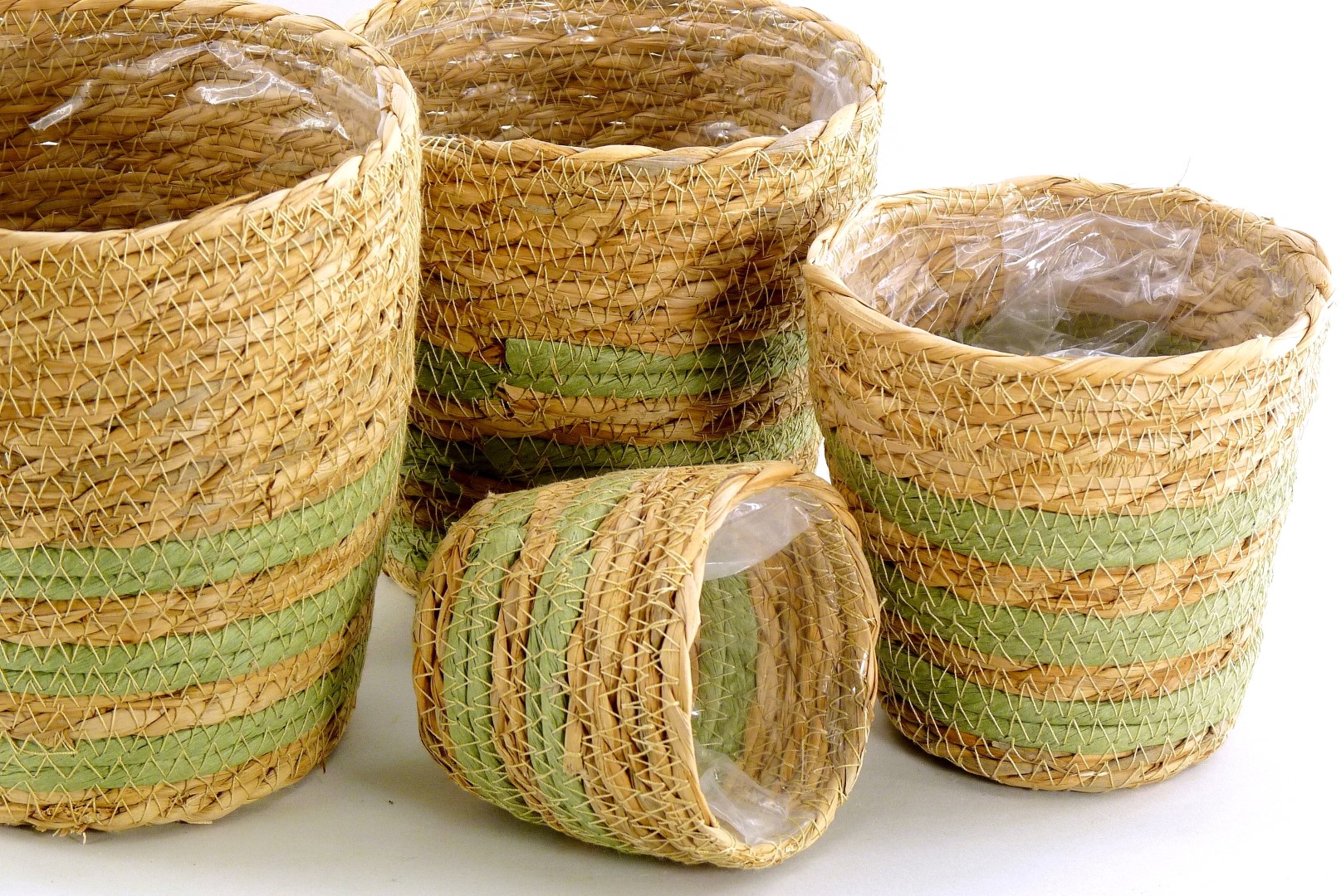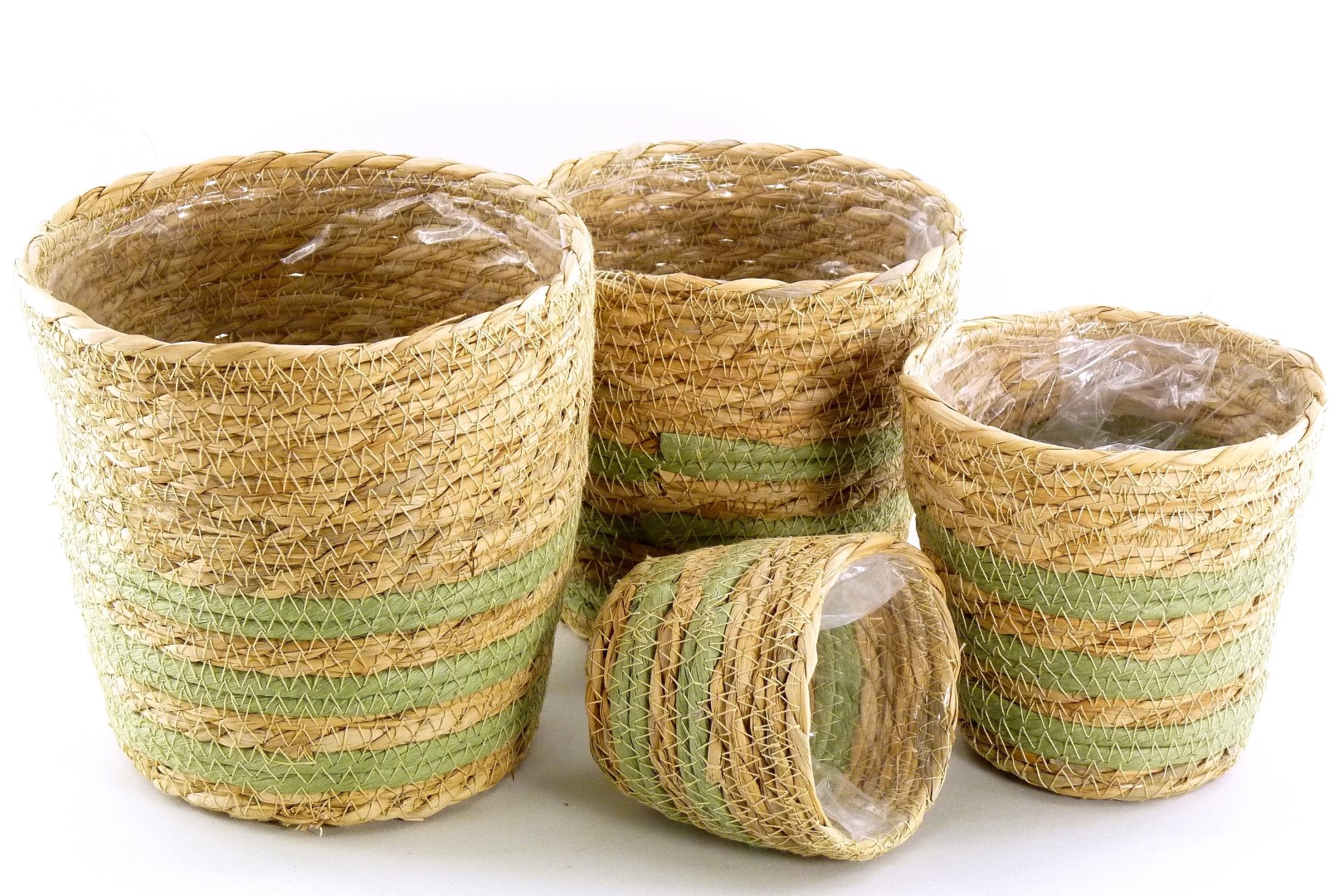 Seegras-Pflanzschale Set/4 rund natur-braun-grün ø/H 10/14/16/19cm