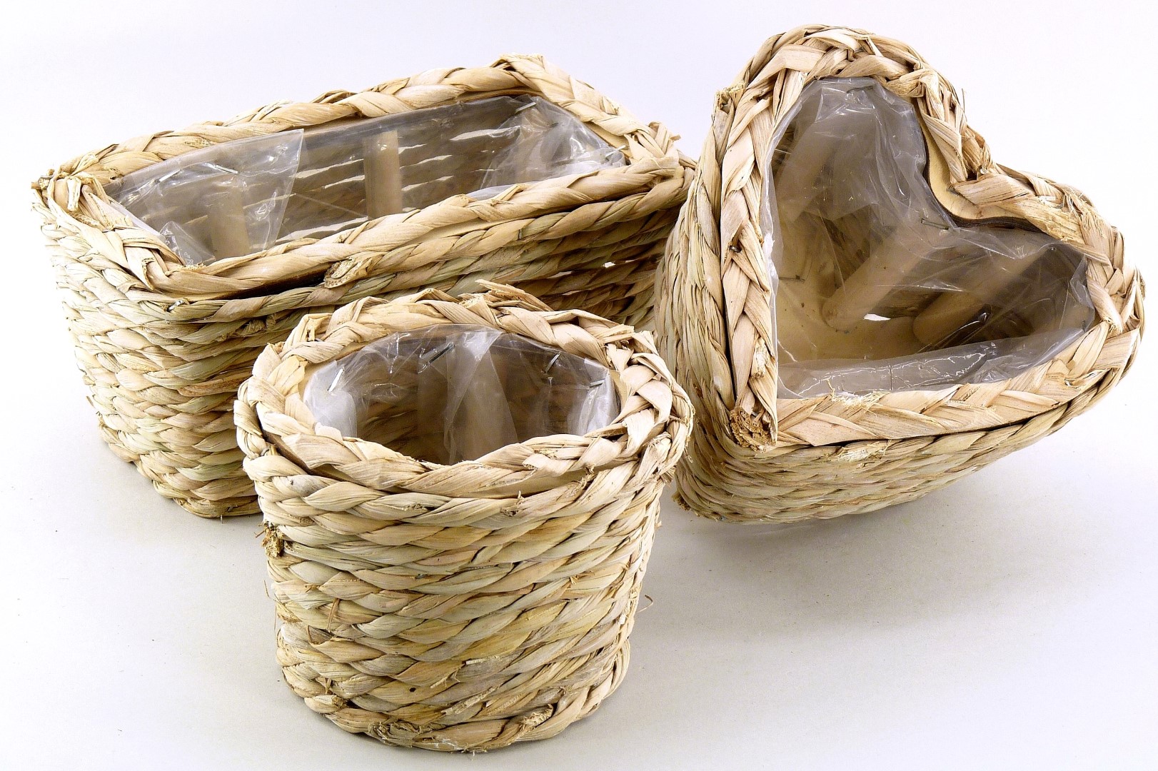 Seegras-Pflanzschale ''Flecht-Look'' S/2 Herzform natur ø15/25 H10/11cm