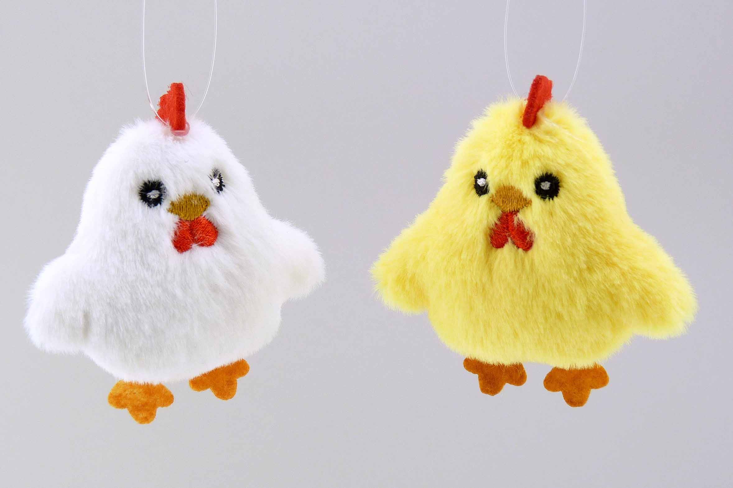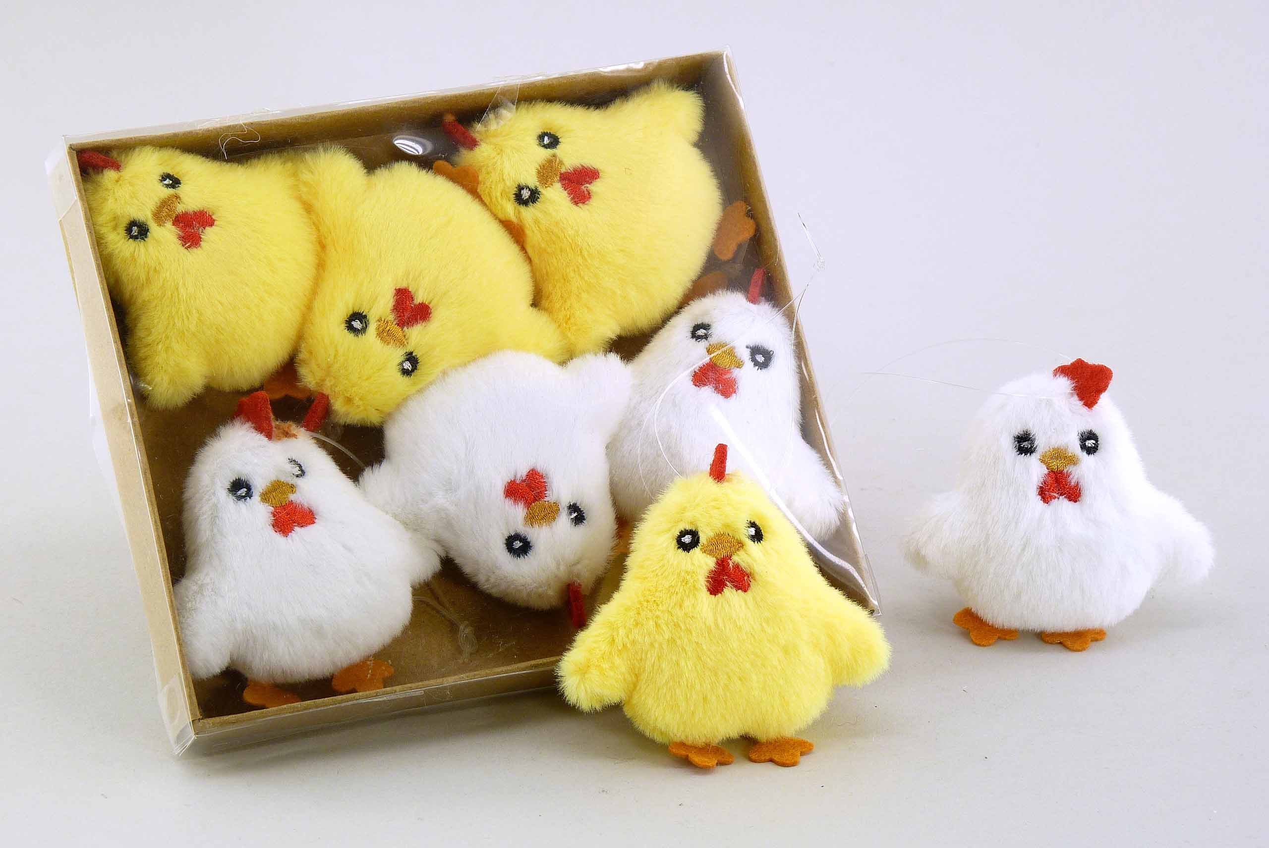 Stoff-Küken Box/6 hgd. weiß-gelb H6,5cm