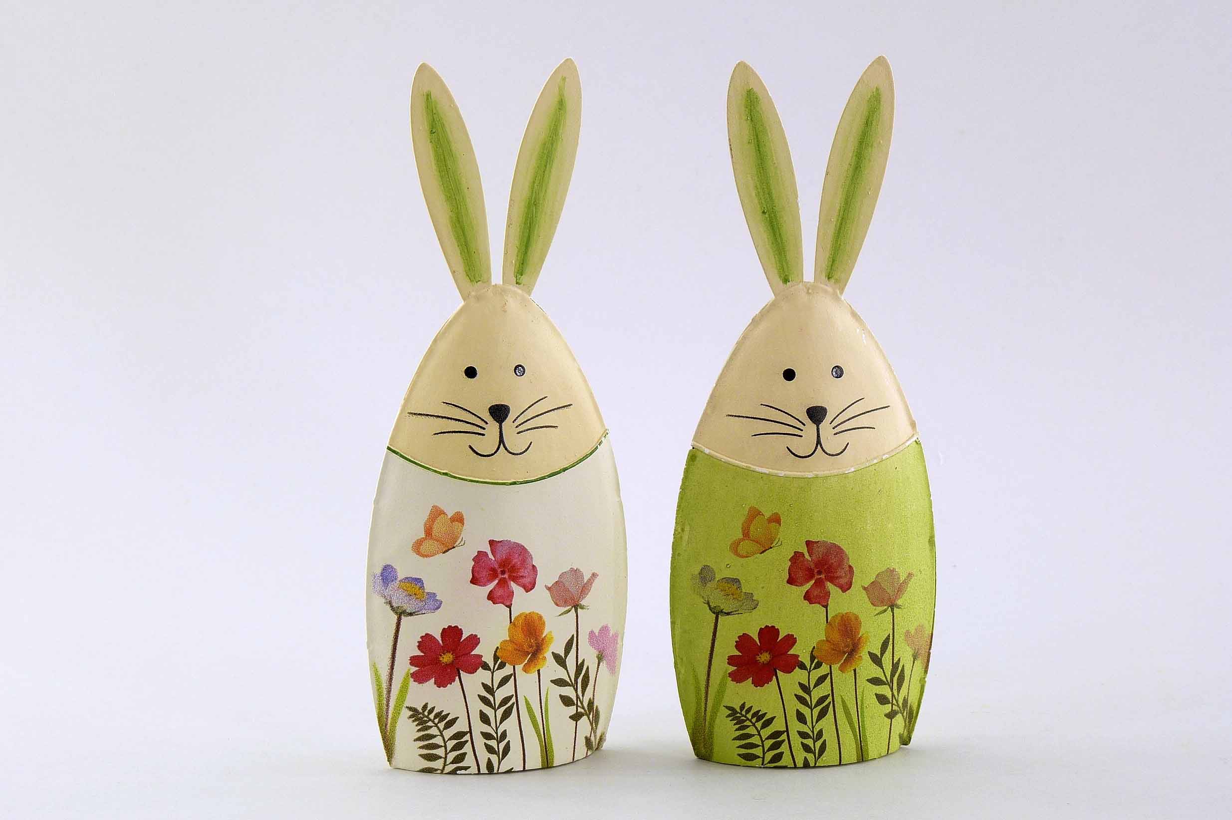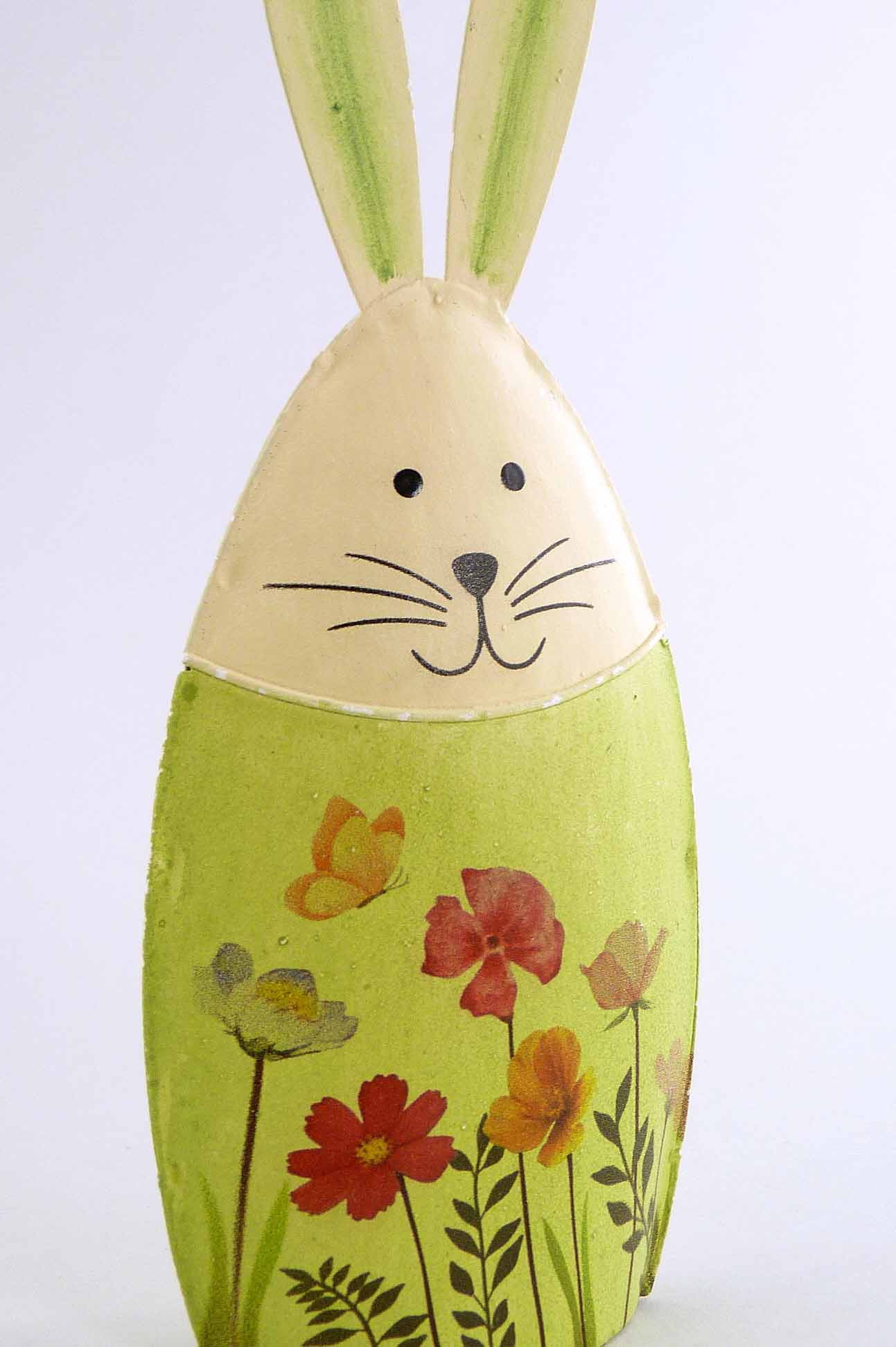 Metall-Hase ''Floral'' grün/weiß-bunt sort. H18cm