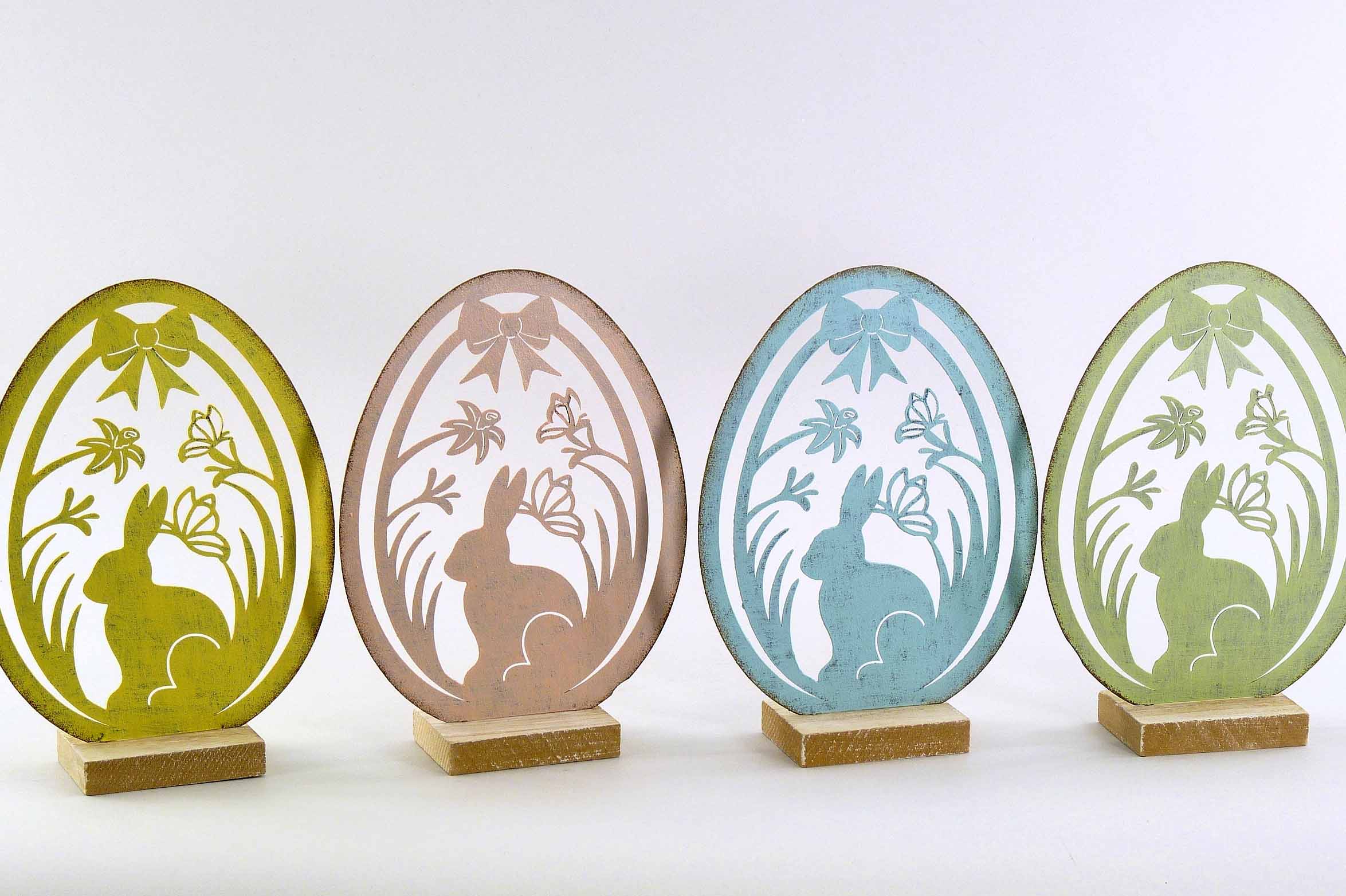 Metall-Osterei ''Hasenbild'' pastell-mix sort. H18 B13cm