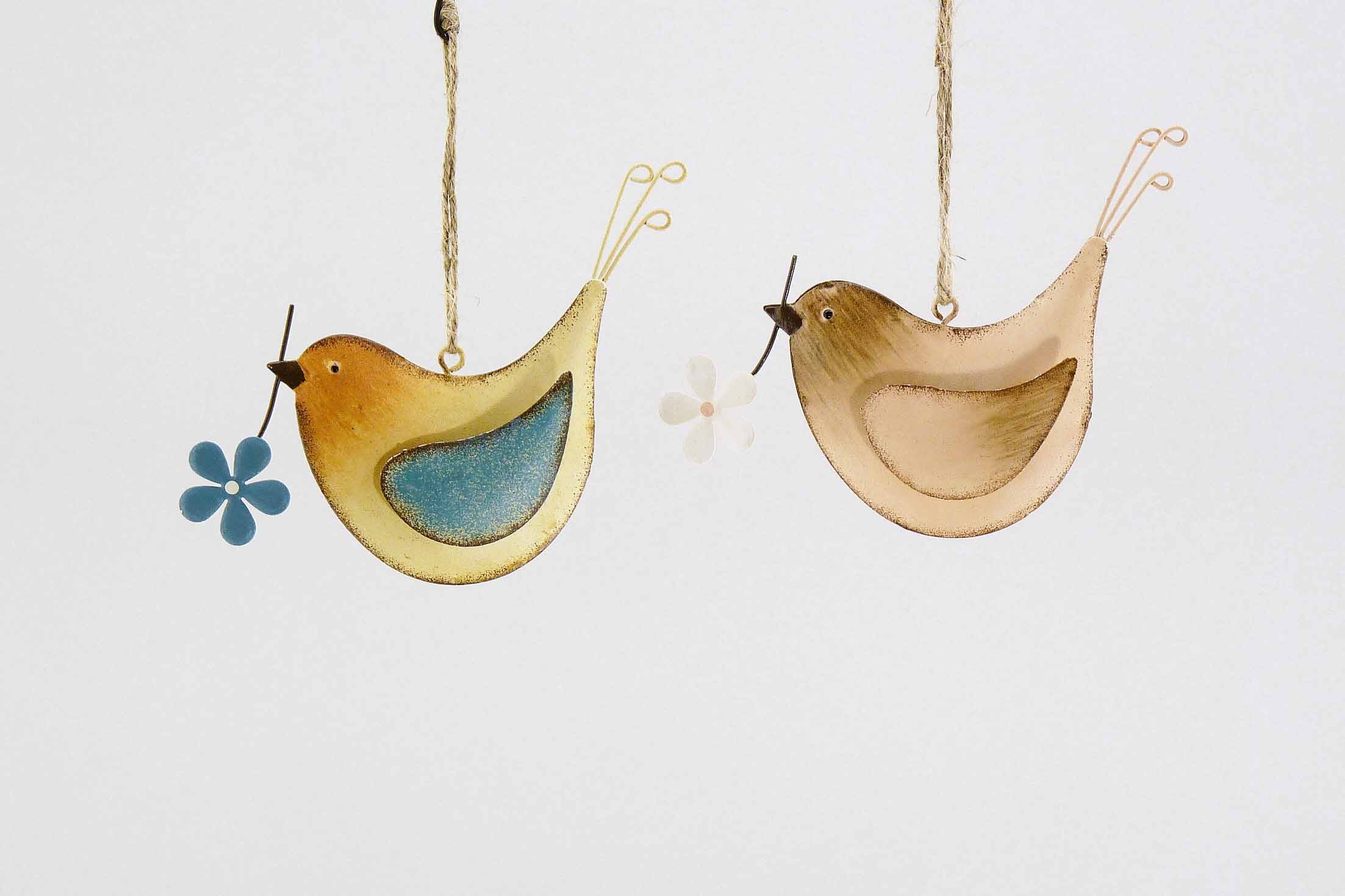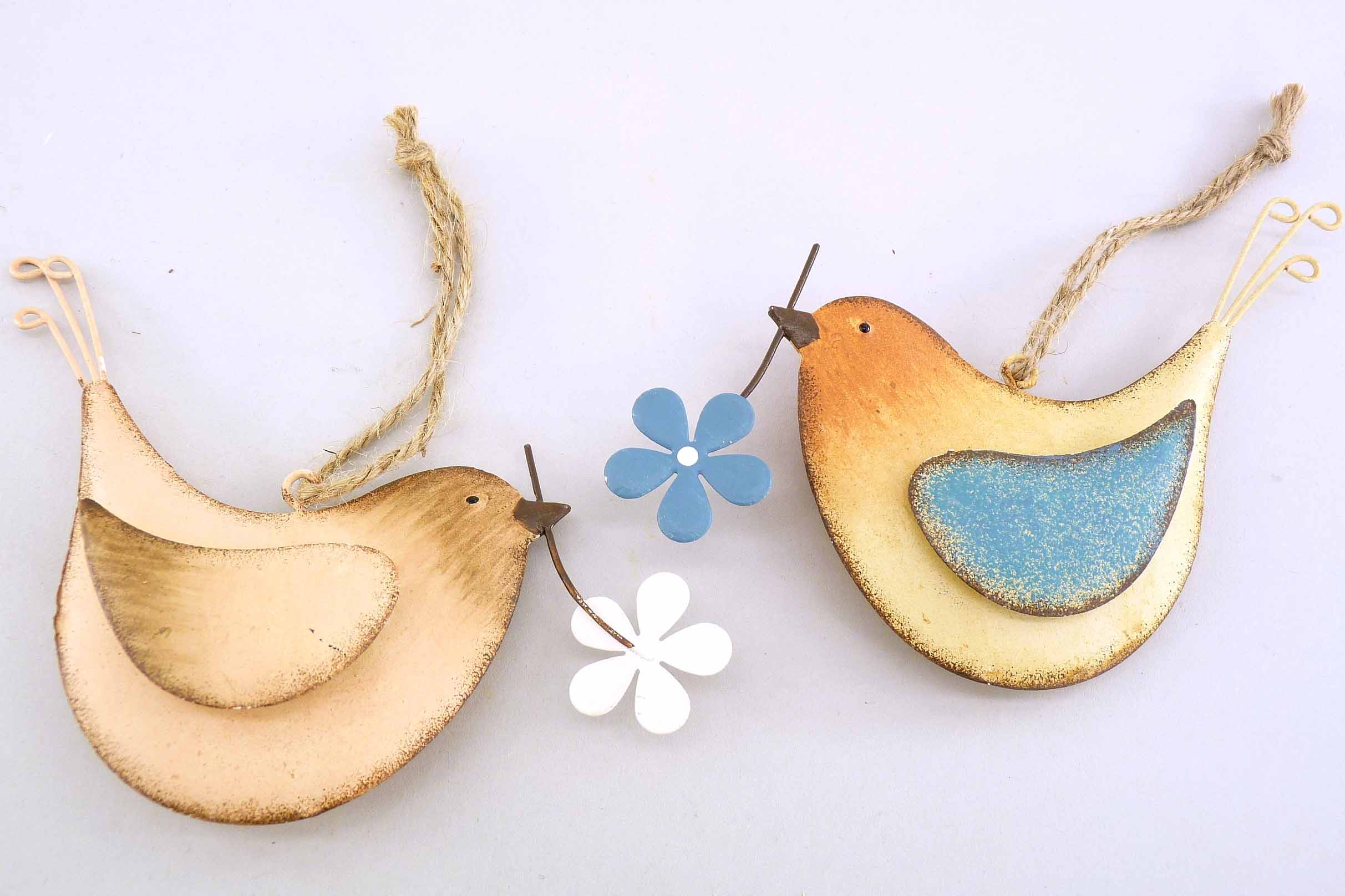 Metall-Vogel hgd. creme-rosé/blau sort. H8 B14cm