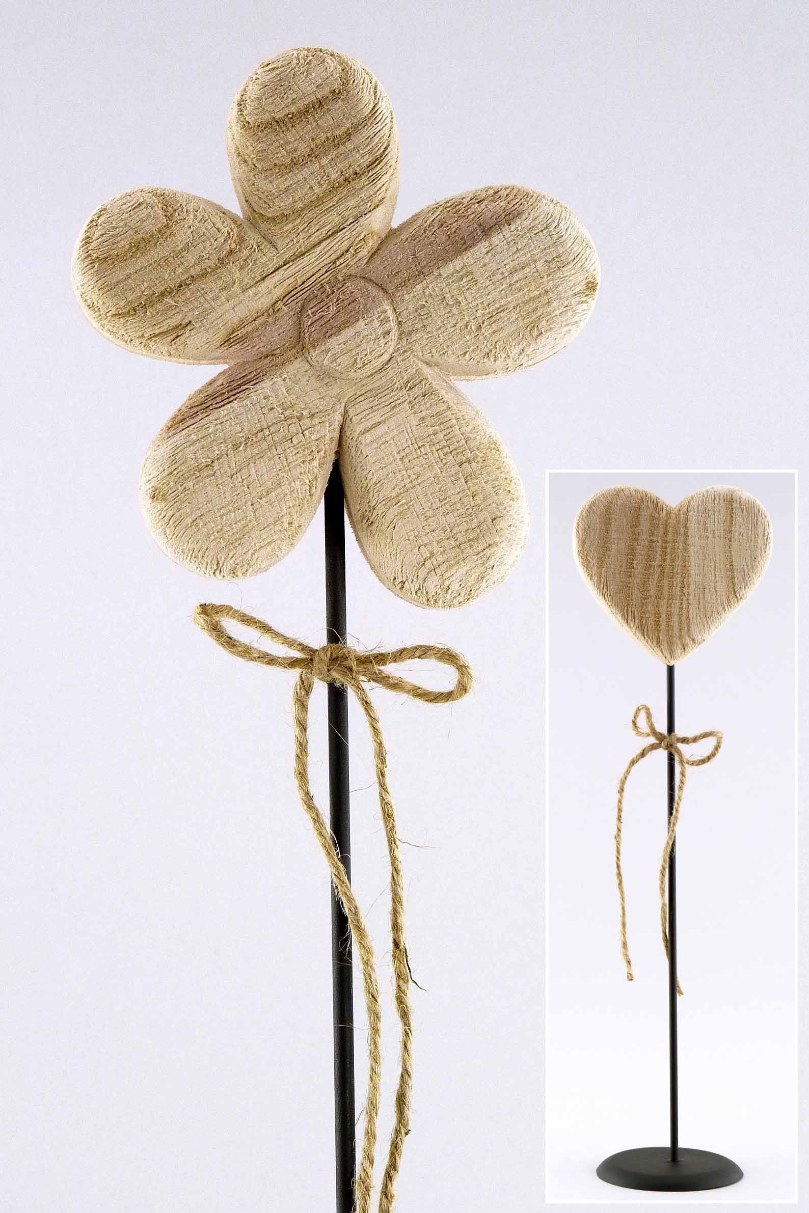 Holz-Blume/Herz sth. natur-schwarz sort. ø12/13 H44cm