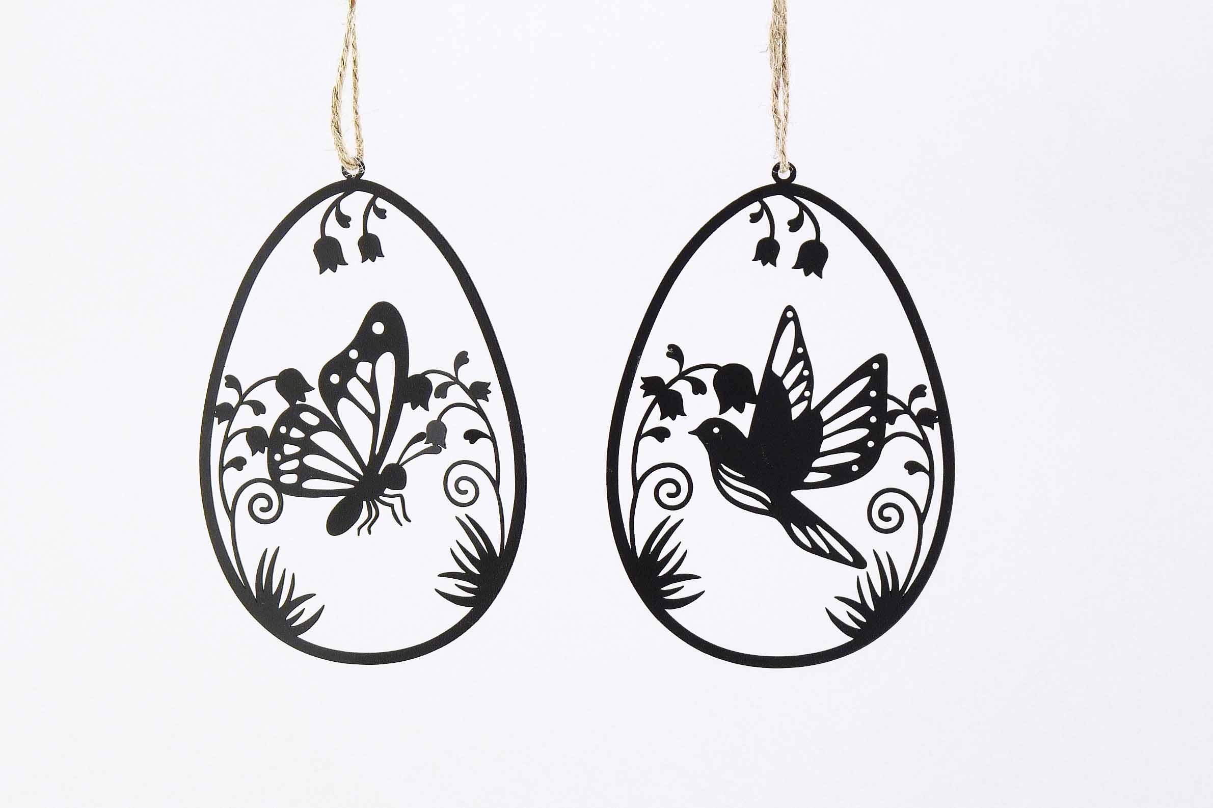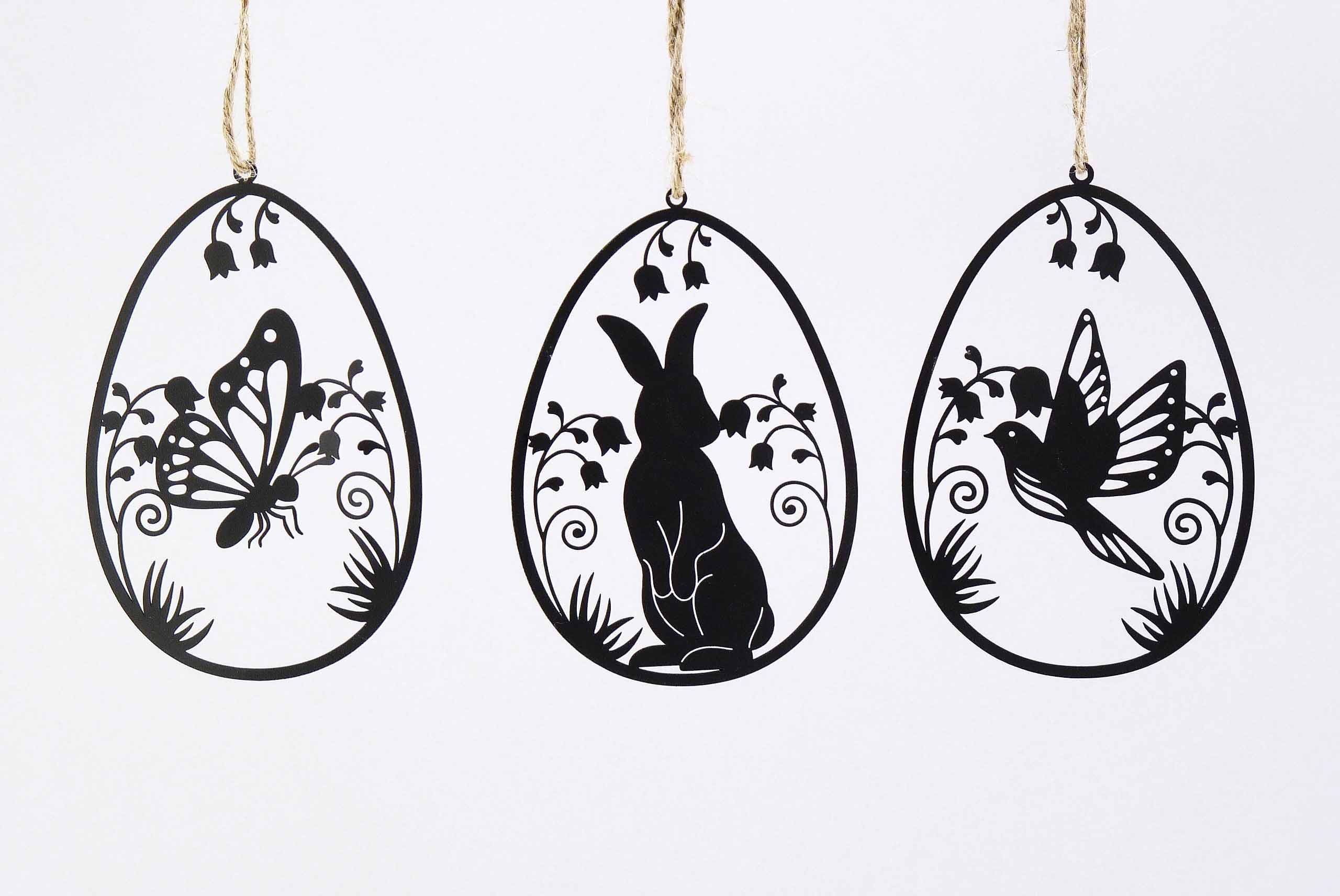 Metall-Osterei flach hgd. schwarz sort. 12x8,5cm