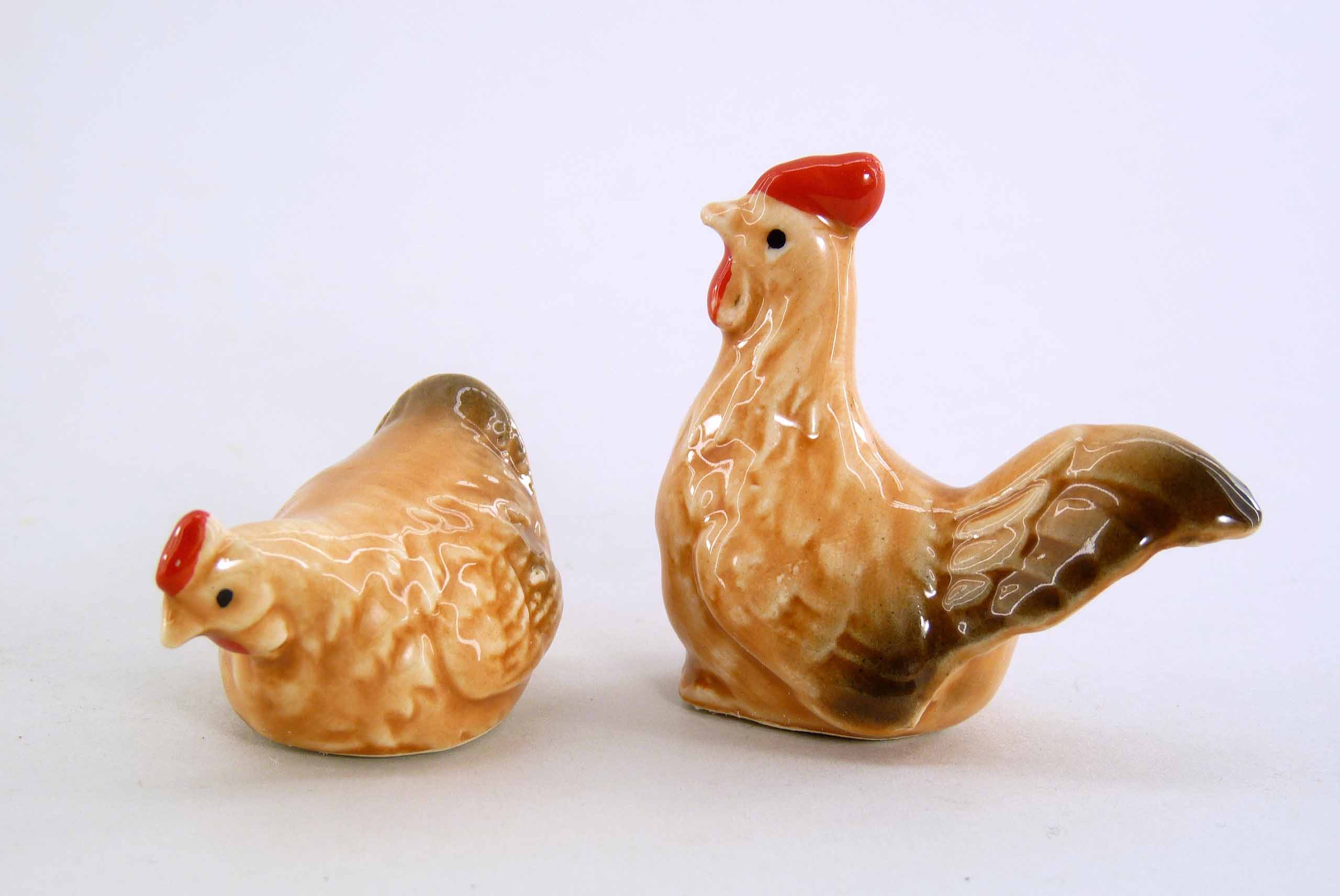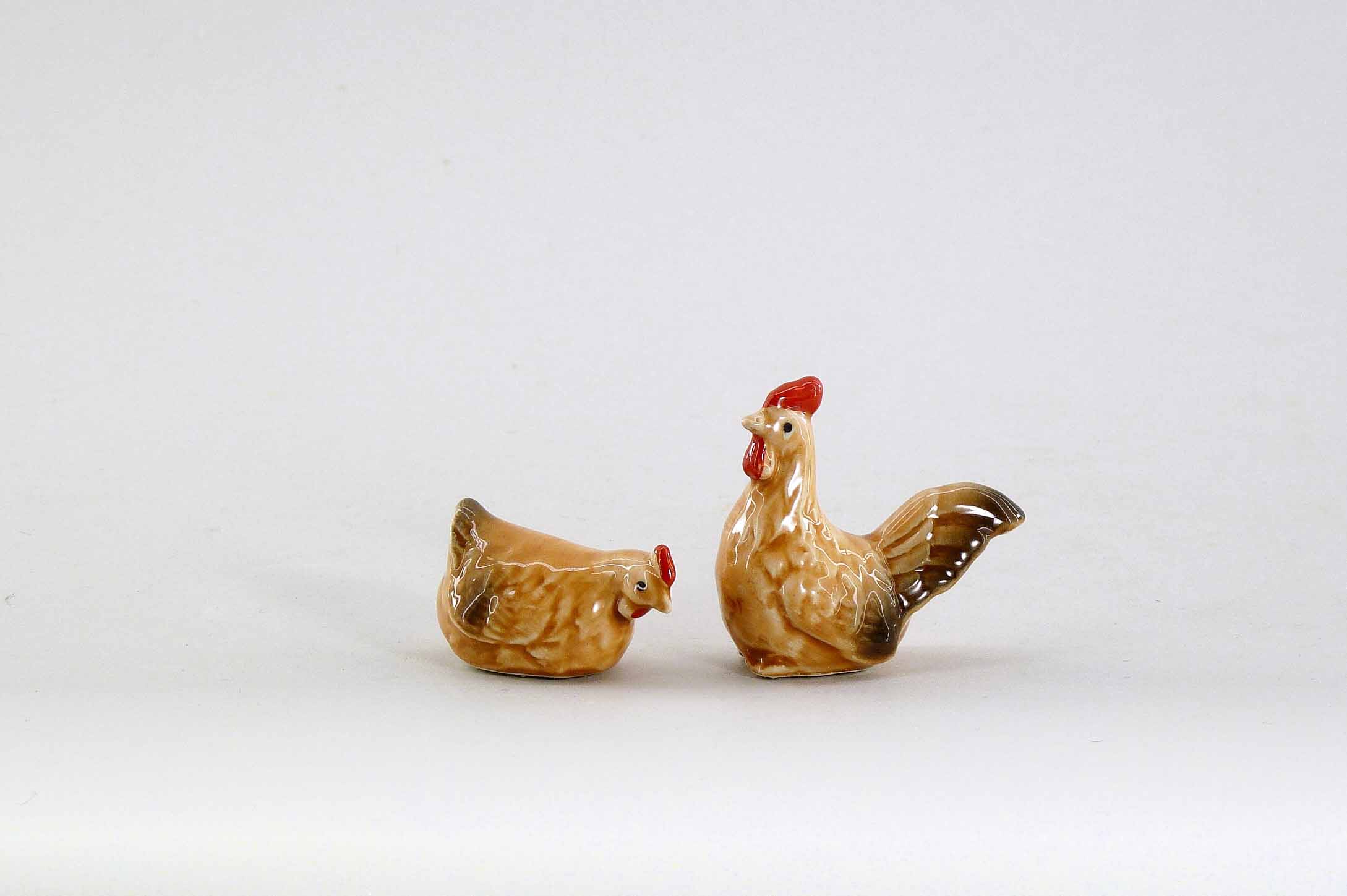 Keramik-Hahn/Henne braun sort. H2,5-5cm