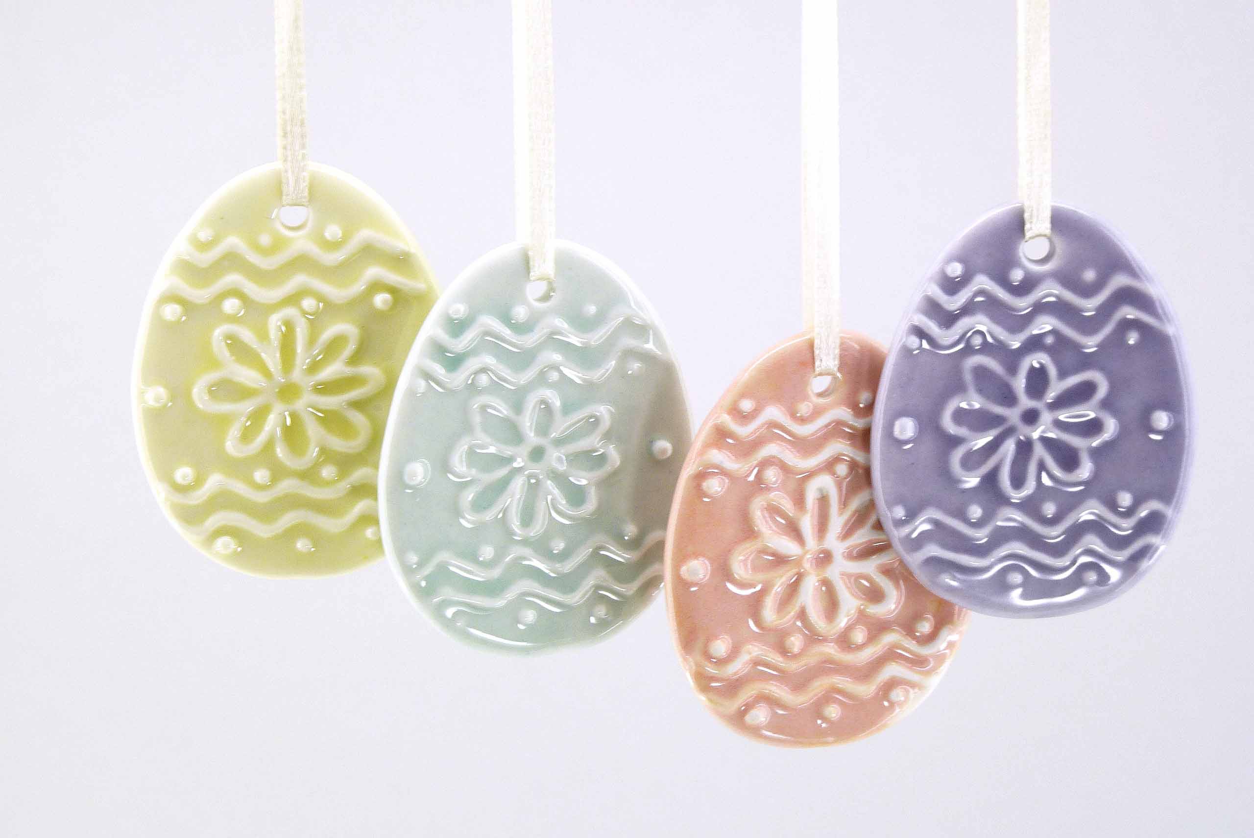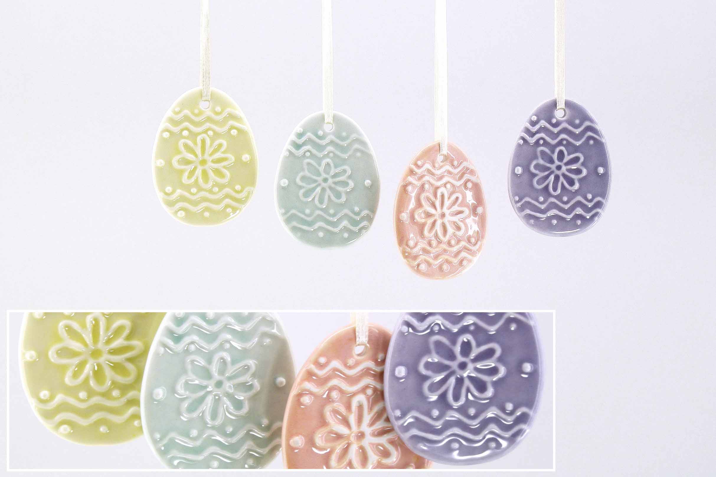 Porzellan-Ei ''Ornament'' hgd. flach pastell glasiert sort. H6cm