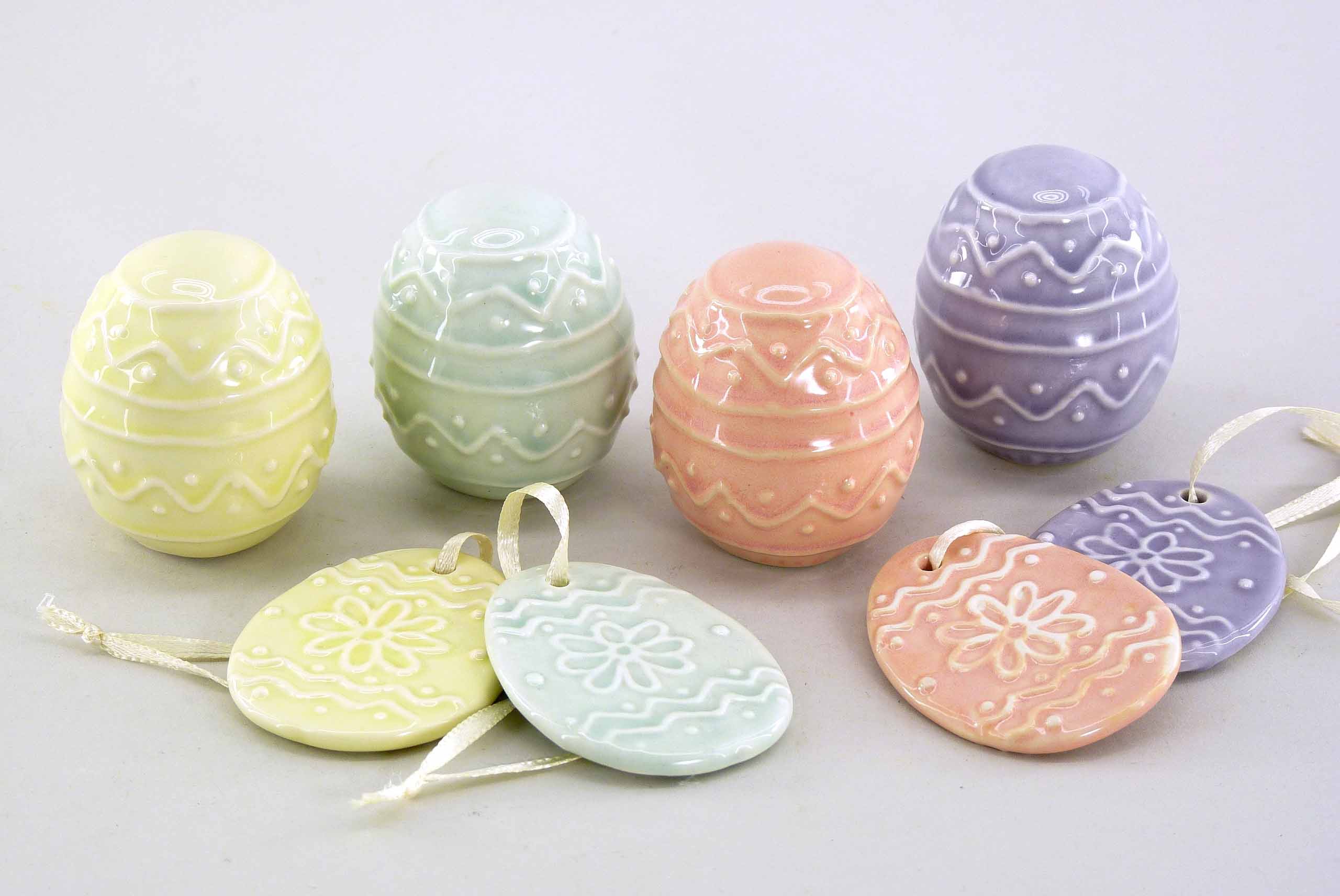 Porzellan-Ei ''Ornament'' sth. pastell glasiert sort. ø4,8 H5,5cm