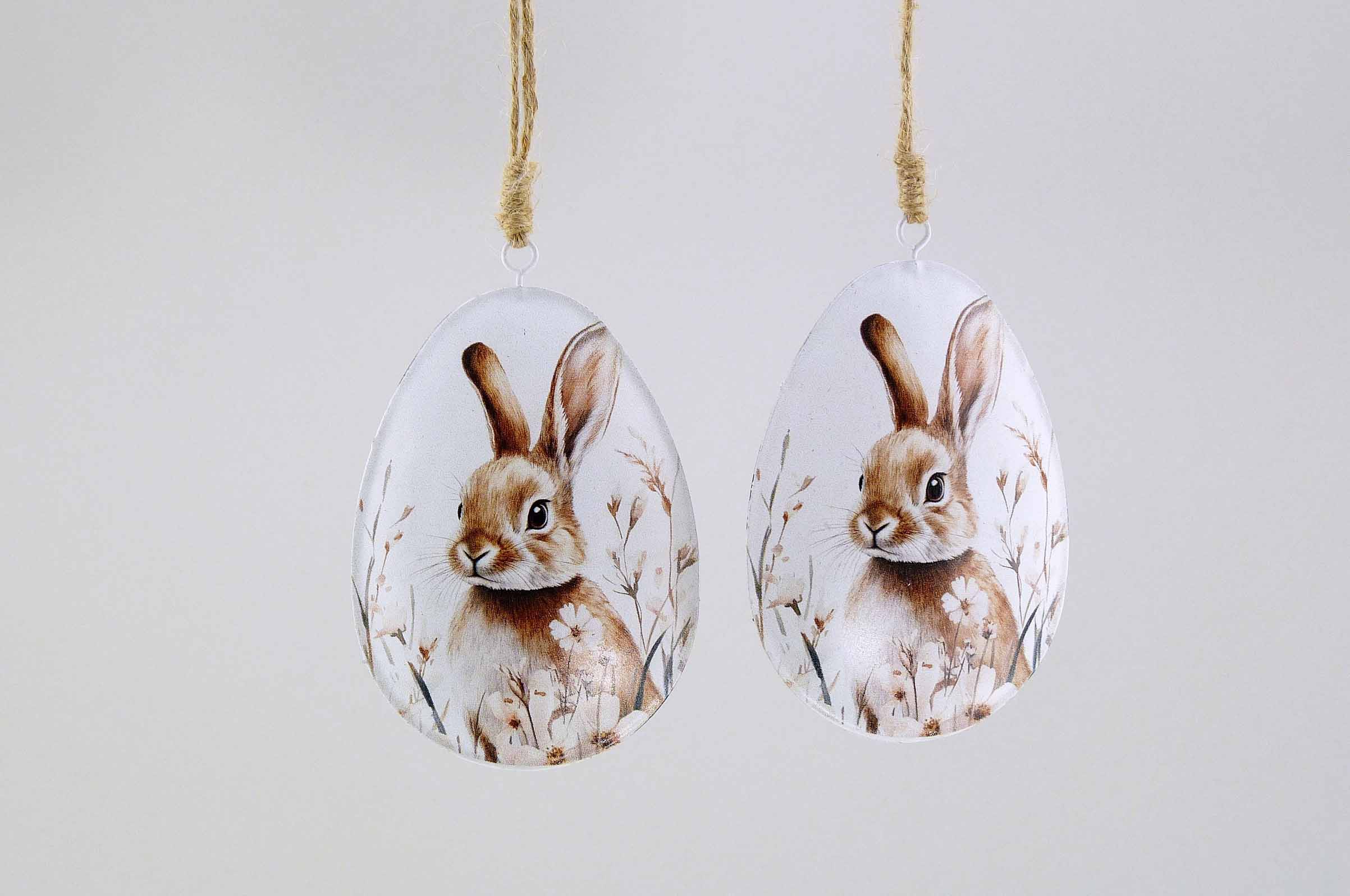 Metall-Ei ''Hasenbild'' hgd. weiß-braun coloriert H11 B8cm