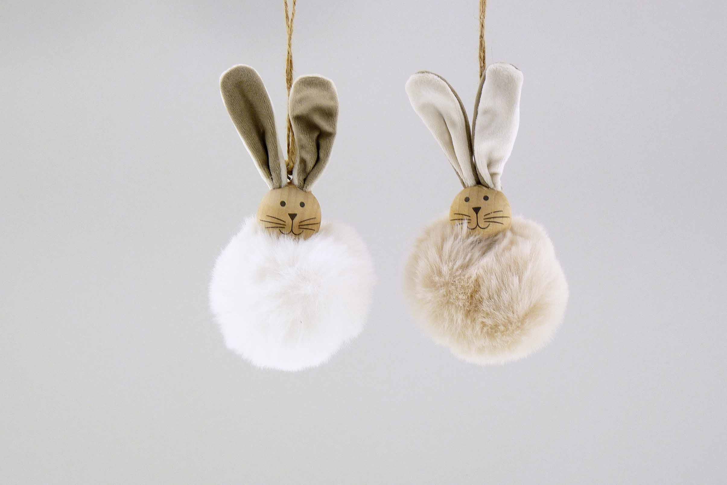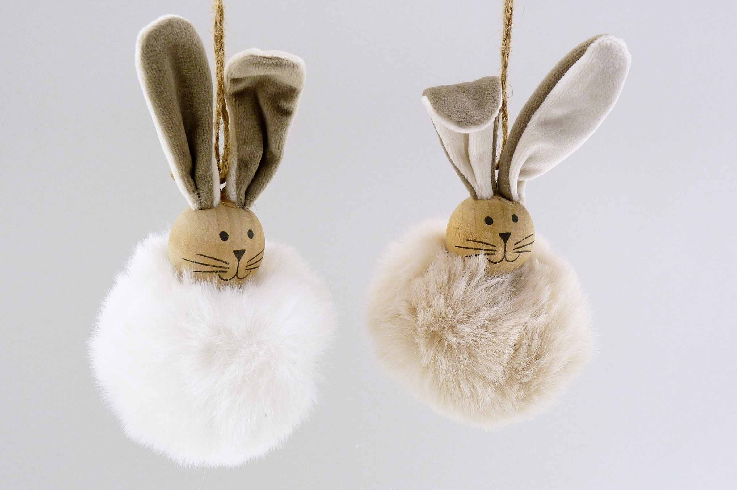 Stoff/Holz-Hase ''Bommel'' hgd. natur-braun/weiß sort. ø7 H13,5cm