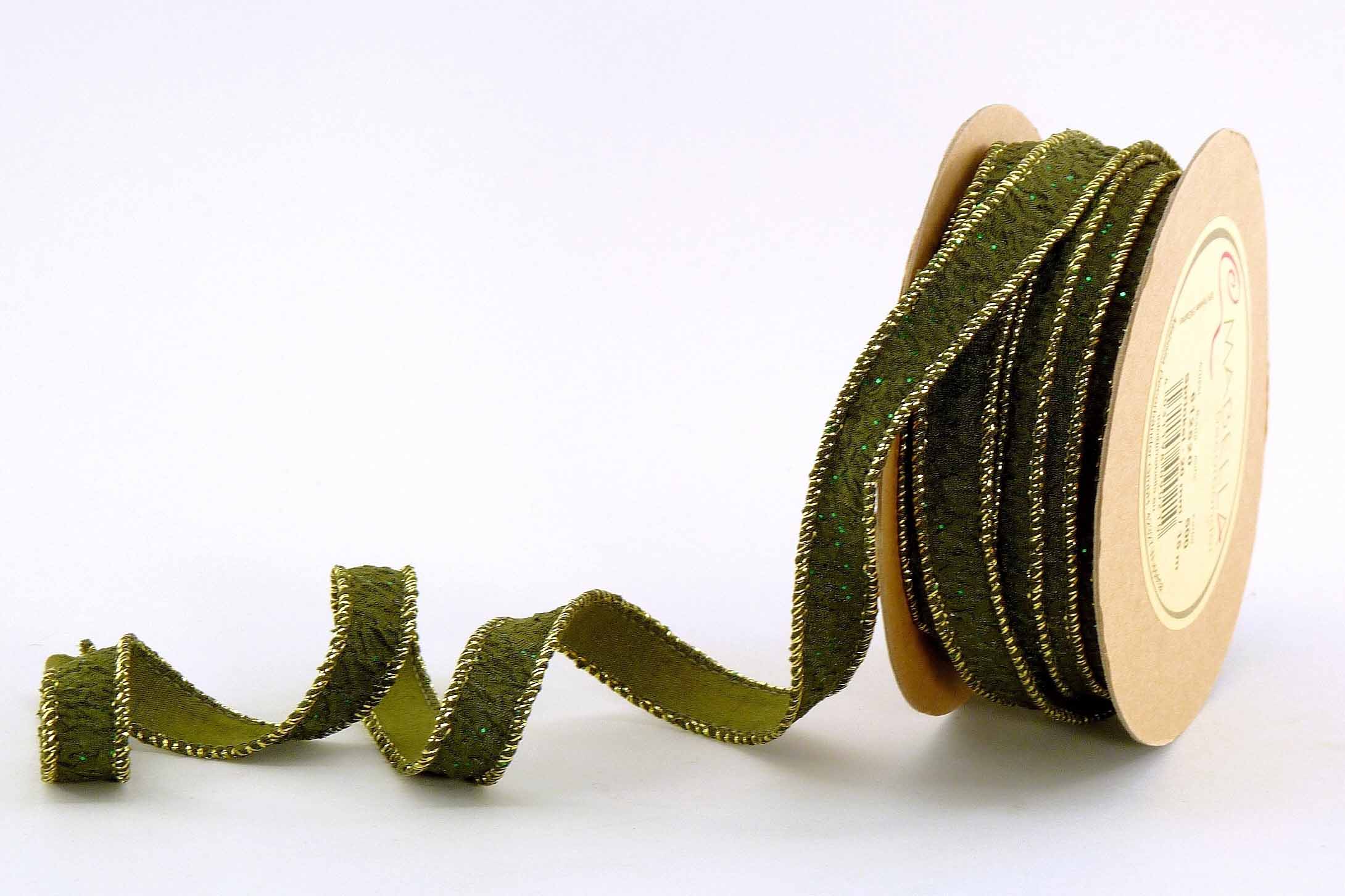 6125-20-500 Stretchband ''Weihnachten'' dunkelgrŸün-gold 15m