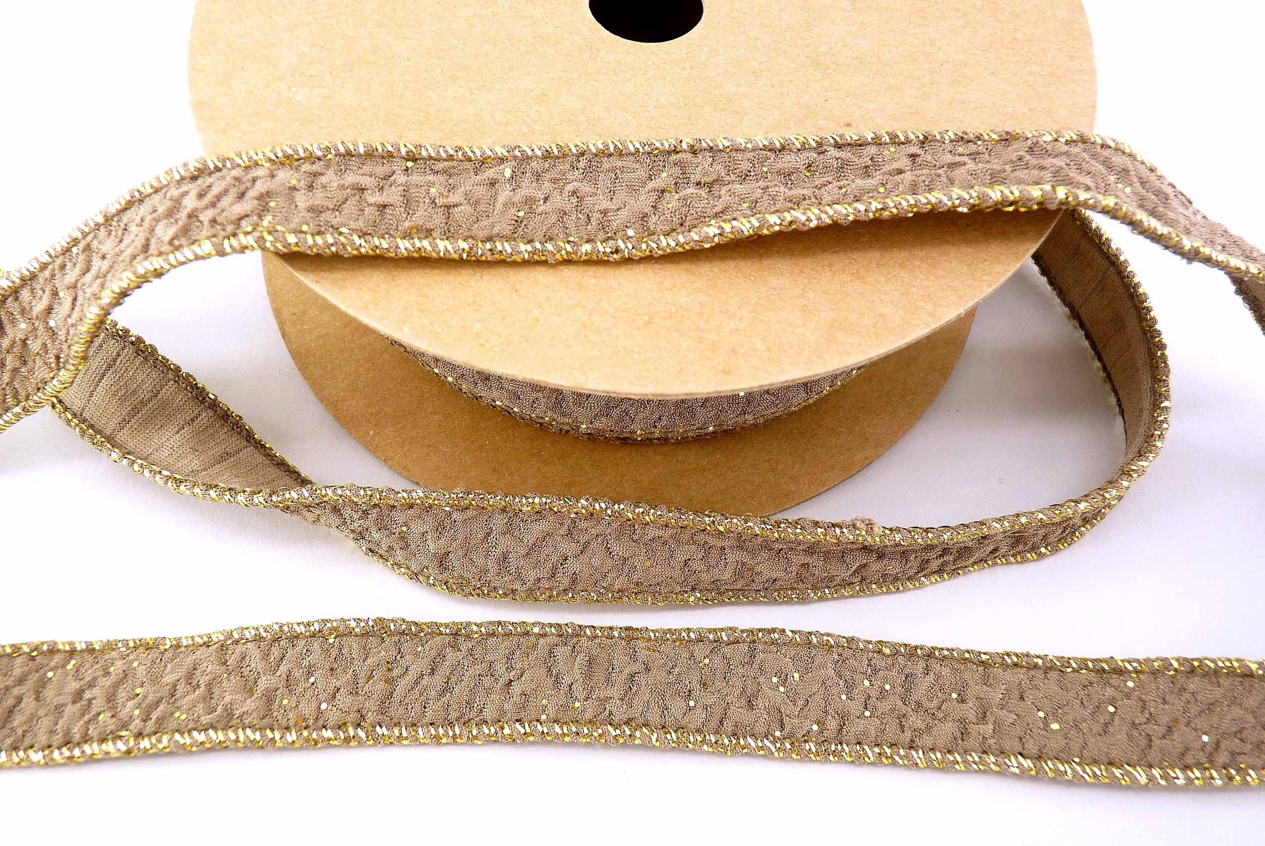 6125-20-425 Stretchband ''Weihnachten'' braun-gold 15m