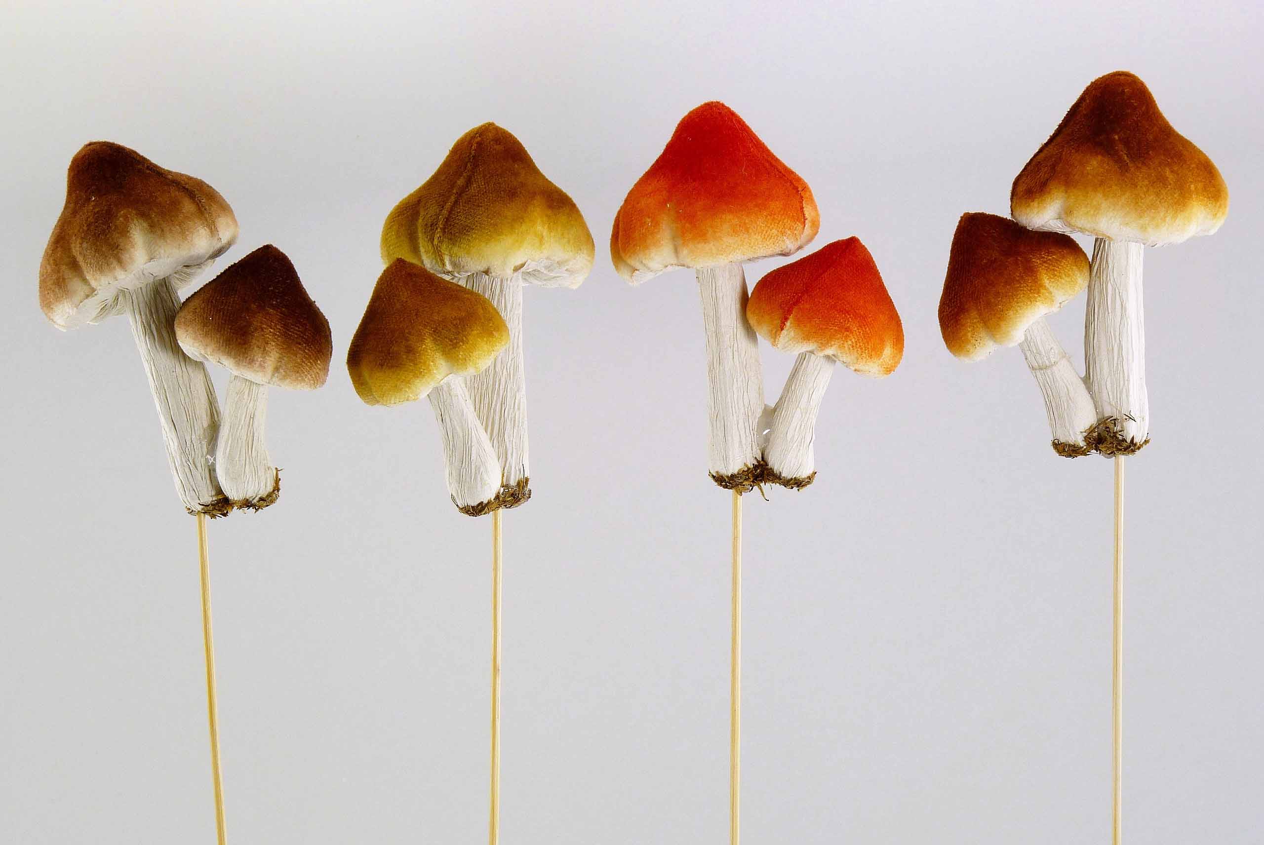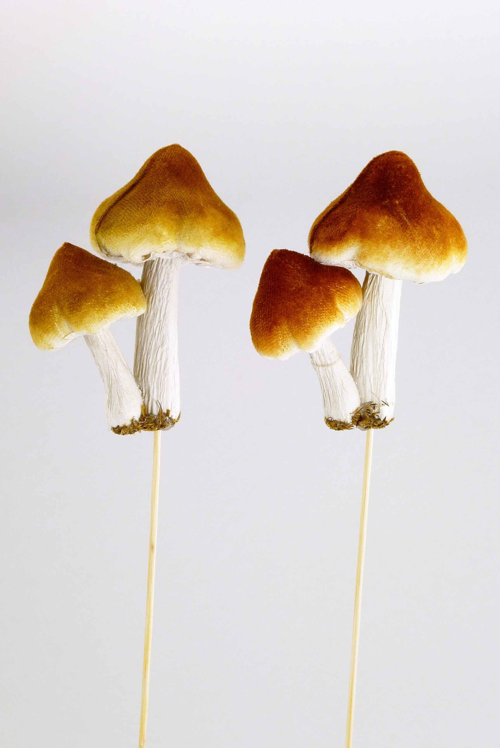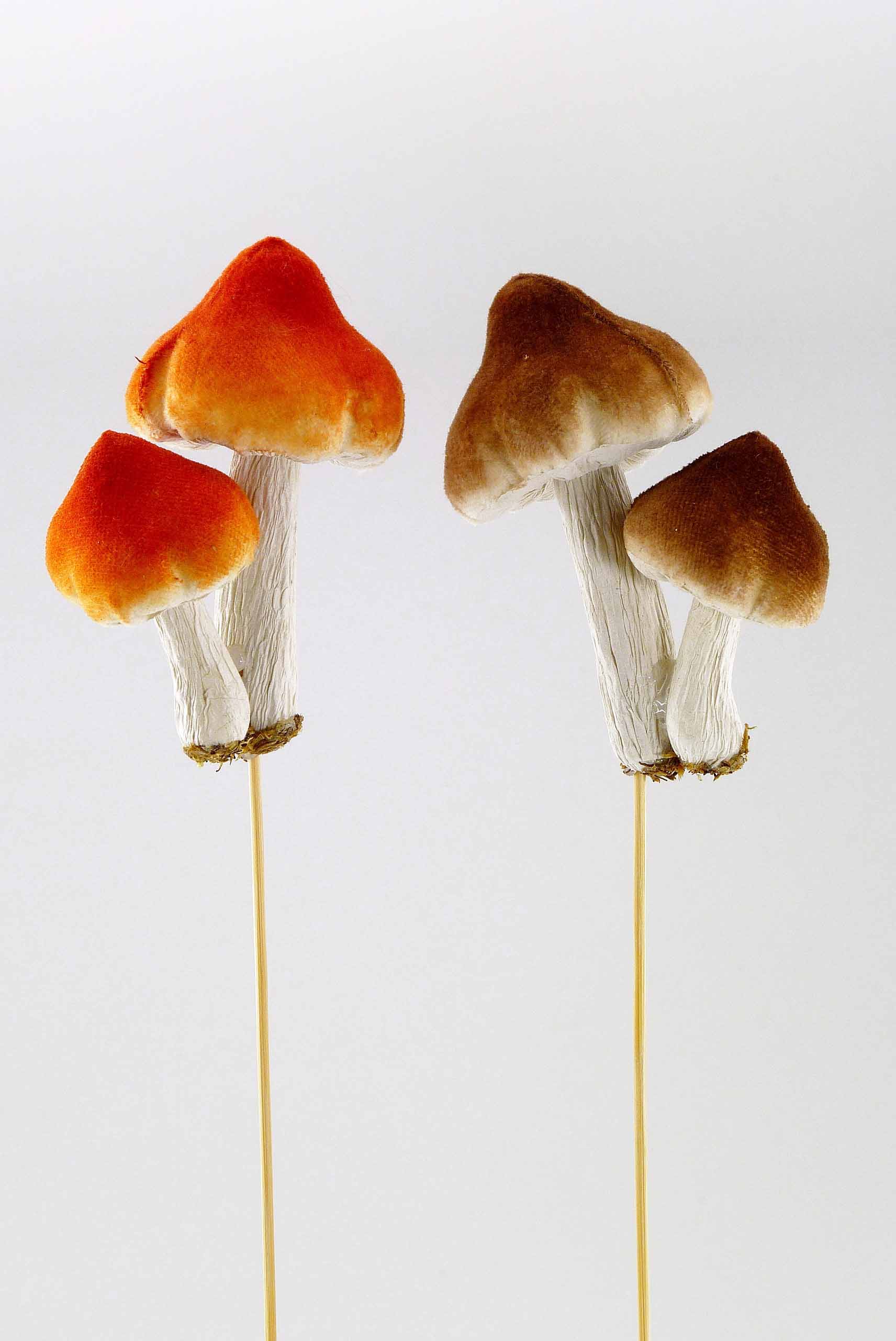 Deko-Pilzgruppe +Stick rot-braun-mix sort. H9 L27cm