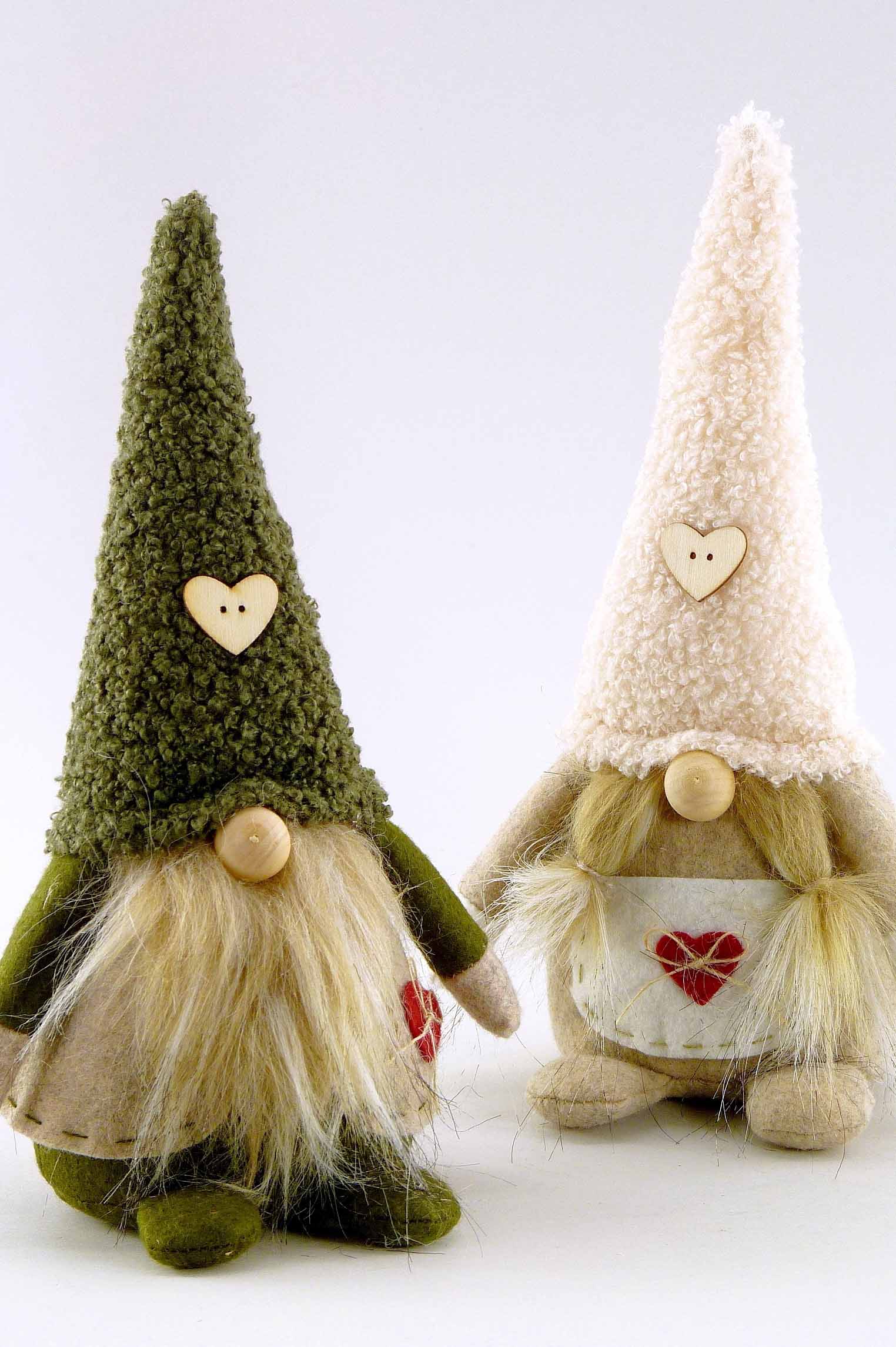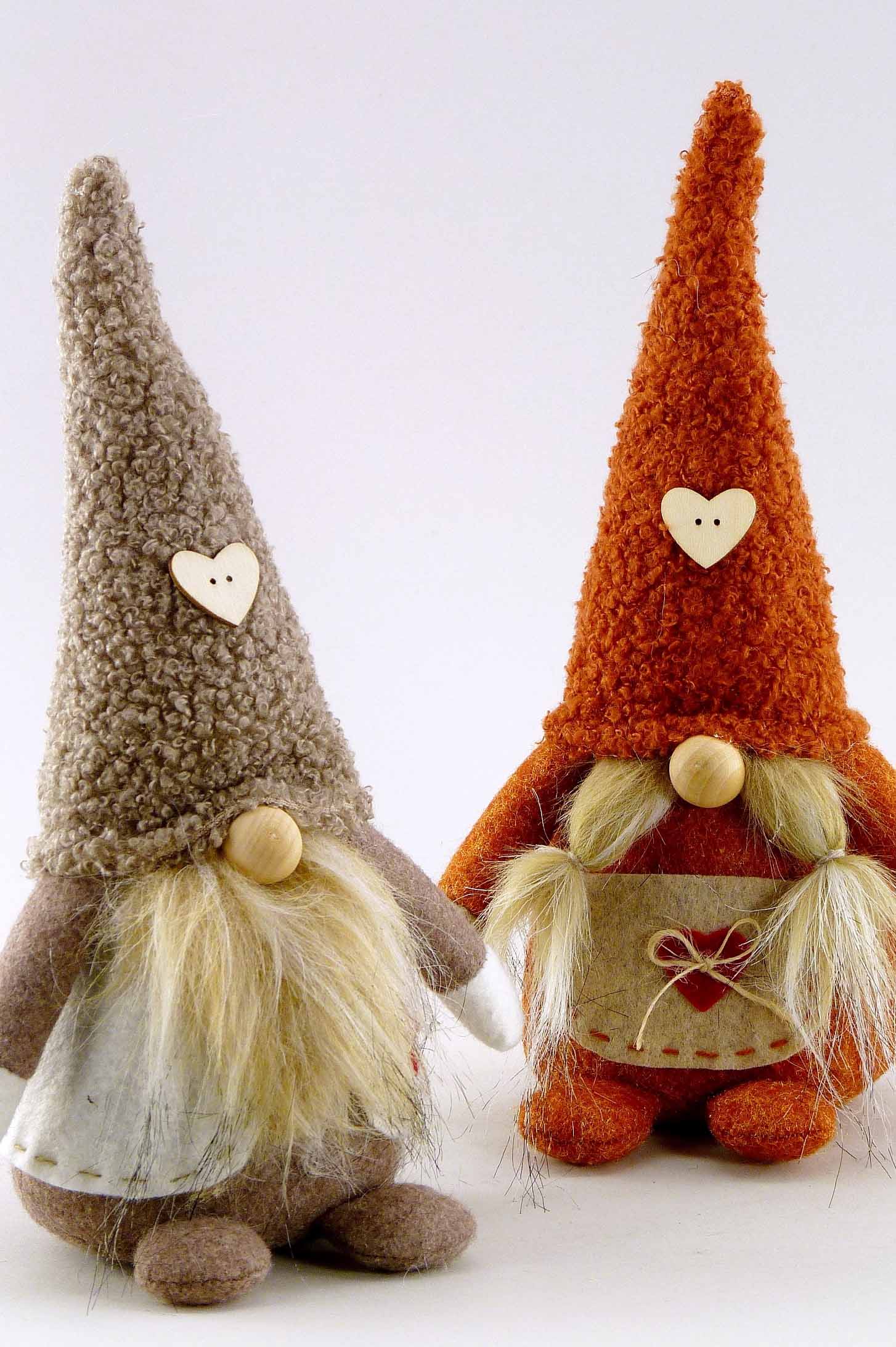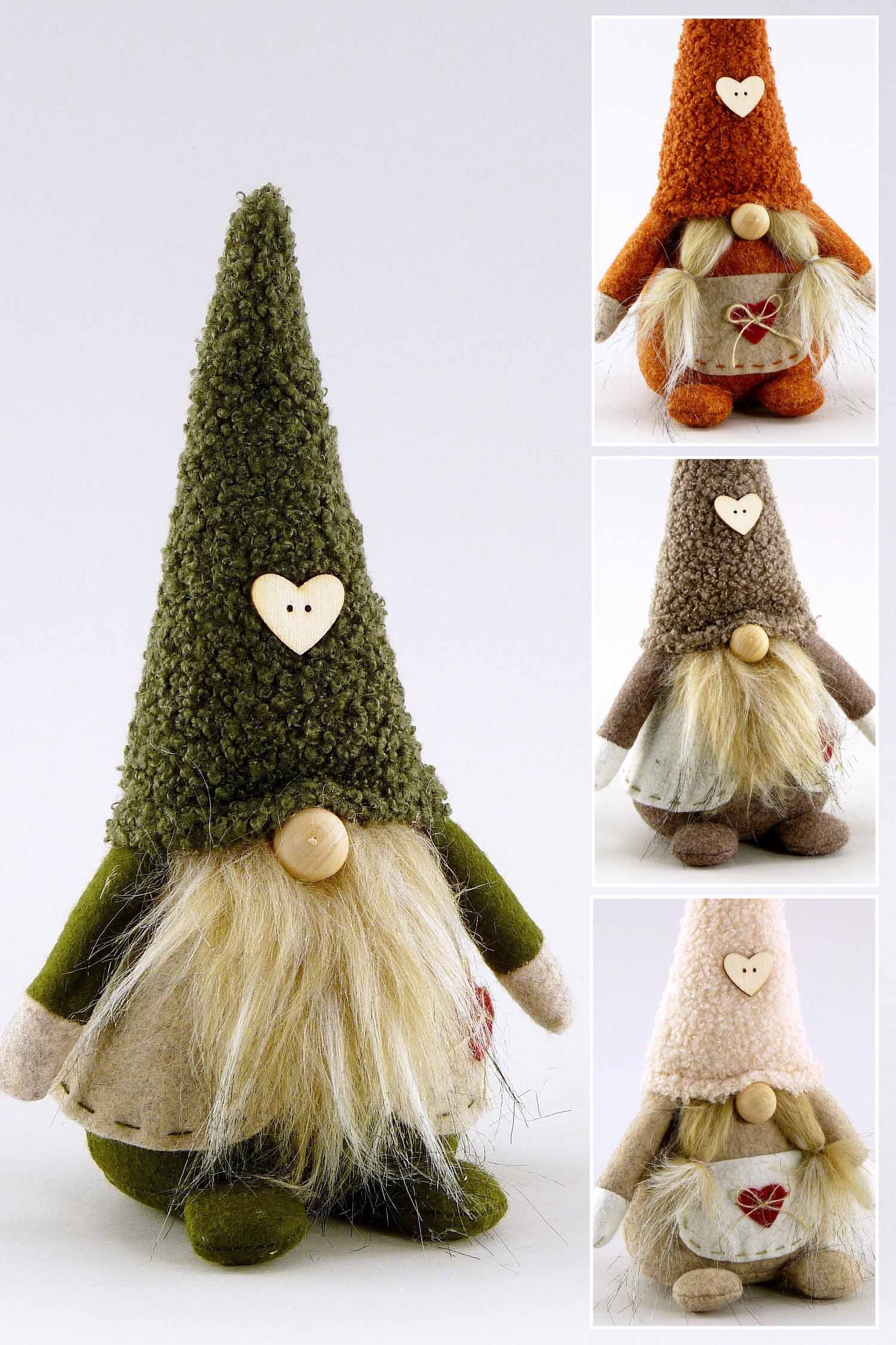 Stoff-Wichtel mit Herz hgd. grau/rot/braun/creme sort. H13cm