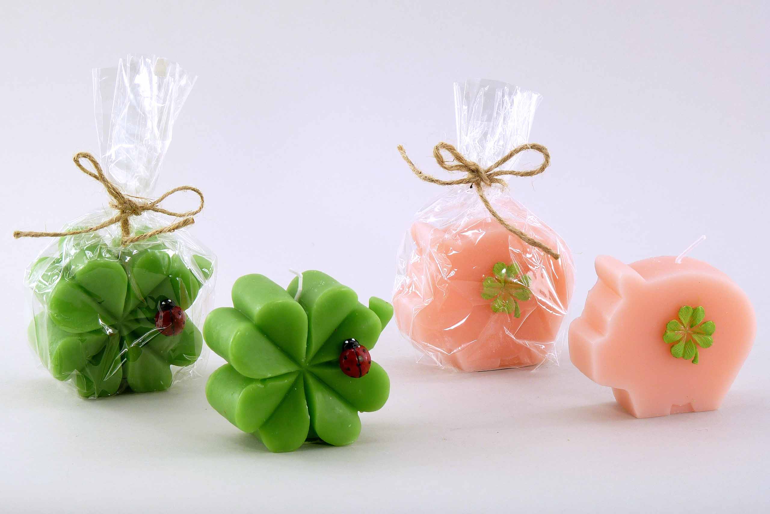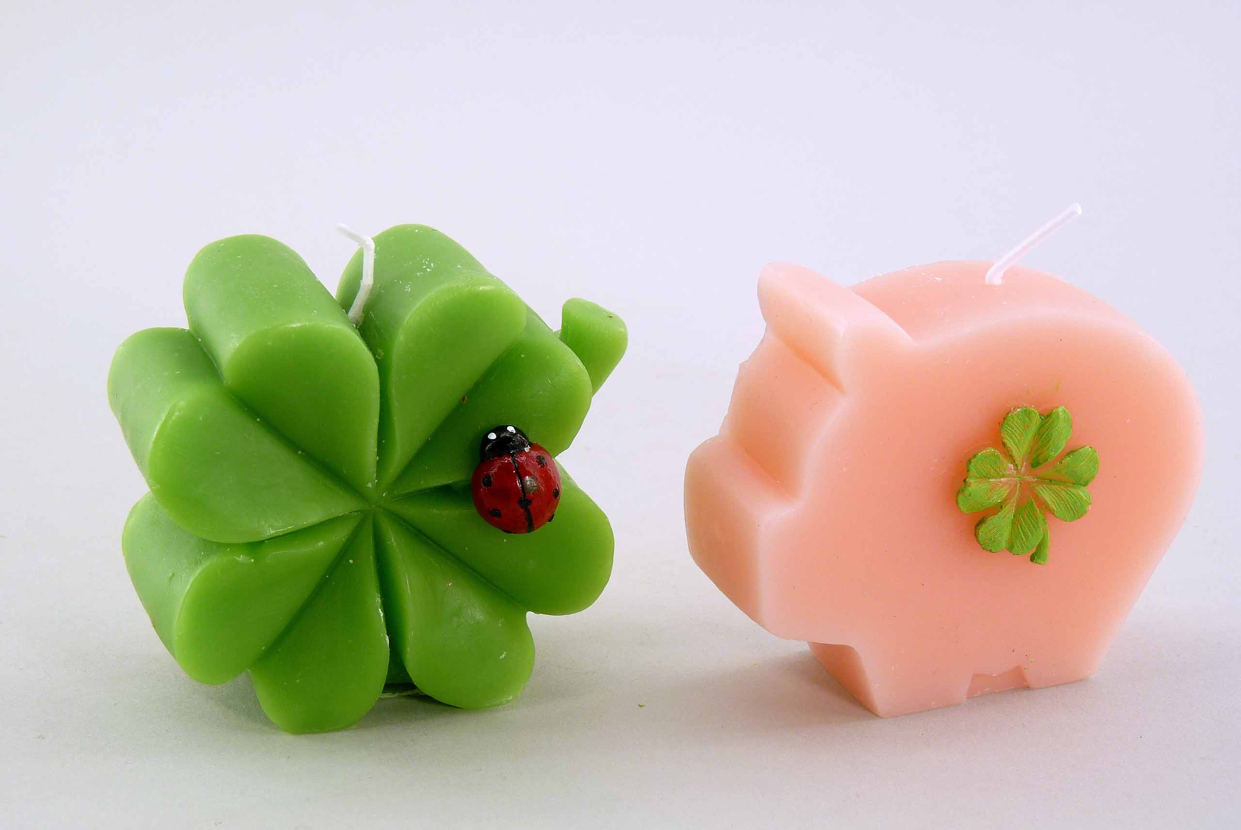 Silvester-Kerze ''Schwein/Kleeblatt'' rosa/grün sort. H7 B8cm