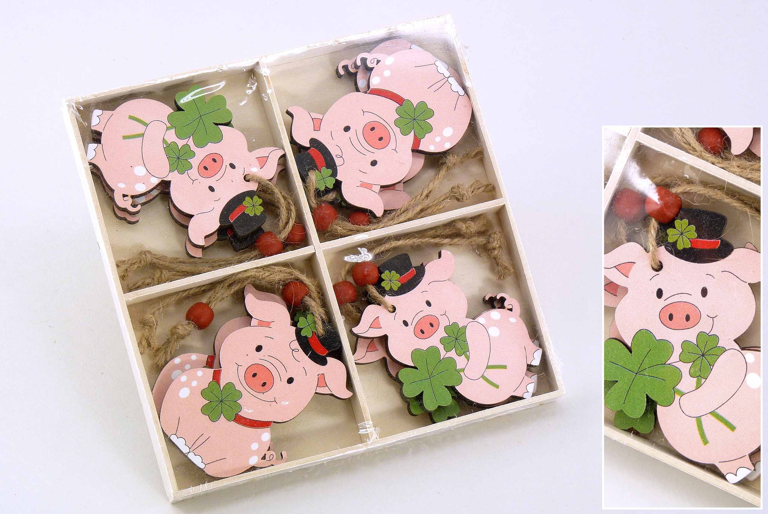 Holz-Glücksschwein Box/8 hgd. rosa H7,5cm