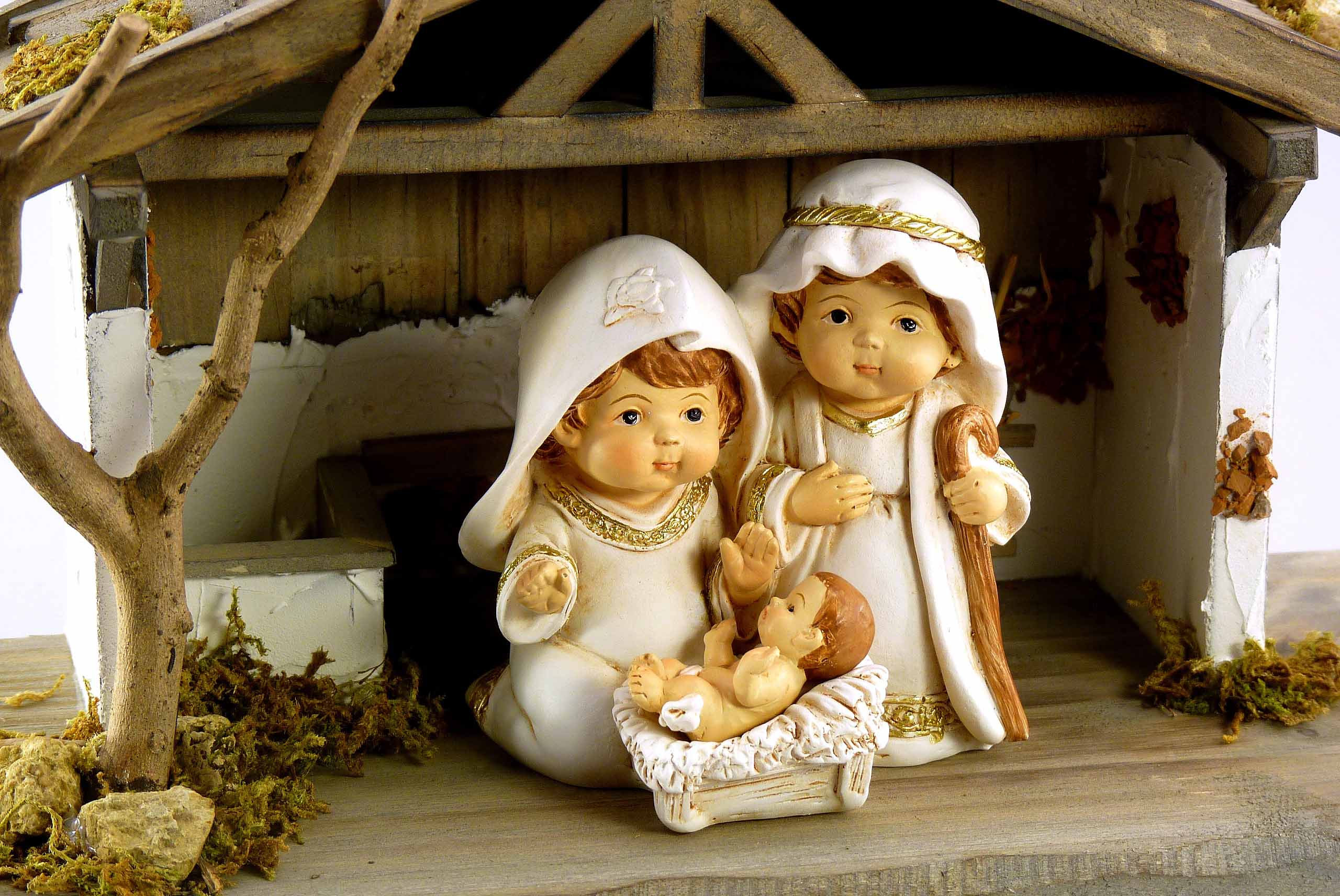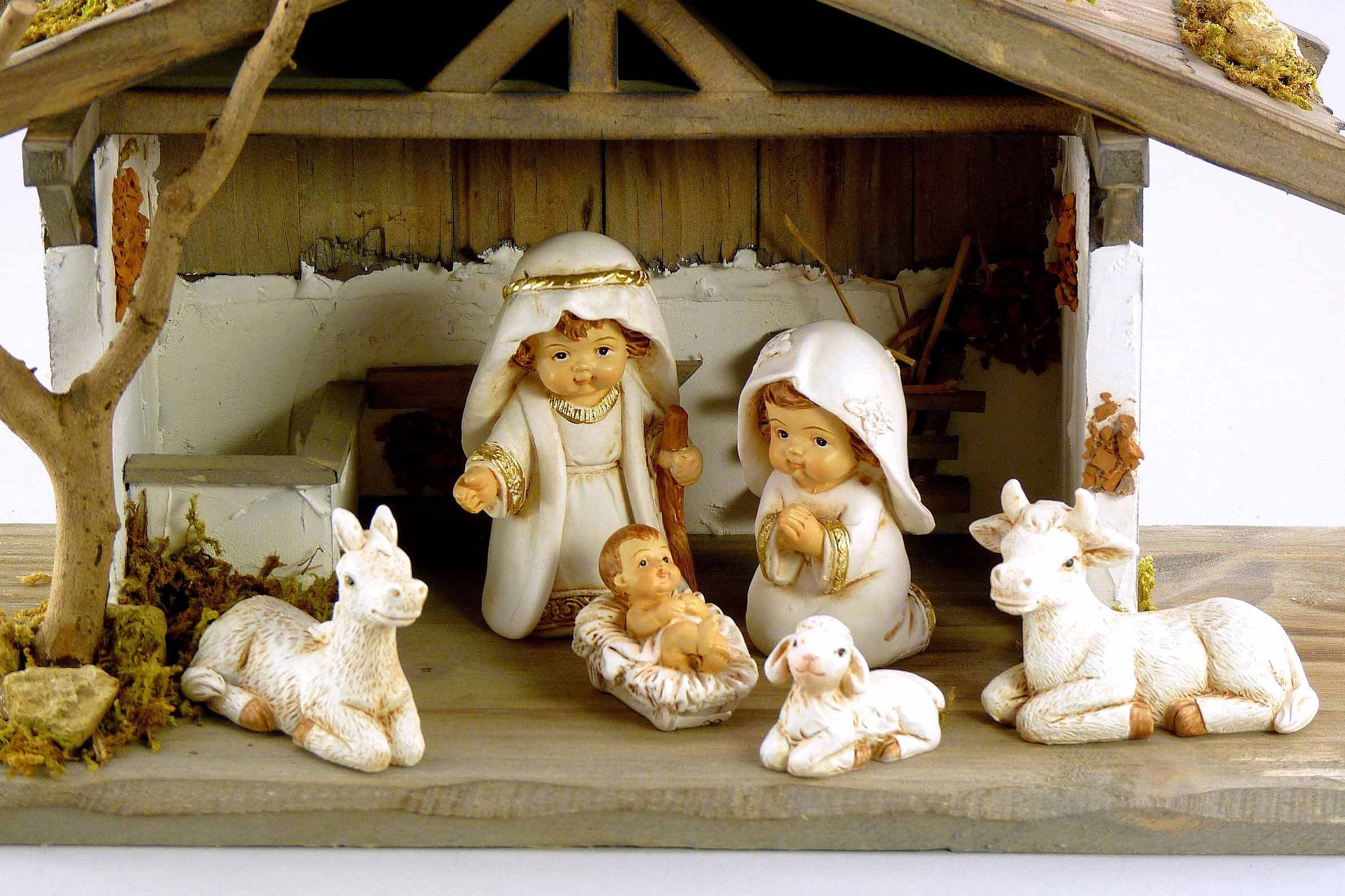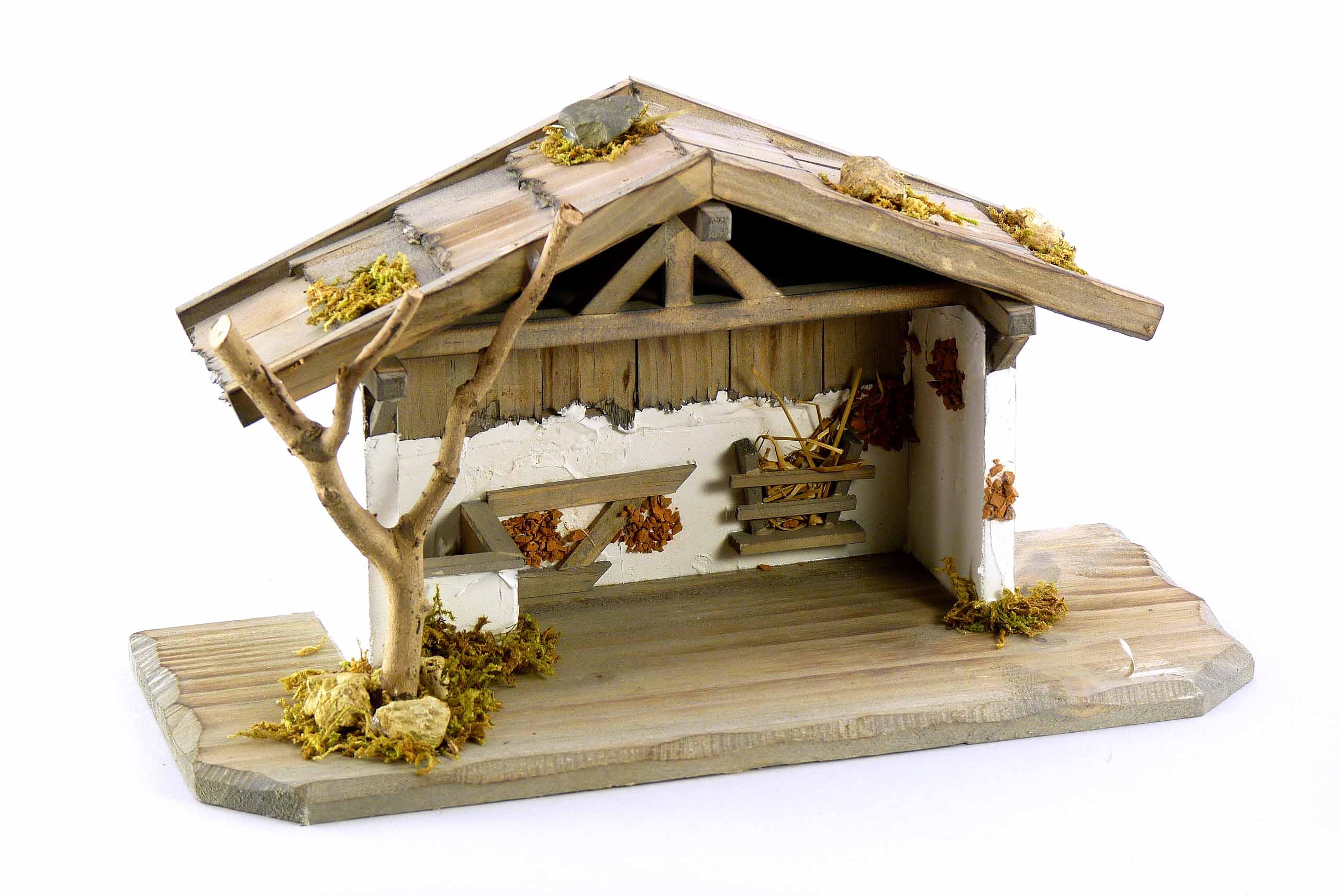 Holz-Krippenhaus natur-braun-weiß 29x12 H16cm