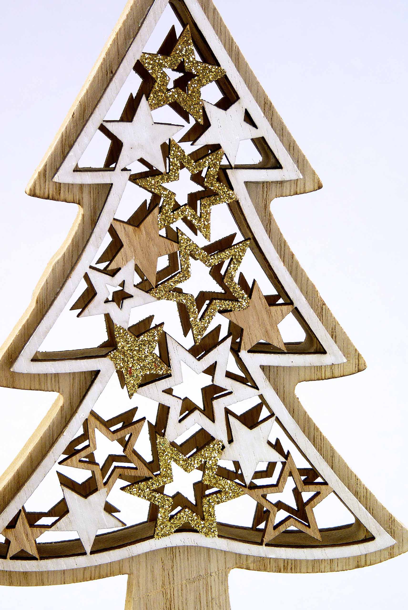 Holz-Stern/Engel/Baum ''Sternenmeer'' natur-weiß-gold sort. H17-20cm