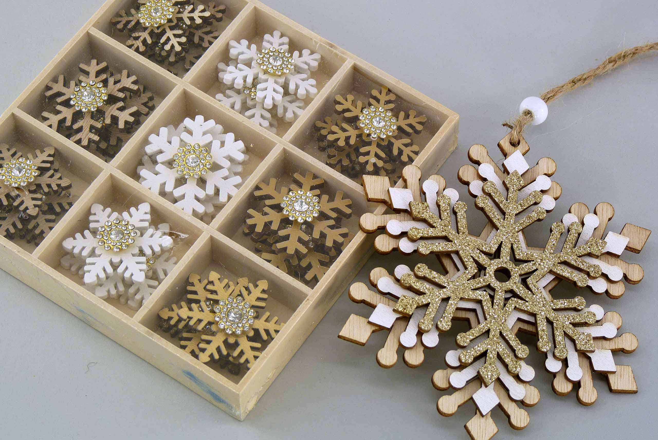 Holz-Stern ''Kristall'' Box/27 selbstklebend natur-weiß ø3,5cm