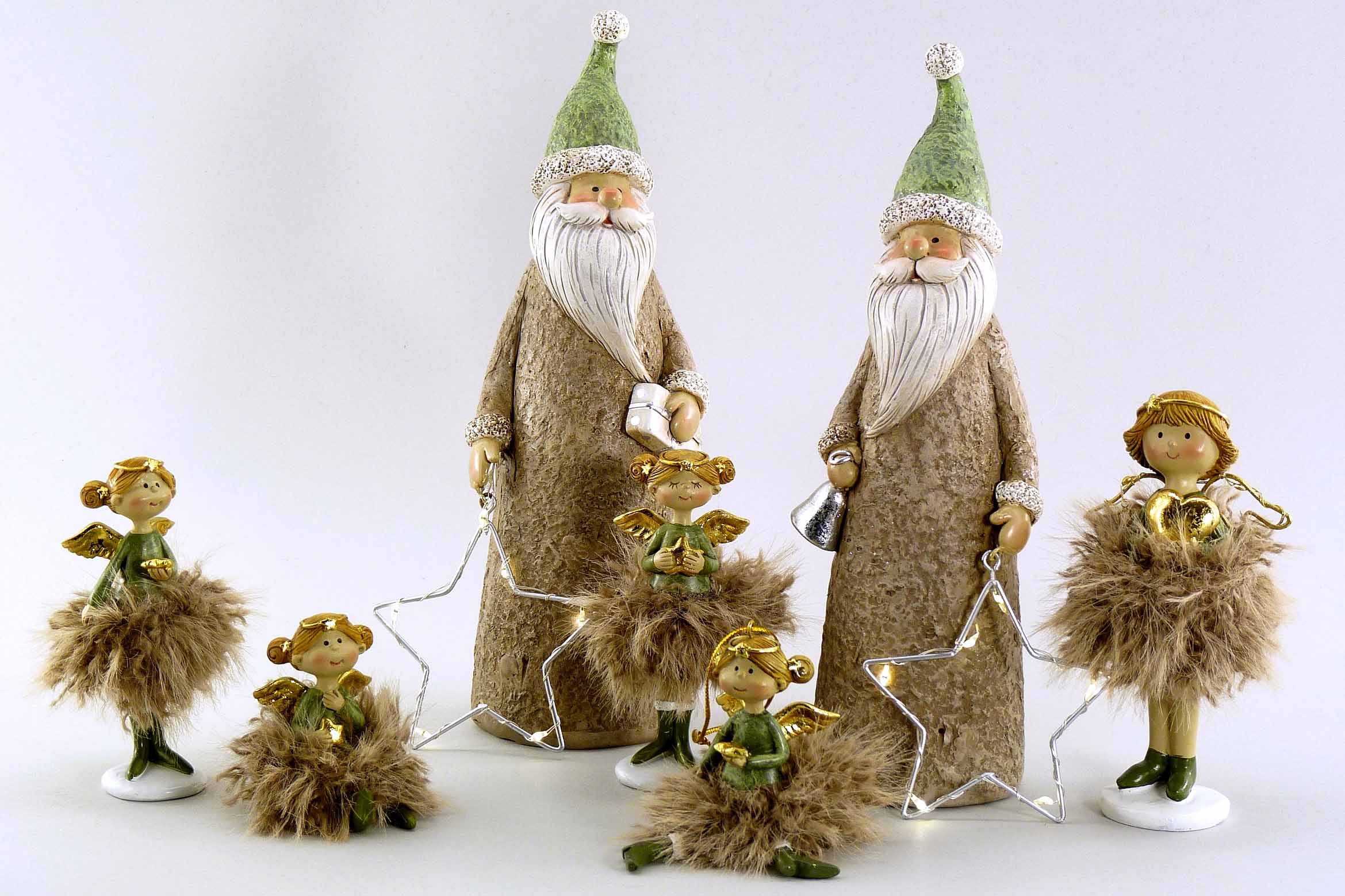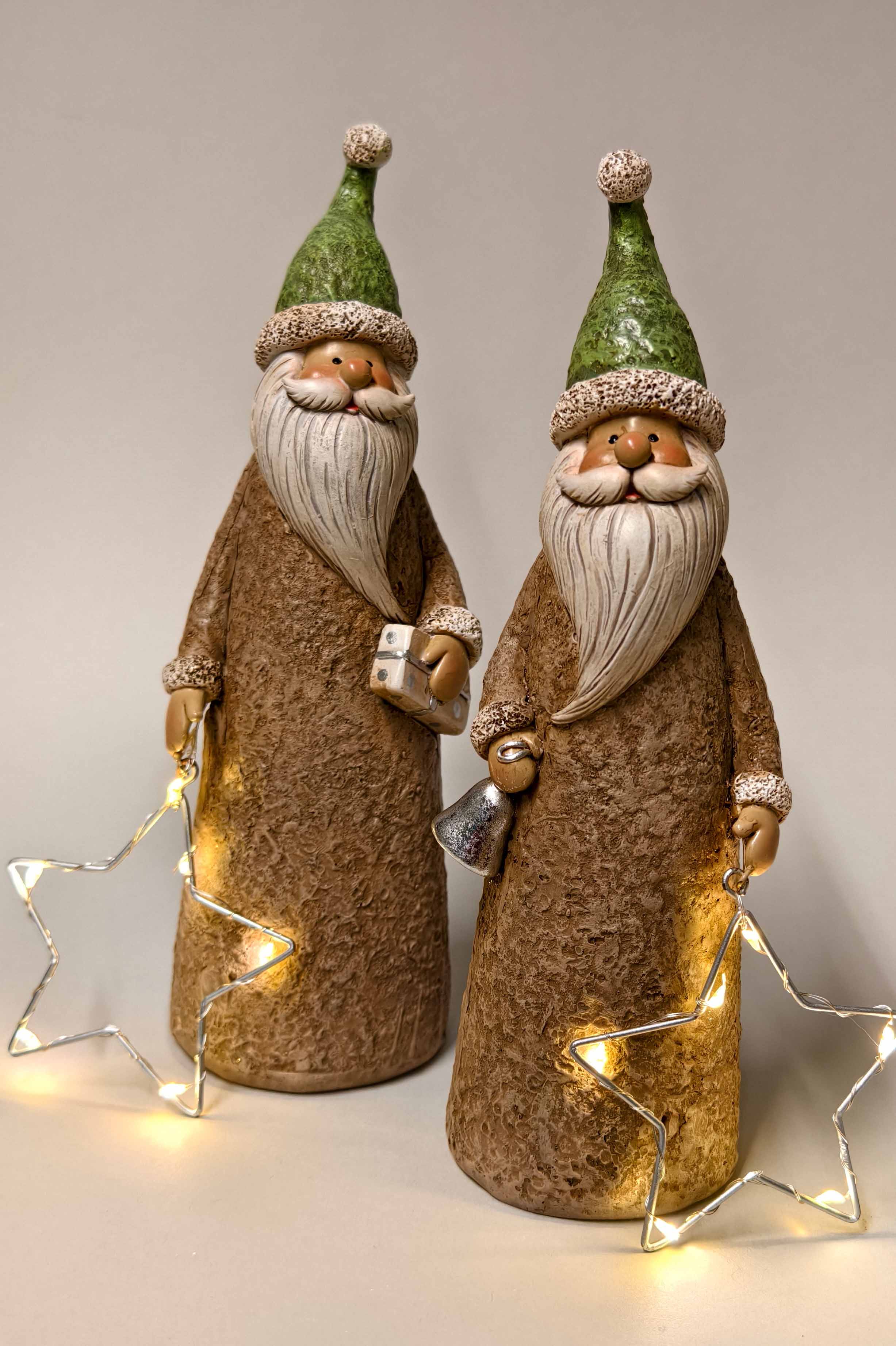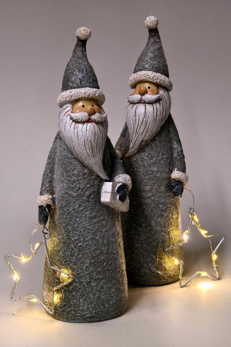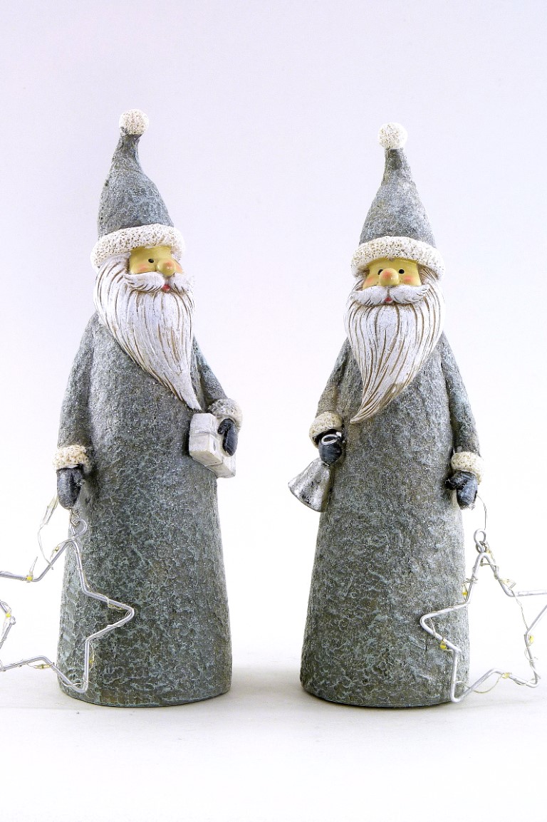 Poly/Weihnachtsmann +LED-Stern grau-silber sort. H22,5