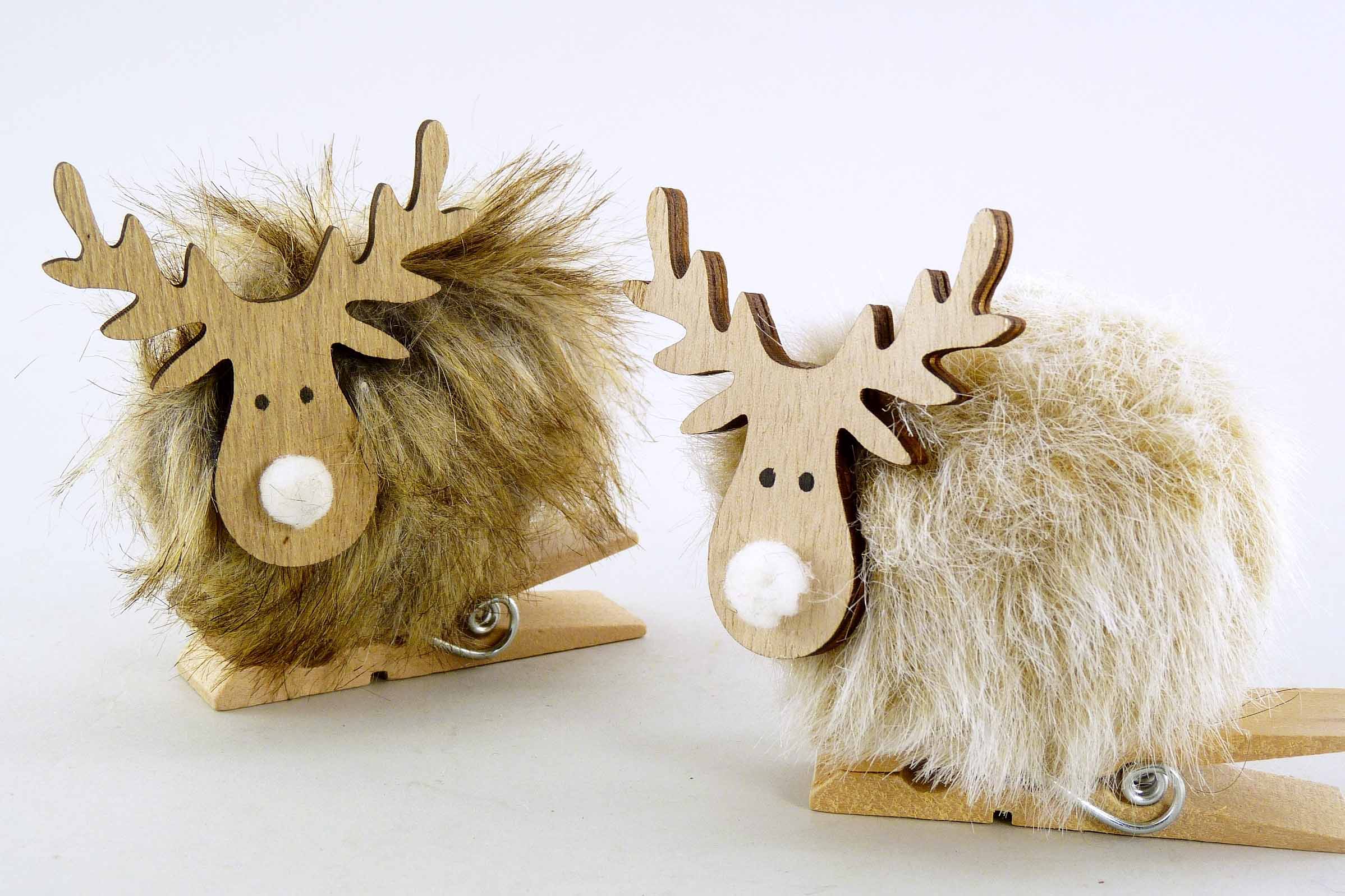 Fell-Hirsch +Kluppe weiß/braun sort. H9 B10cm