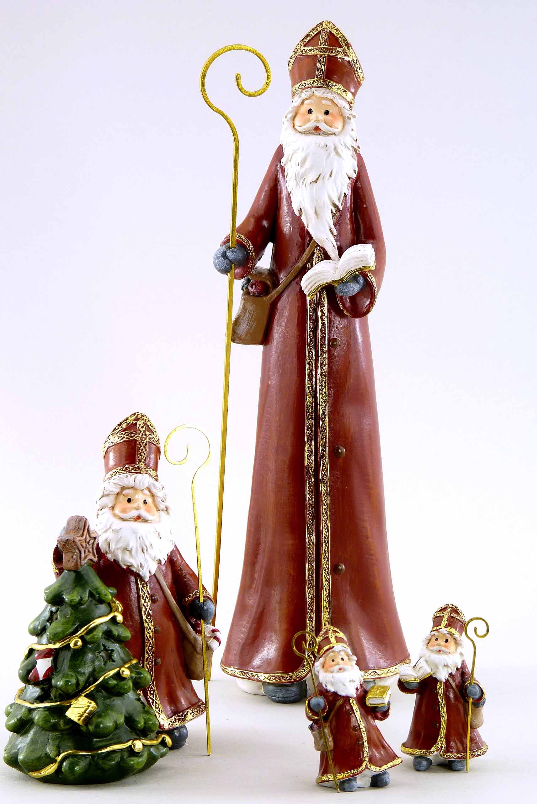 Poly-Nikolaus mit Stab schlank rot-weiß-gold H28,5cm