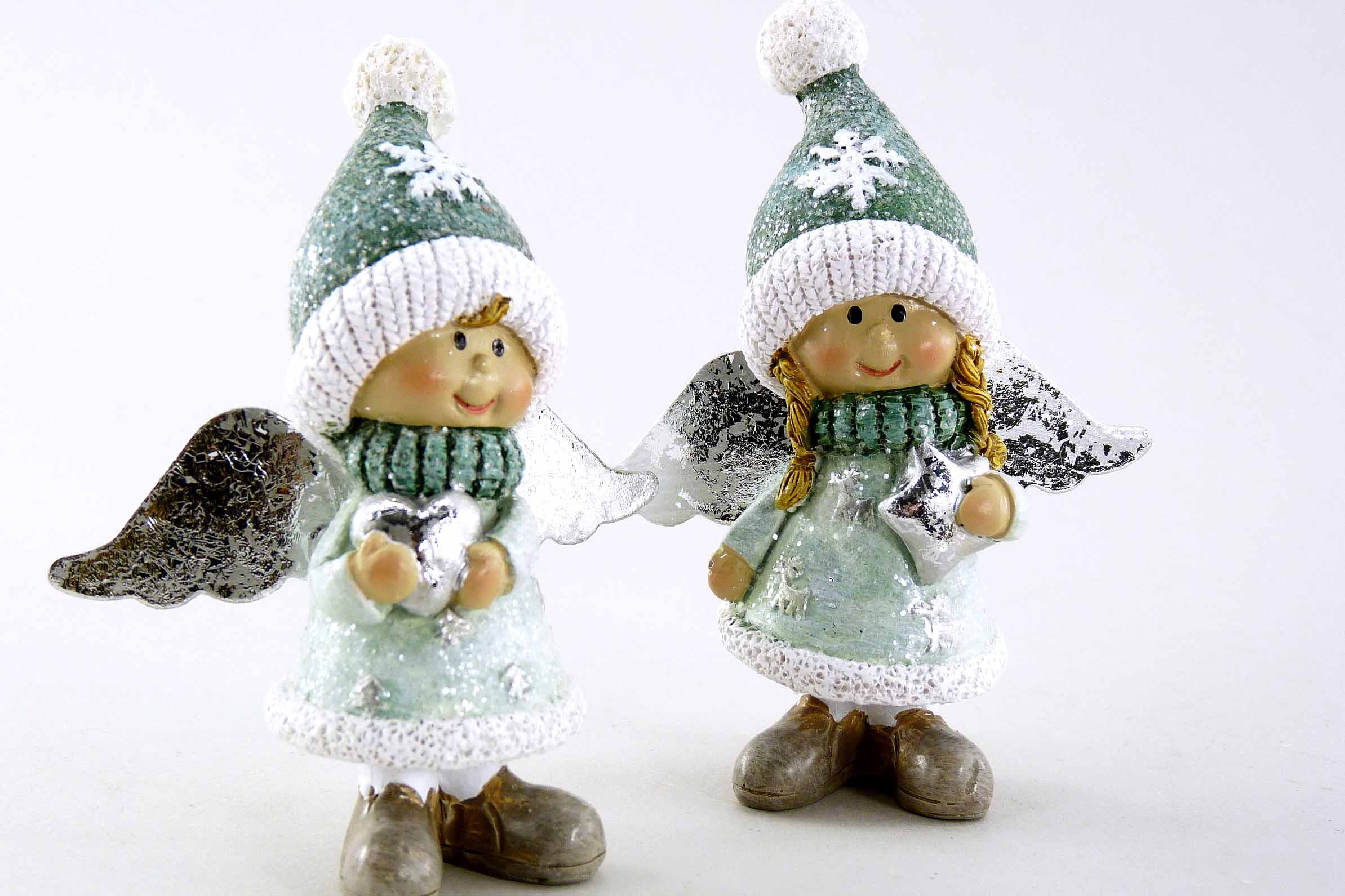 Poly-Engel +Metall-Flügel mint-grün-silber sort. H9,5cm