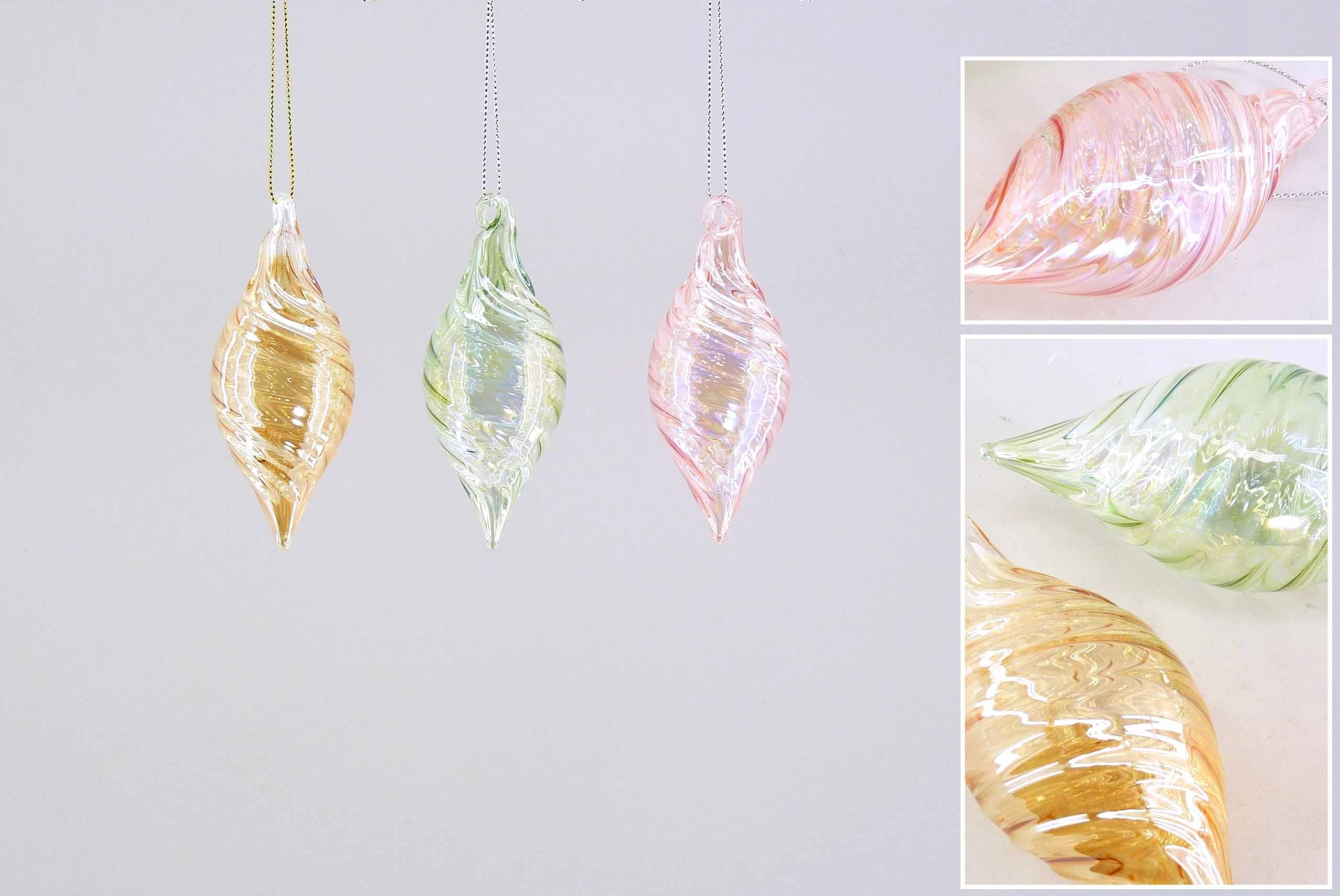 Glas-Tropfen ''Spiral-Design'' hgd. pastell sort. ø4 H9,5cm