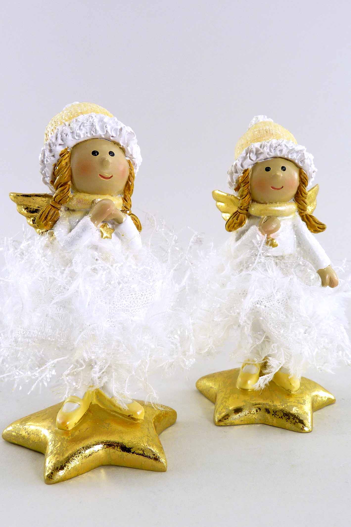 Poly/Stoff-Engel weiß-gold sort. H10cm