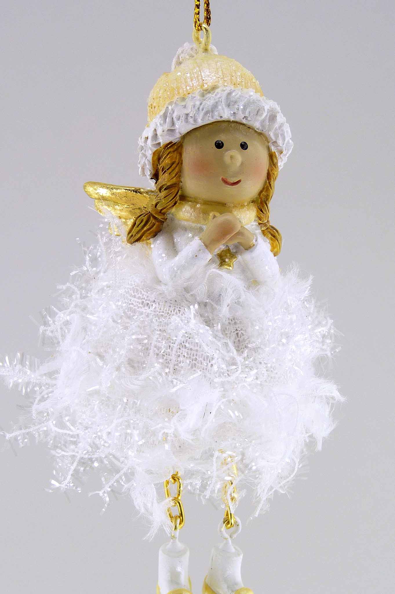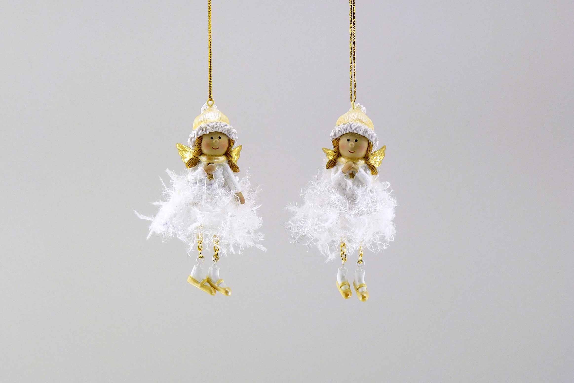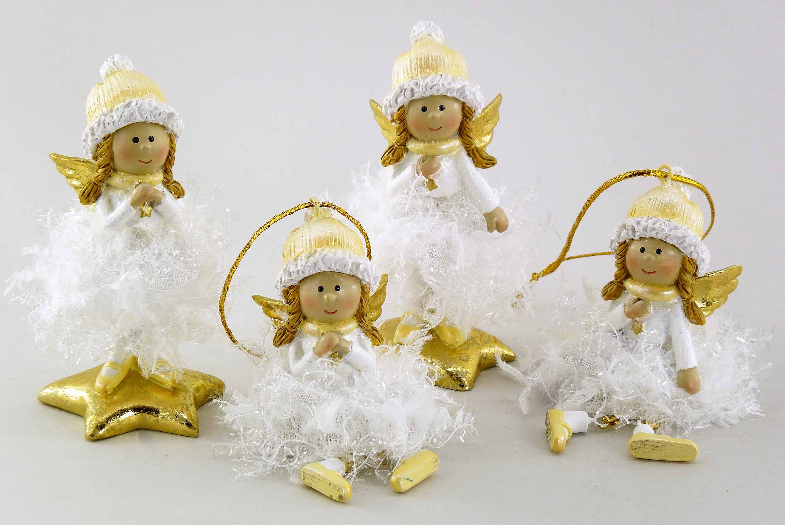 Poly/Stoff-Engel hgd. weiß-gold sort. H11cm
