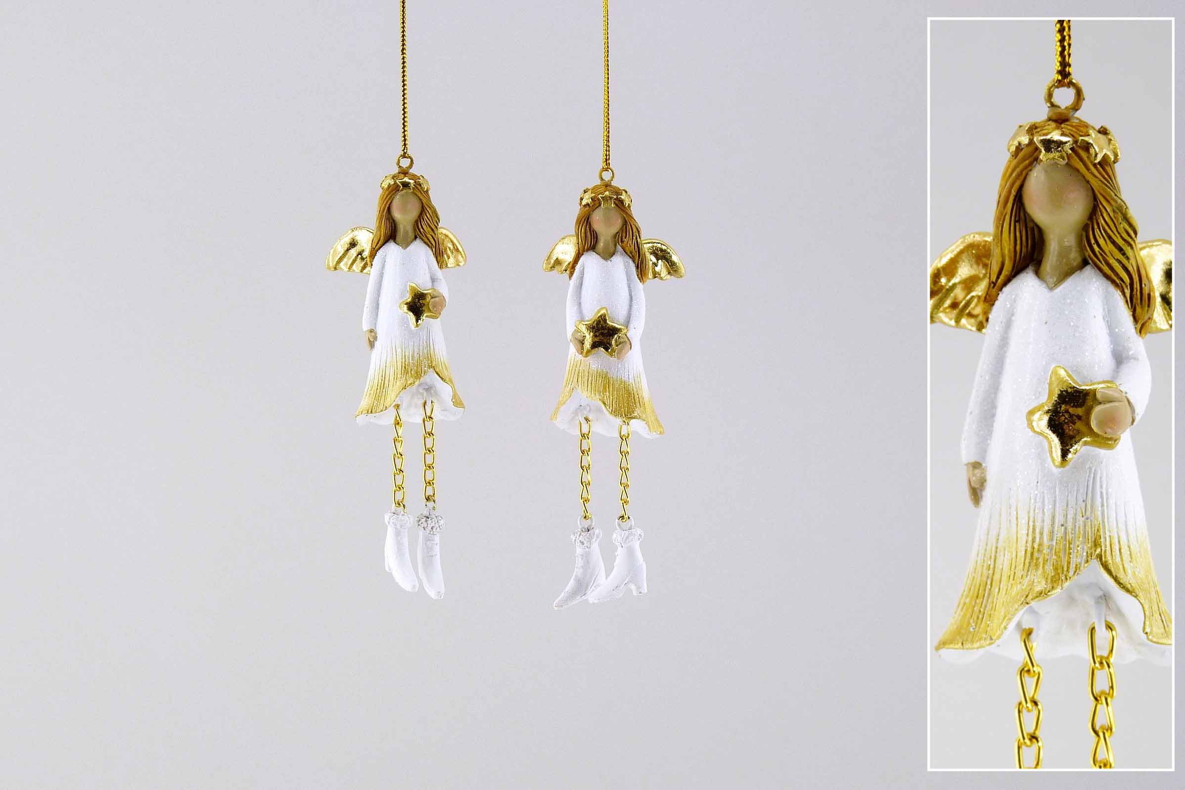 Poly-Engel ''Calla-Kleid'' hgd. weiß-gold sort. H11cm