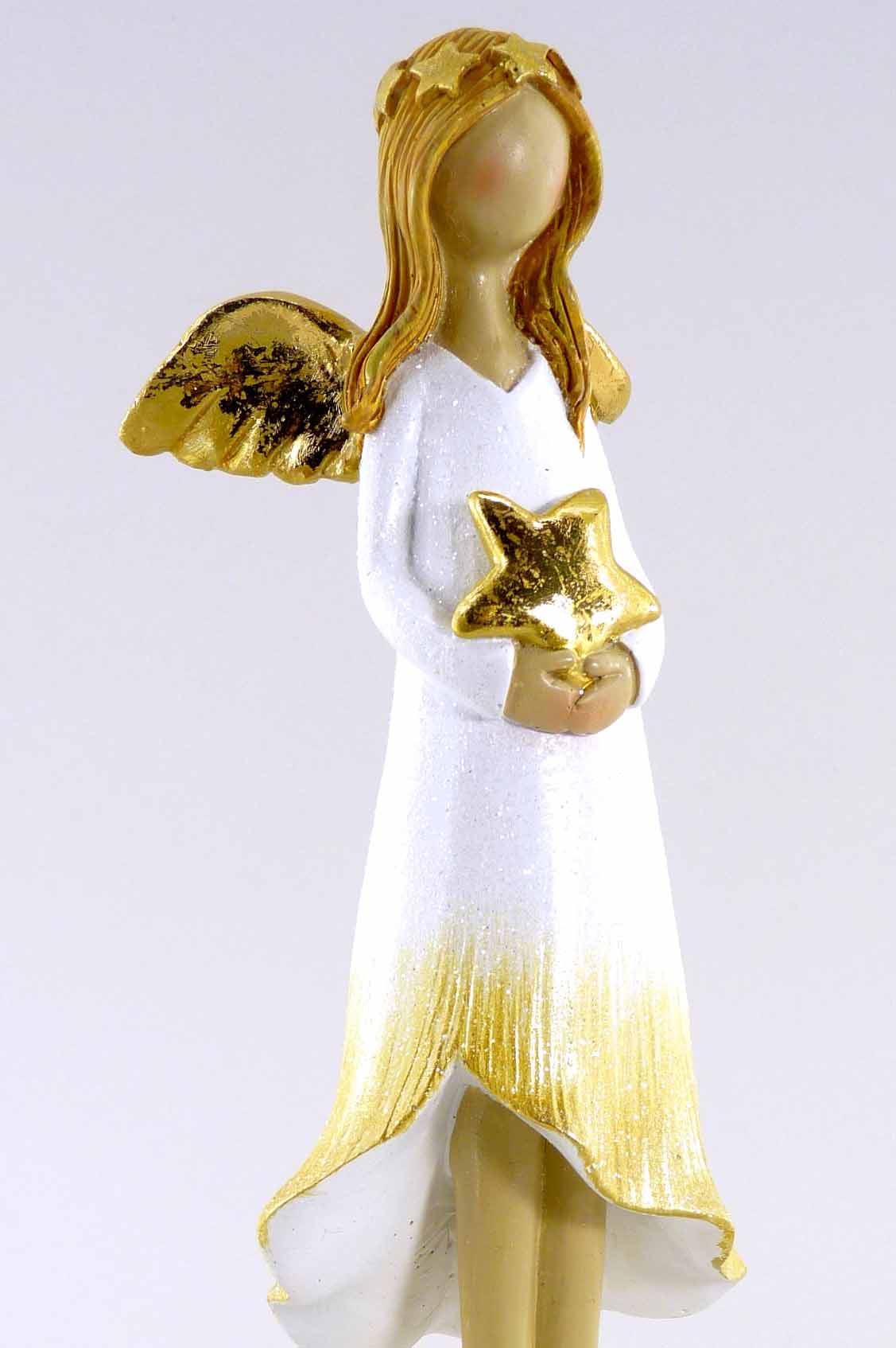 Poly-Engel ''Calla-Kleid'' weiß-gold H20cm