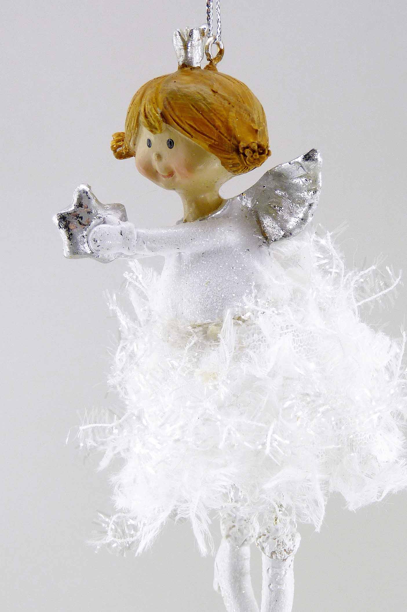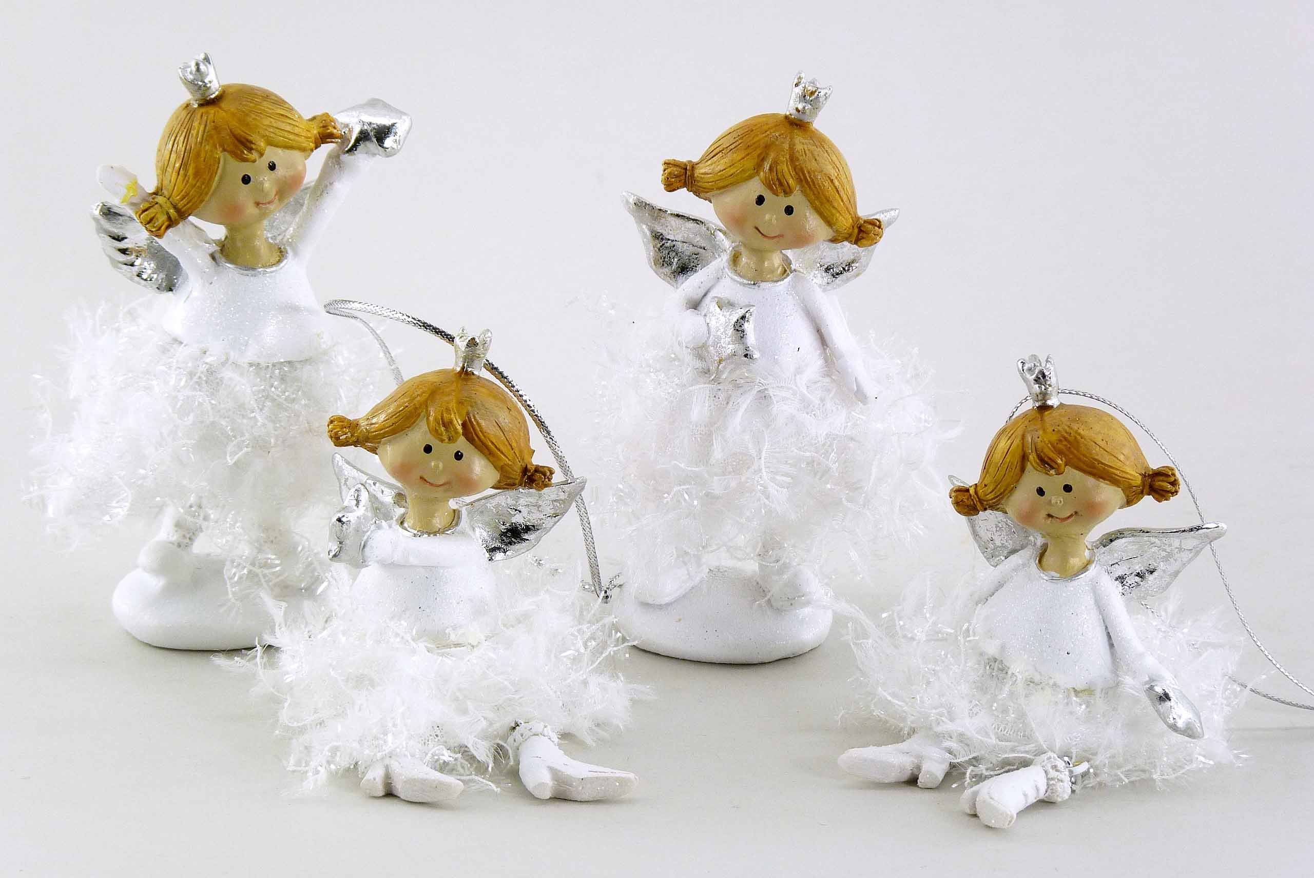 Poly/Stoff-Engel ''Krönchen'' hgd. weiß-silber sort. H11cm