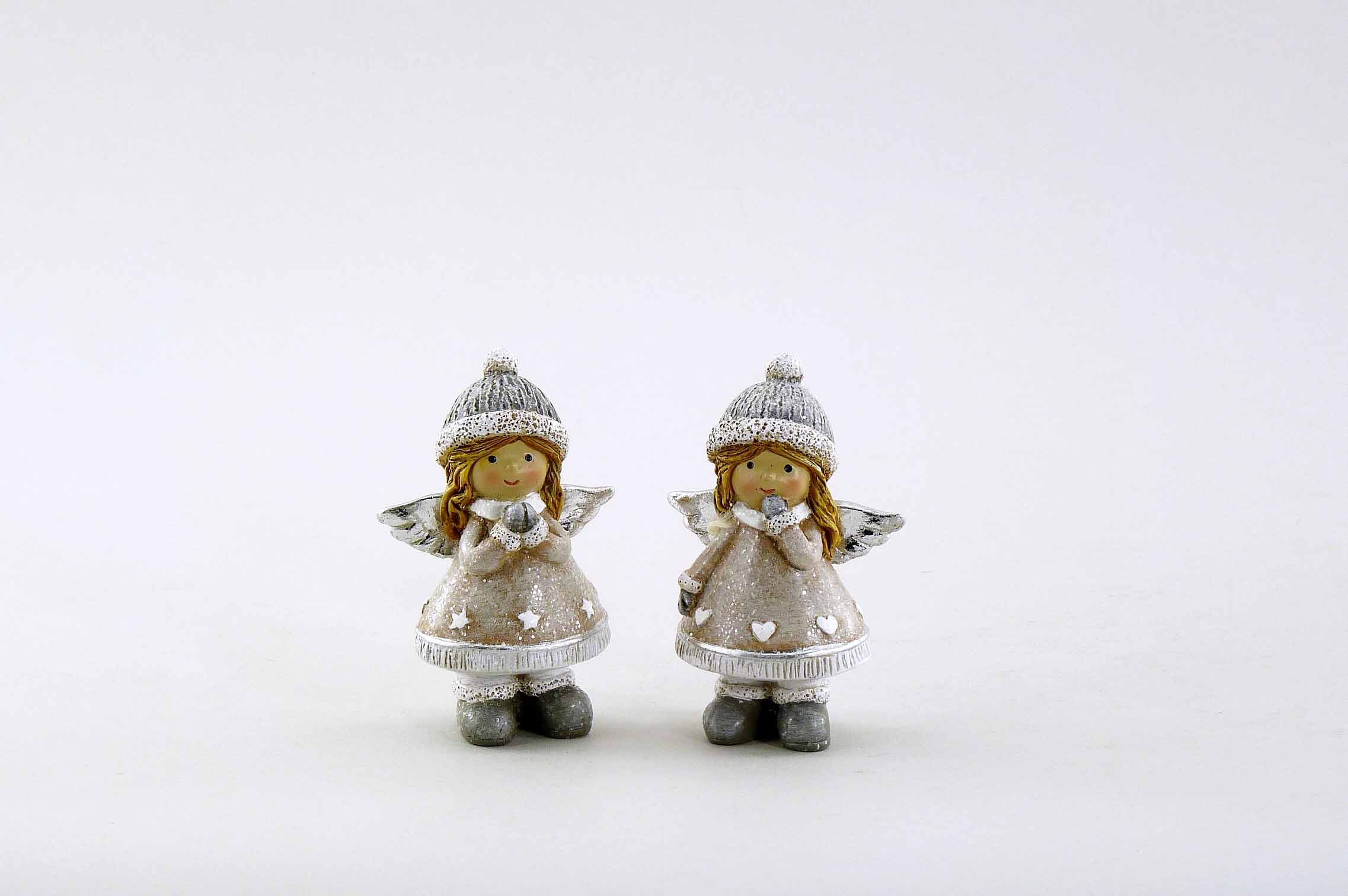 Poly-Engel mit Mütze braun-grau-silber sort. H8cm