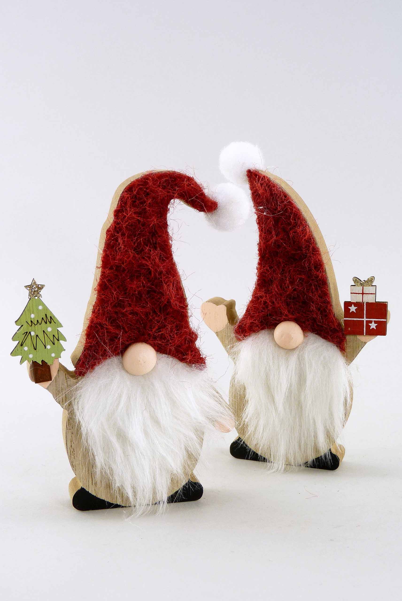 Holz/Stoff-Wichtel natur-rot-weiß sort. H14cm