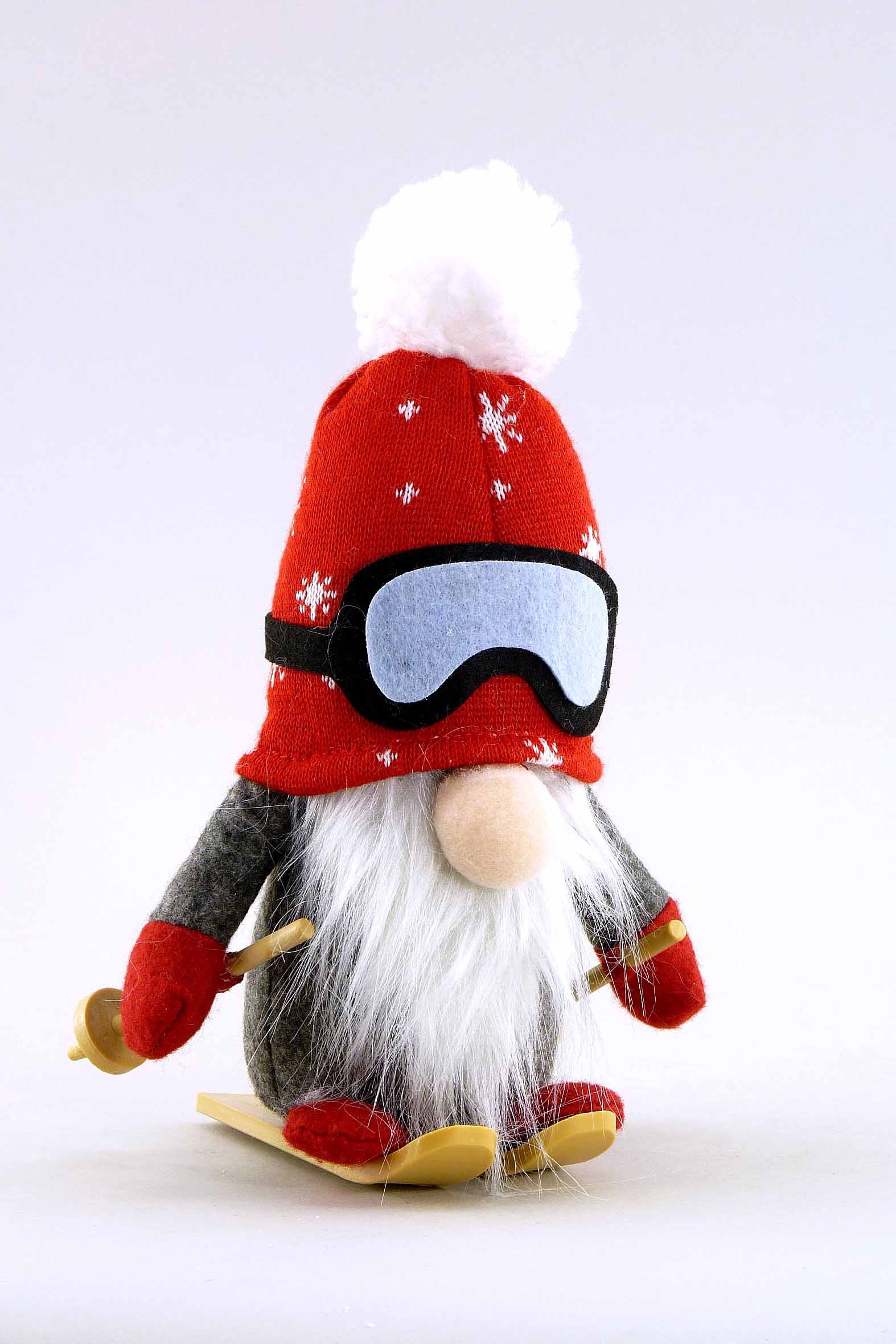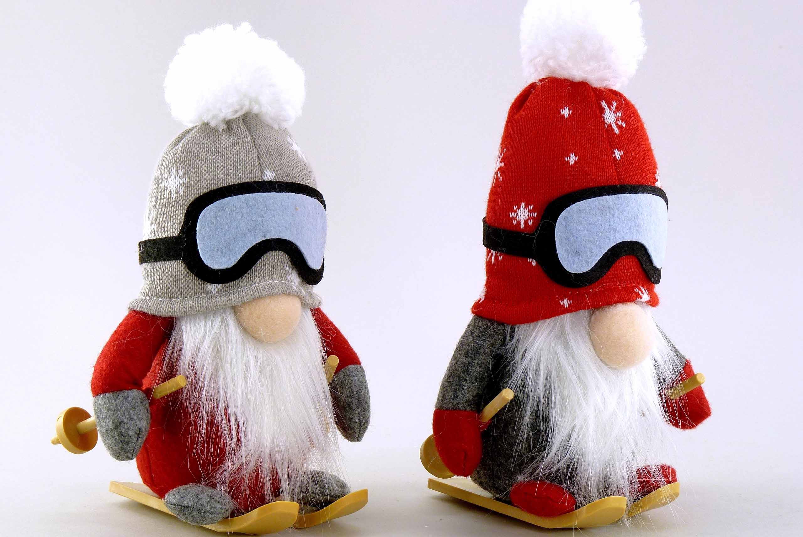 Stoff-Wichtel ''Skifahrer'' grau-rot sort. H21cm