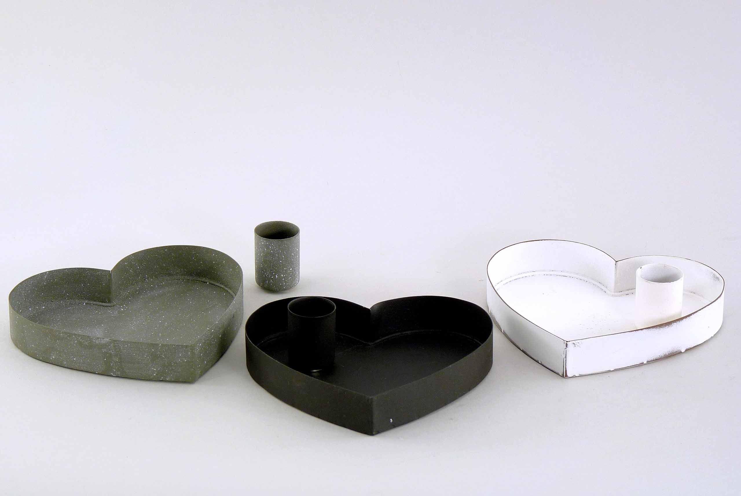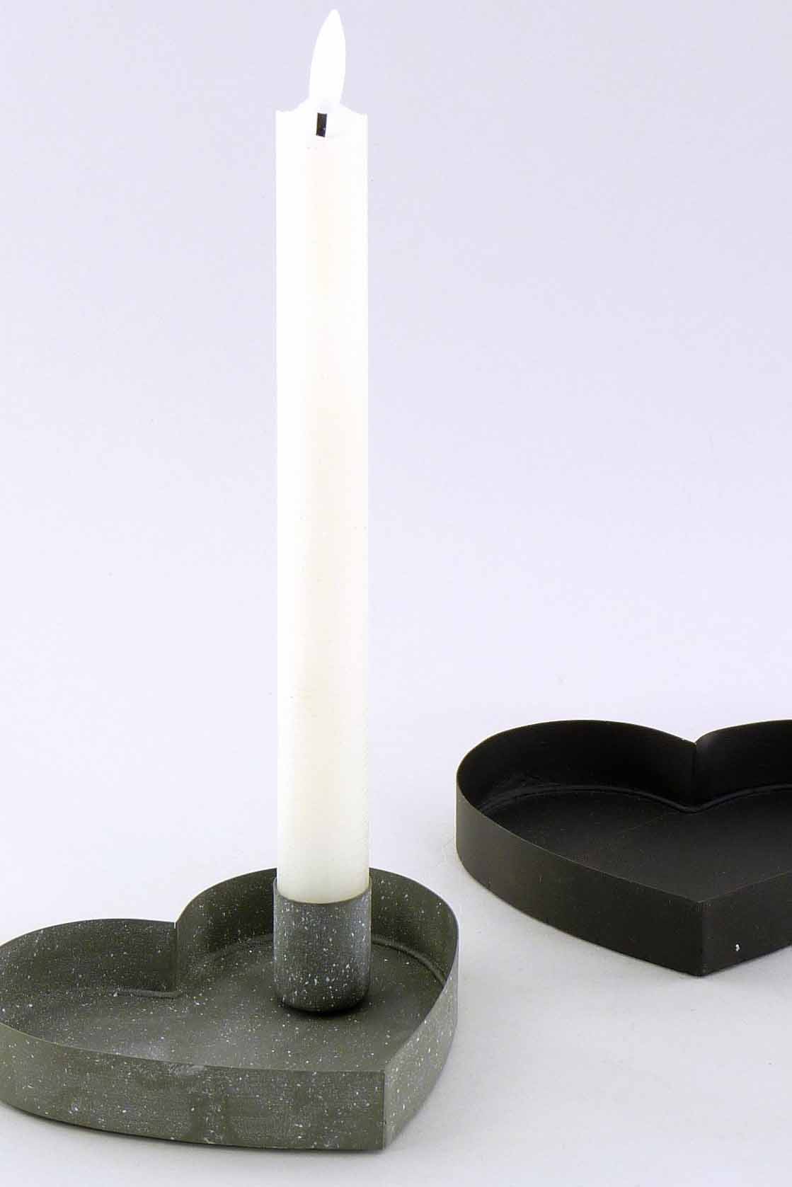 Metall/Magnet-Stabkerzenhalter ''Herz'' grau/weiß/schwarz sort. ø11cm