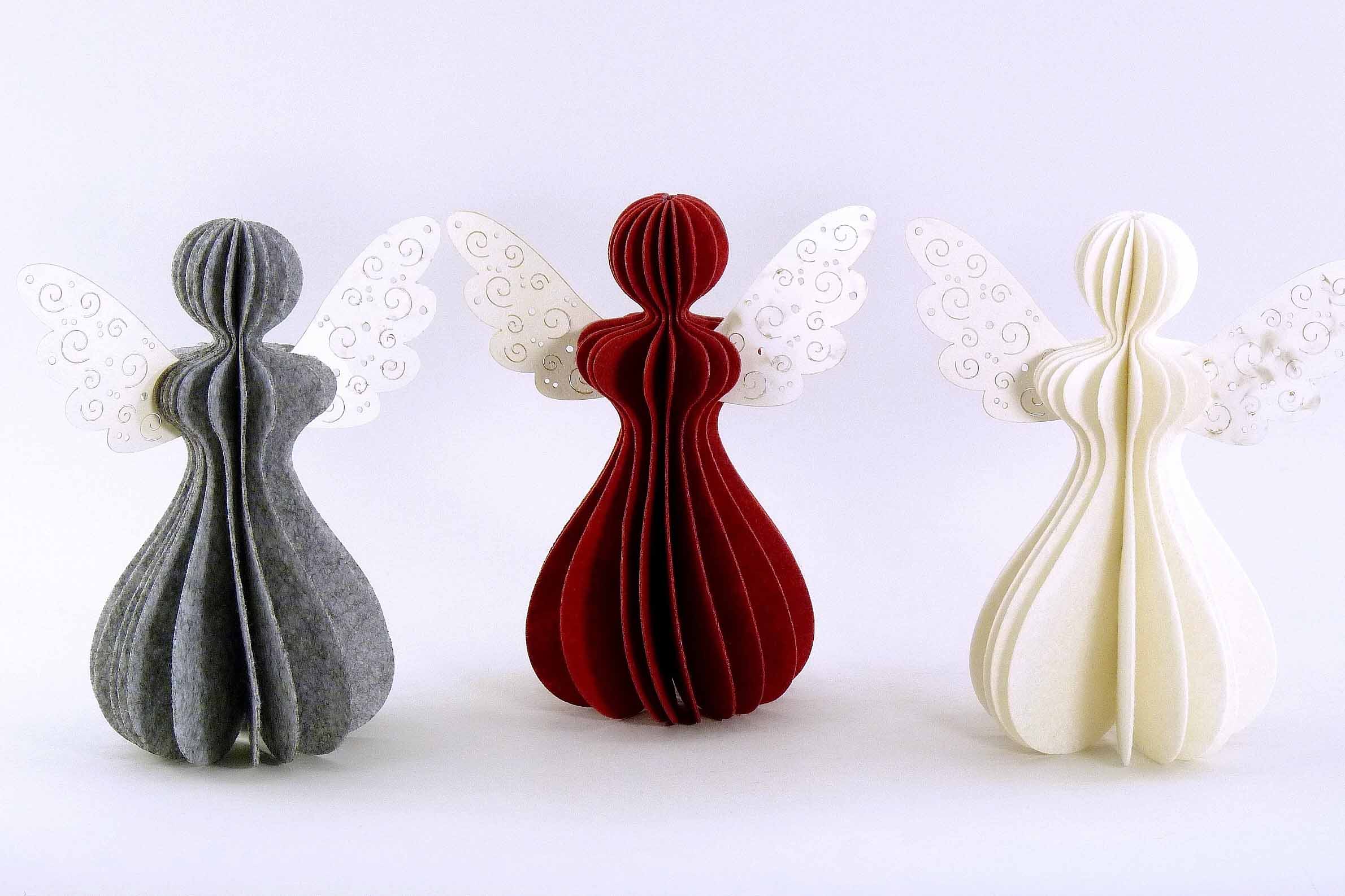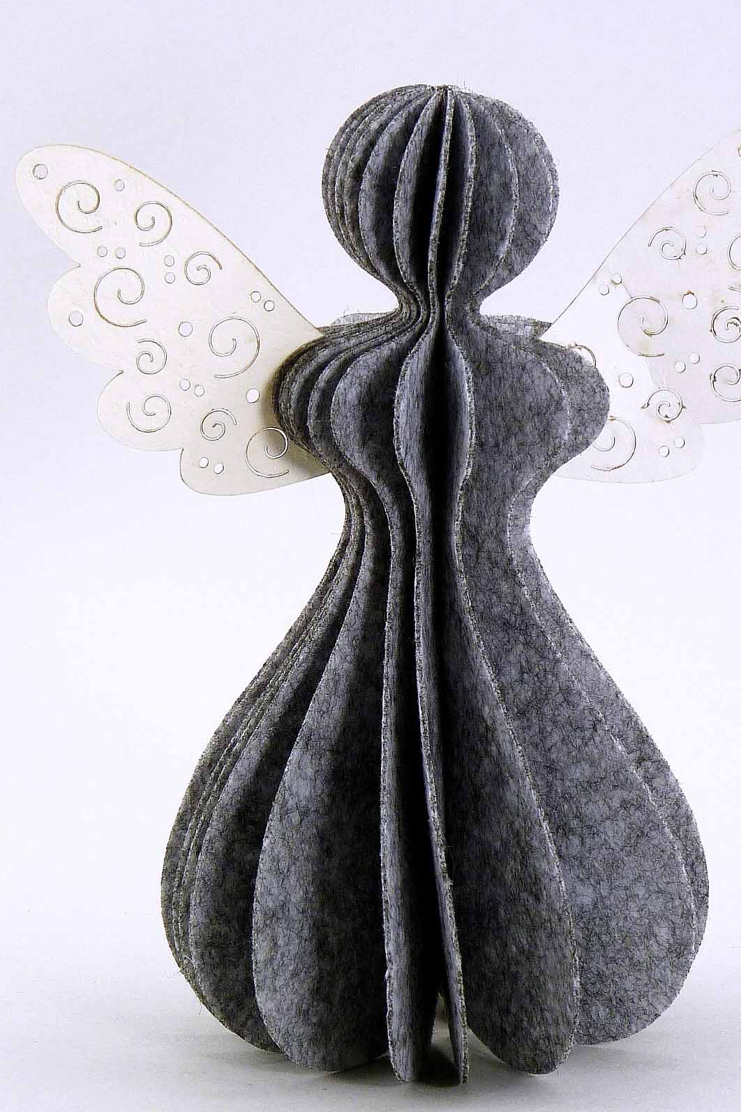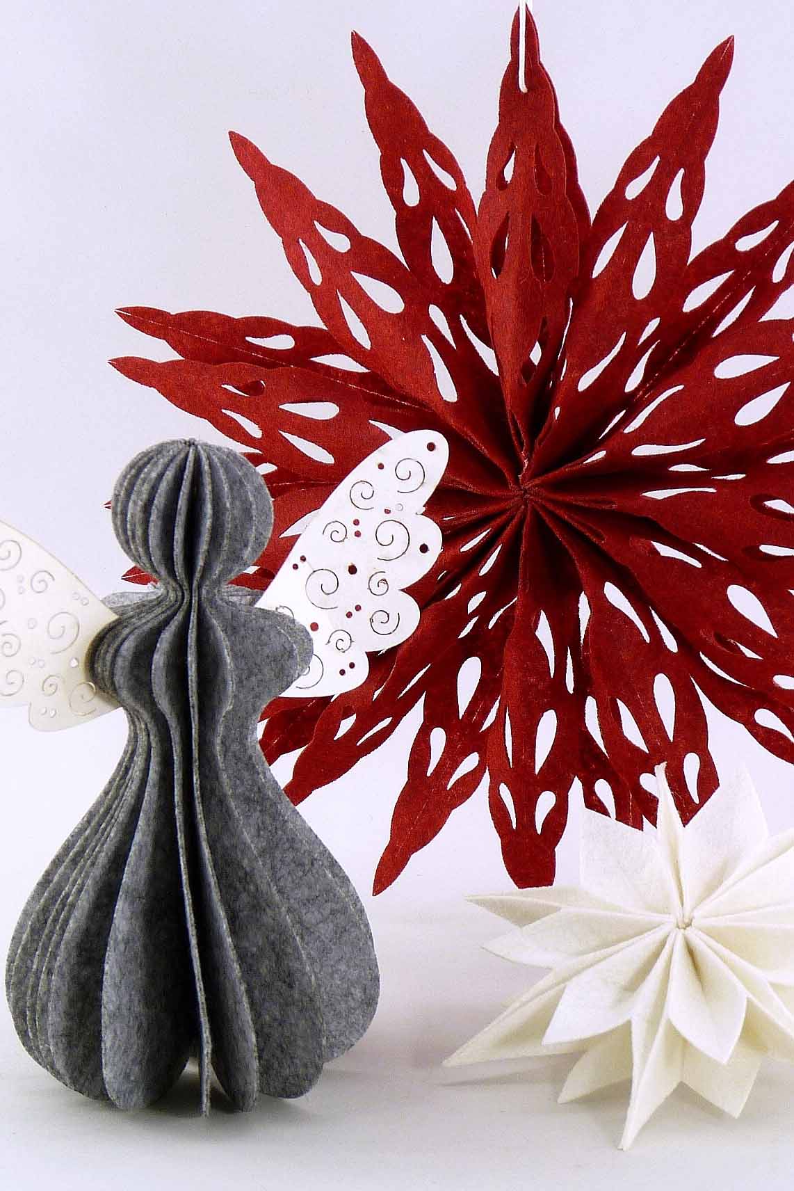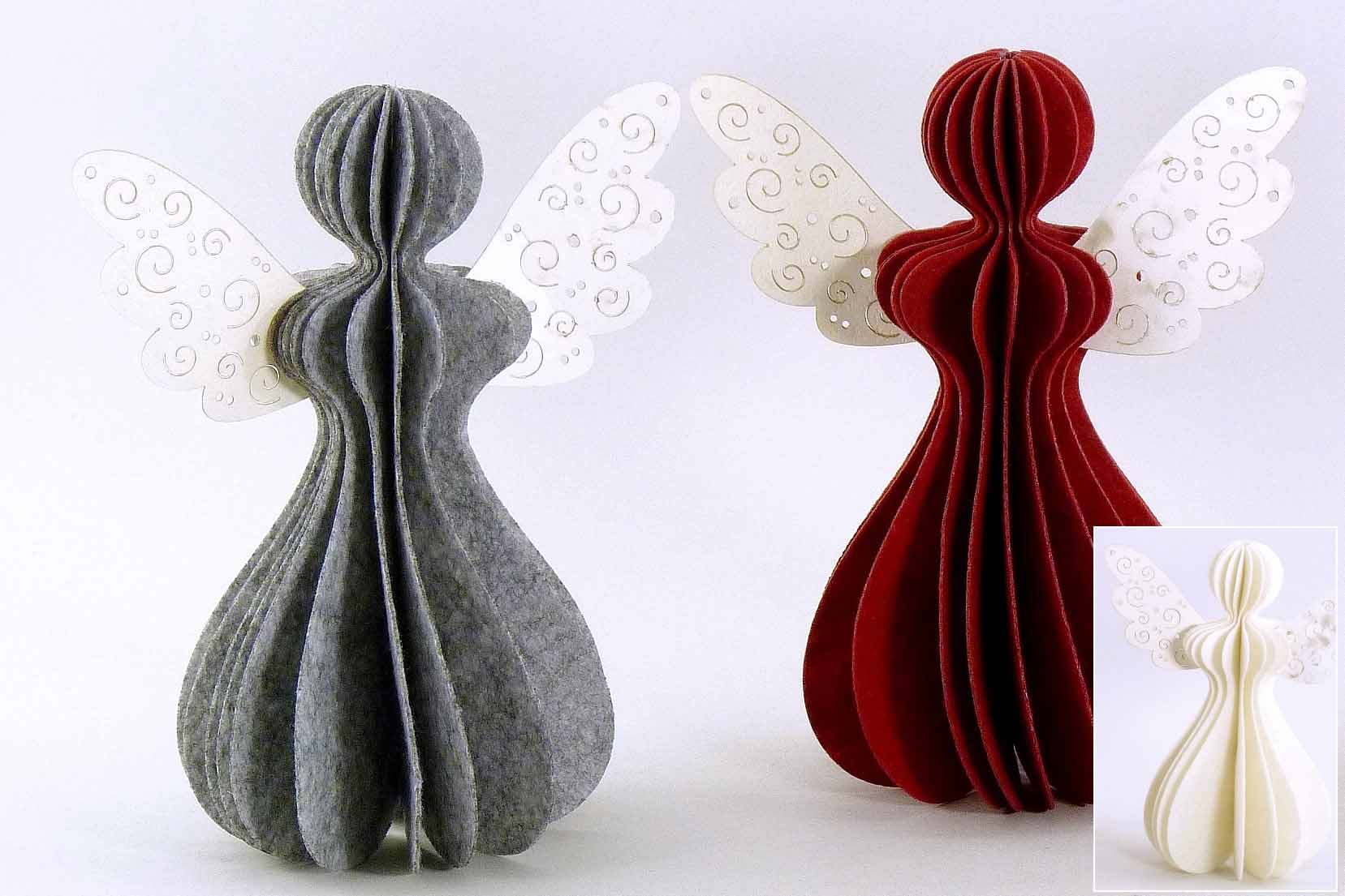 Filz/Papier-Engel rot/grau/weiß sort. H18 B16cm